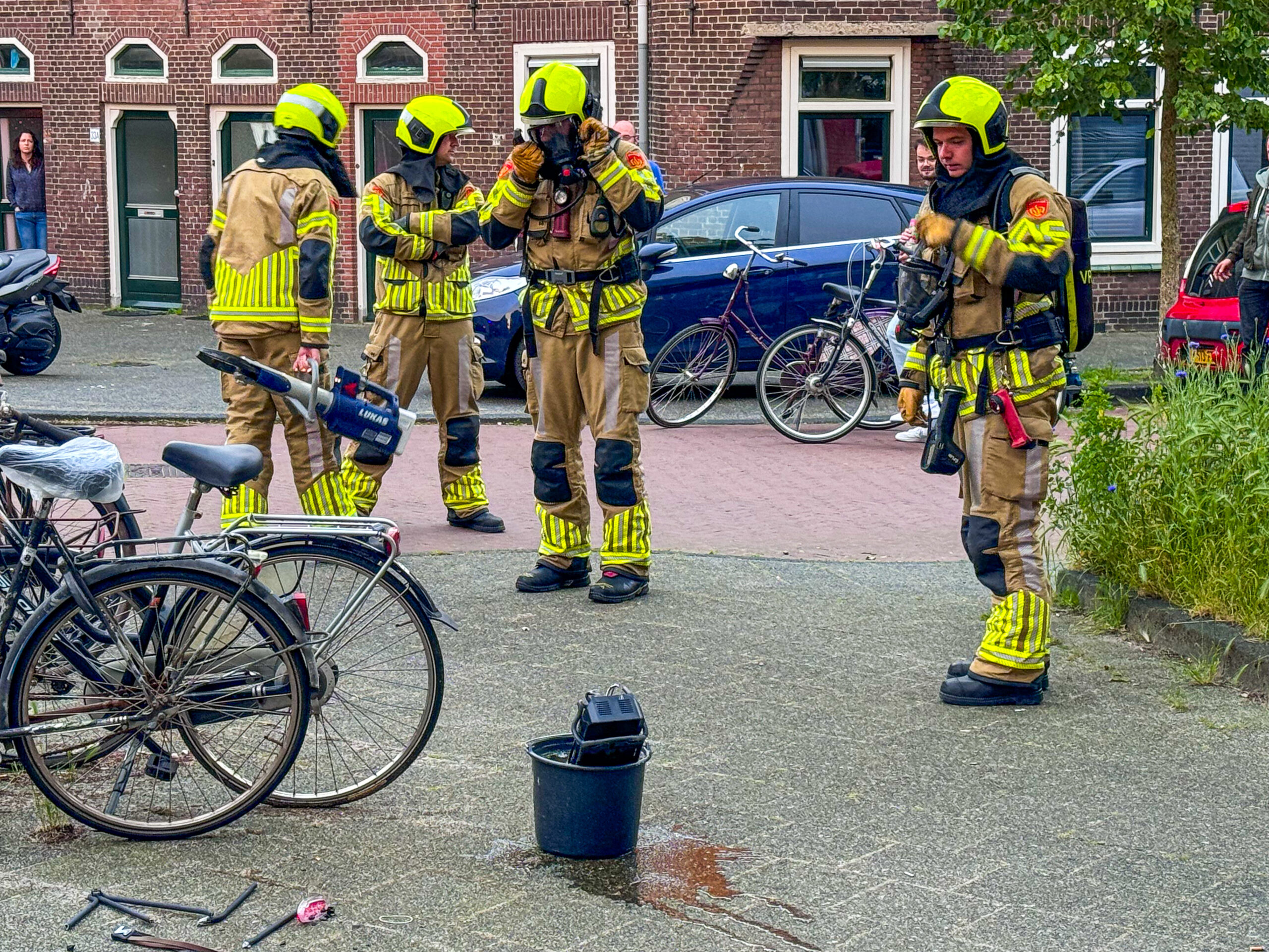 Buurtbewoners zagen dat gebeuren en belden de brandweer. Die heeft de accu van de fiets afgeknipt en hem in een emmer water gezet.