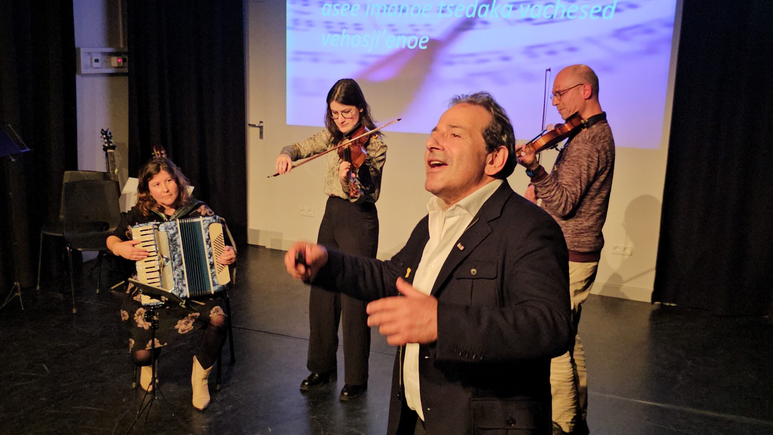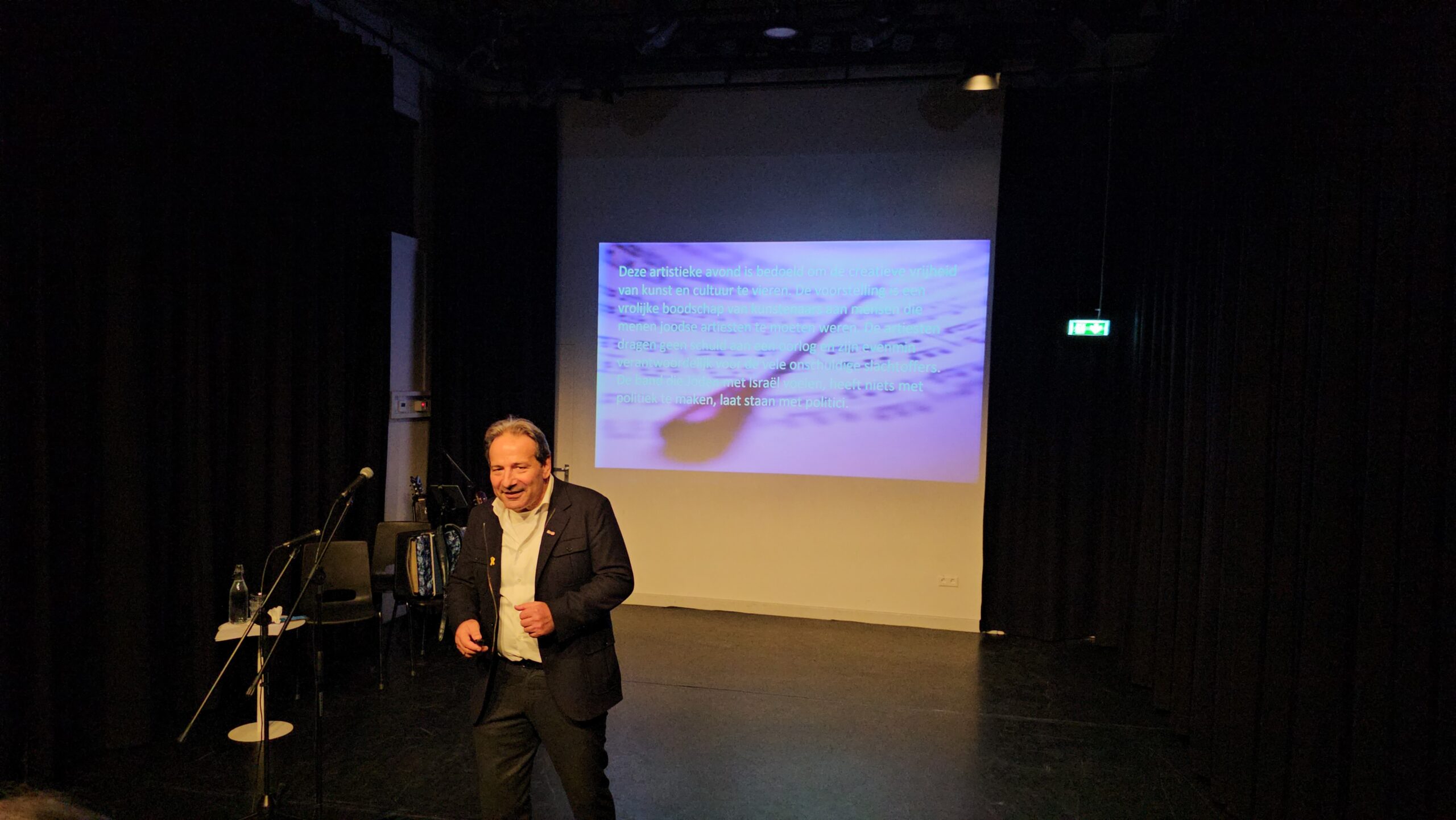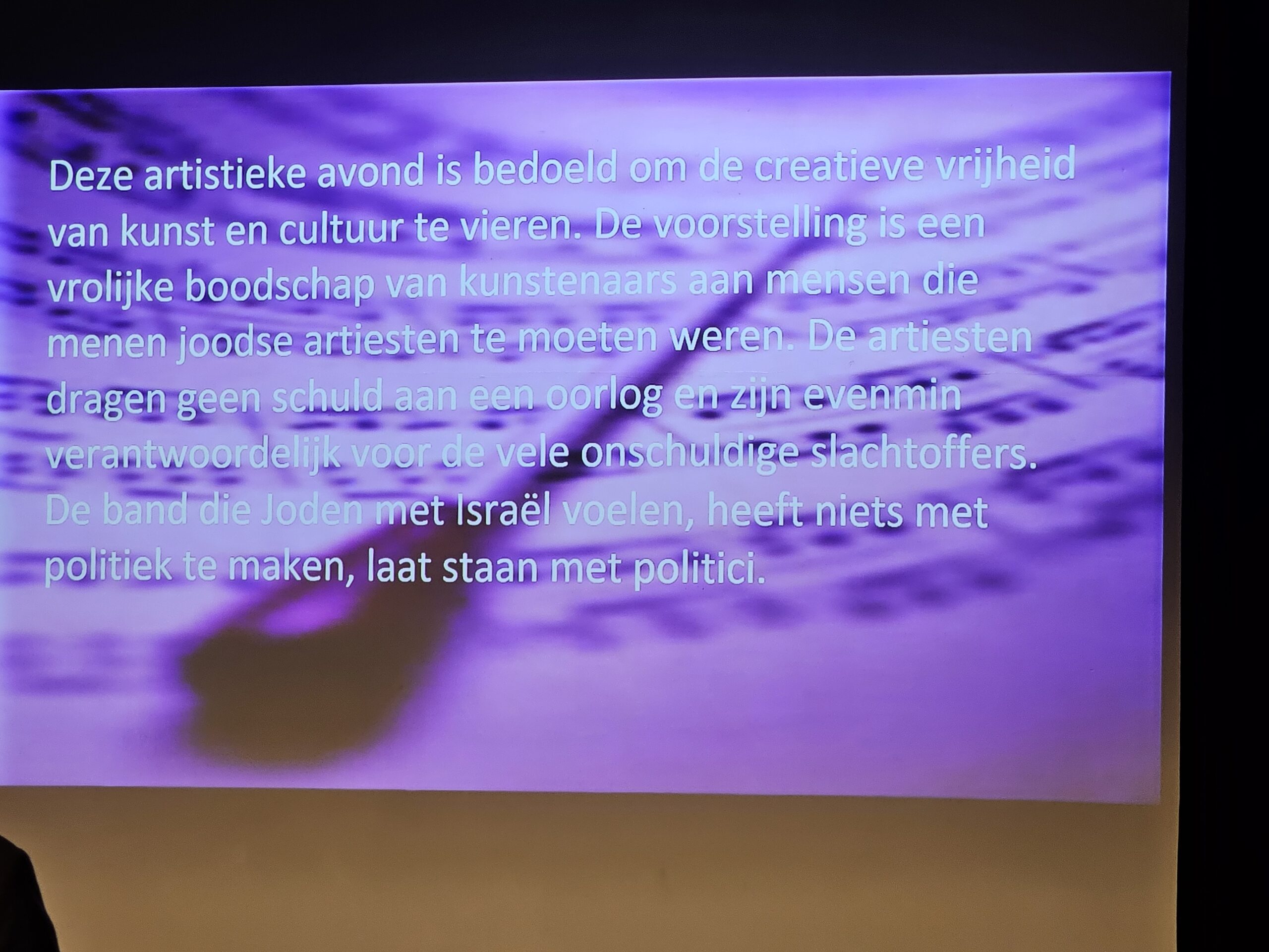 De avond in Leiden was georganiseerd door Joodse vrienden van de zangeres die er mee wilden benadrukken dat Joodse artiesten geen schuld dragen aan de oorlog en ook niet verantwoordelijk zijn voor de vele onschuldige slachtoffers. “De band die ze met Israël voelen, heeft niets te maken met politiek, laat staan met politici”, aldus Van Hessen die het theater had afgehuurd zonder bekend te maken waarvoor precies.