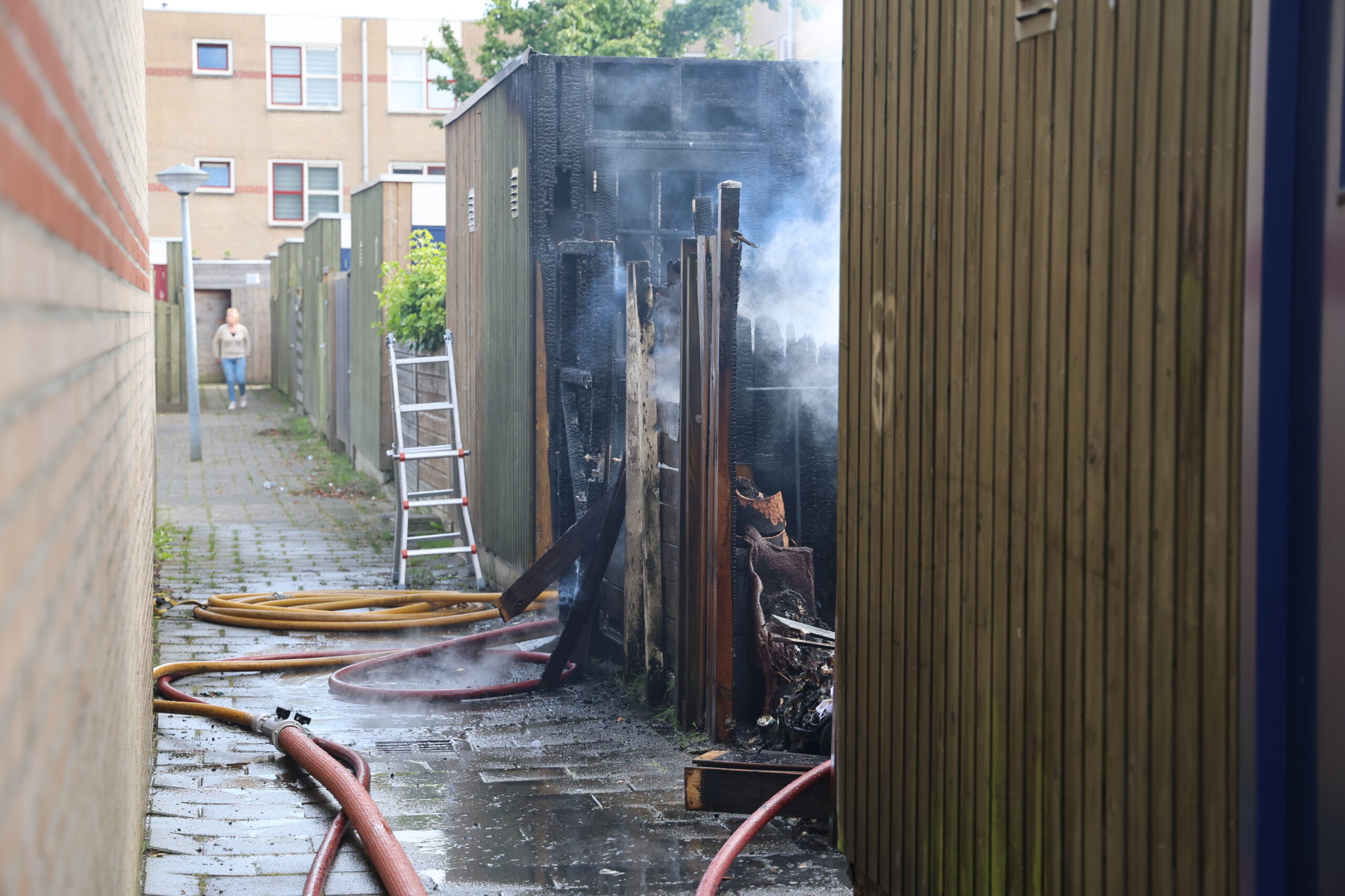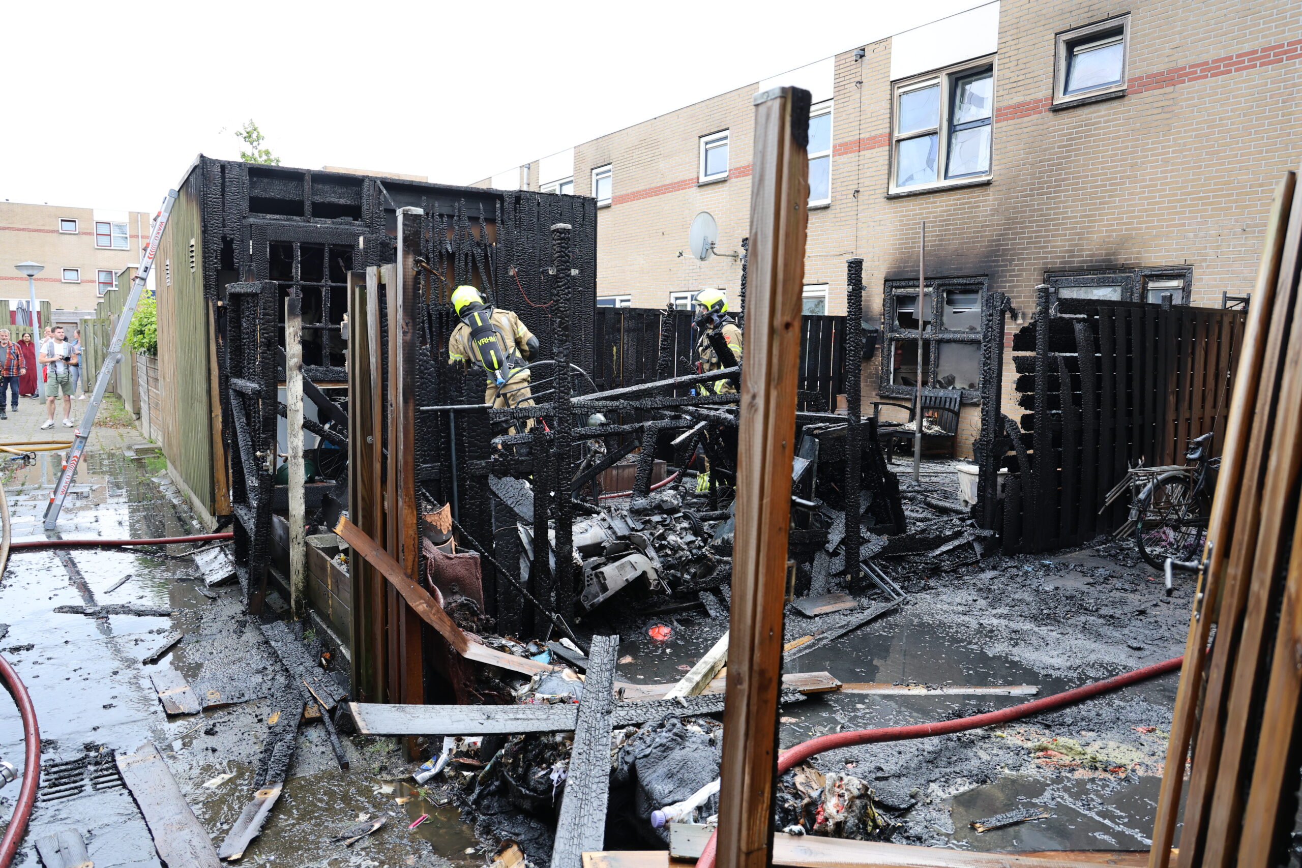 Een felle uitslaande brand heeft rond 18.30 uur voor veel schade gezorgd in de Sumatrastraat in Leiden. Twee schuren werden in de as gelegd en ook enkele woningen liepen schade op aan de gevel. In de schuur stonden ook één of meerdere gasflessen.