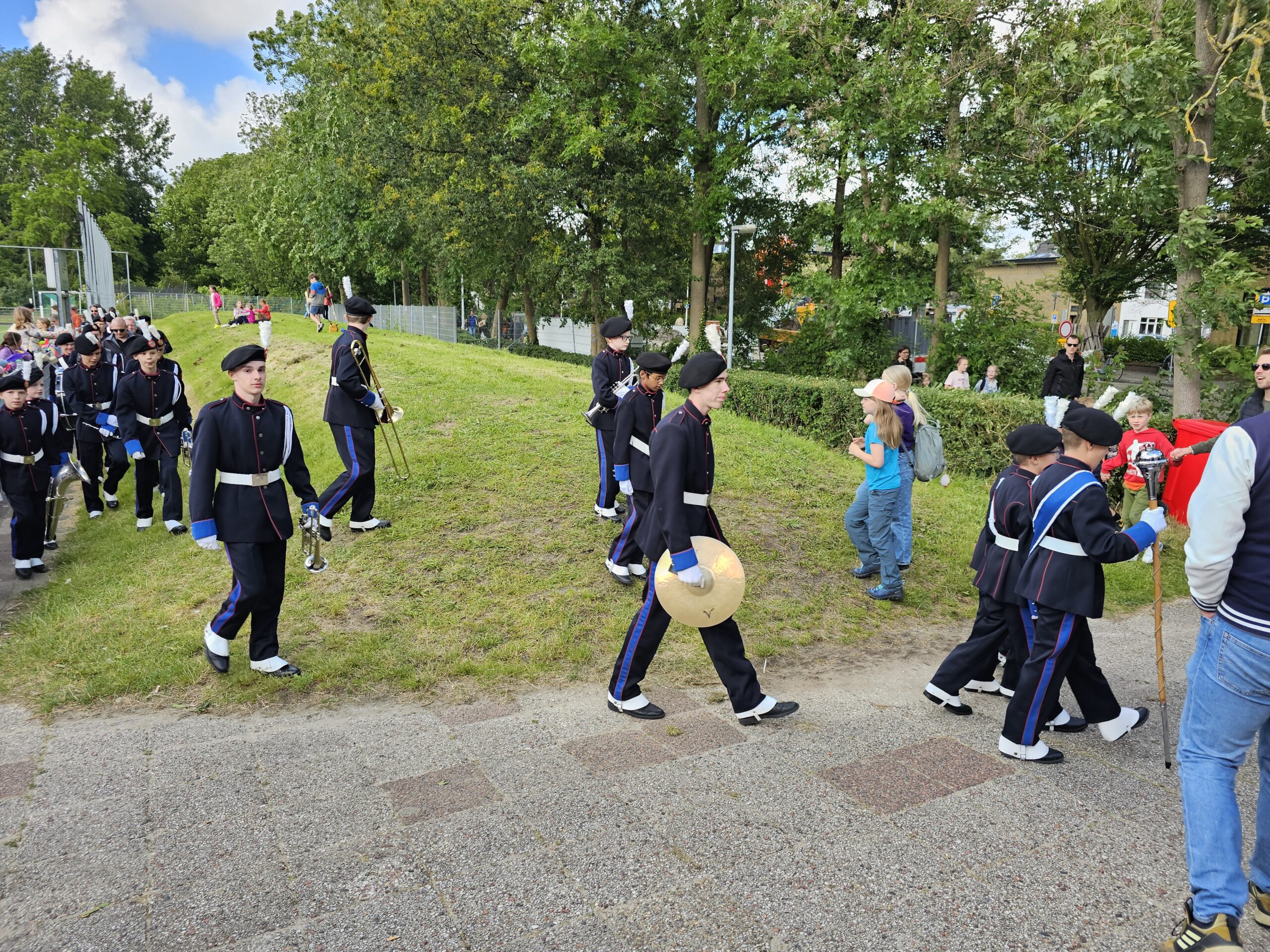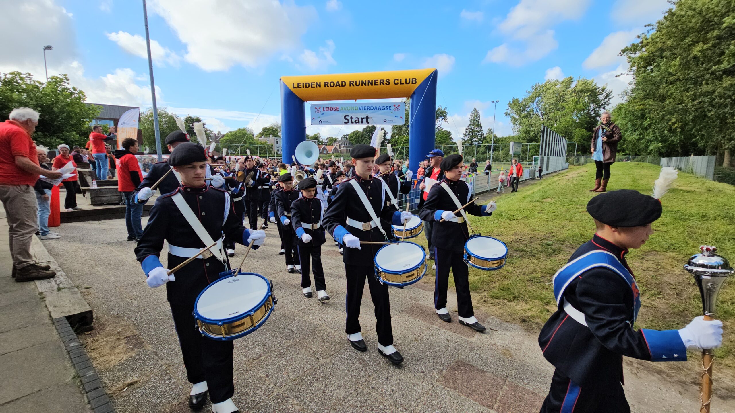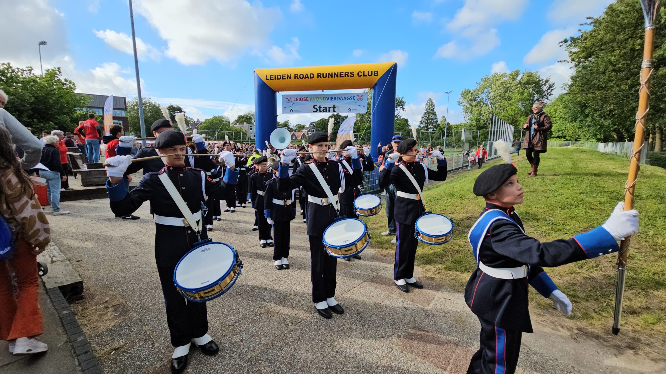 Nadat de organisatie maandag in de stromende regen alles had moeten opbouwen, waren de weergoden de deelnemers aan de avondvierdaagse dinsdagavond aanzienlijk beter gezind. Ook fijn voor de muzikanten van Jong K&G die een deel van de route voor de lopers uitliepen.