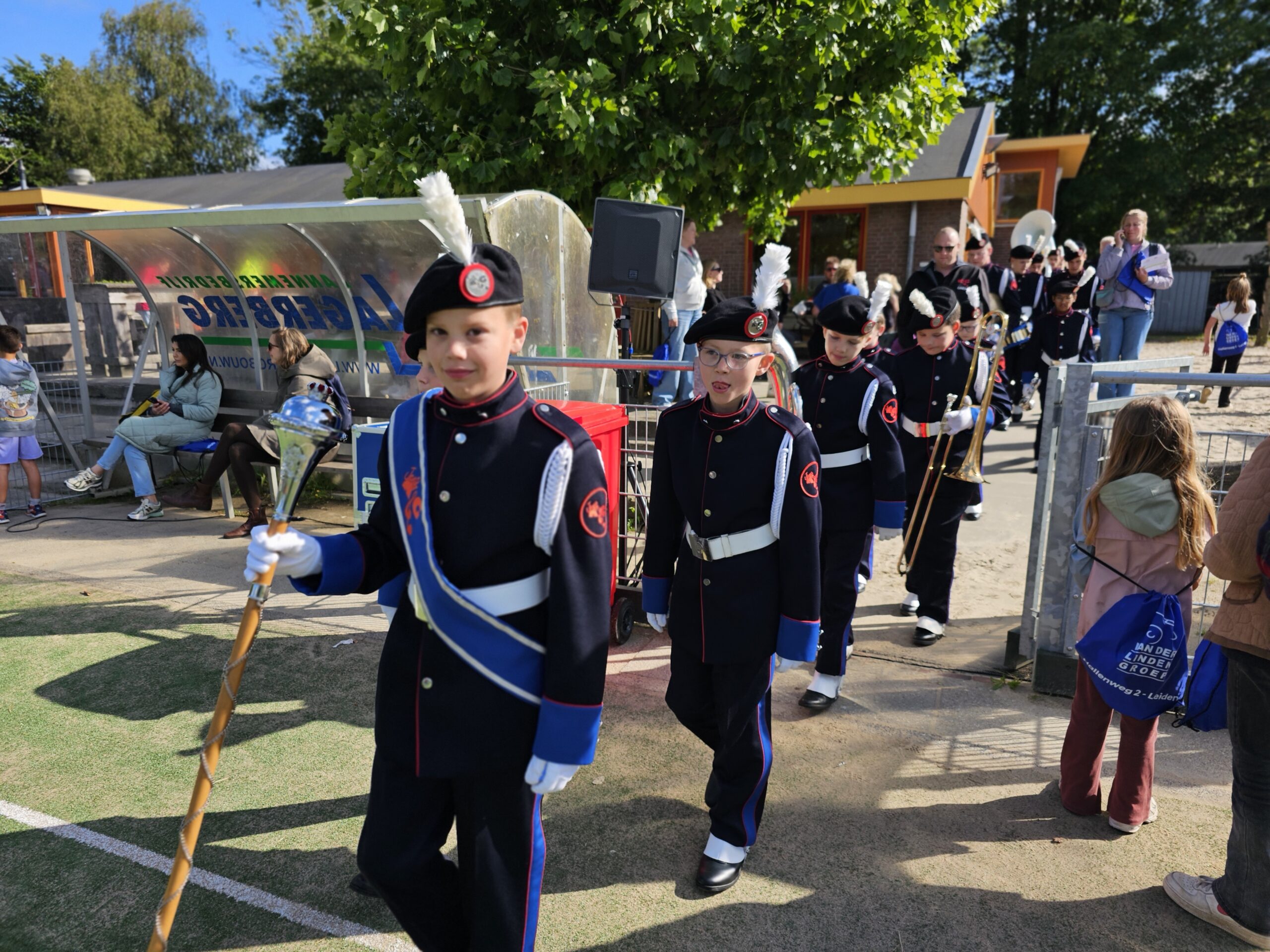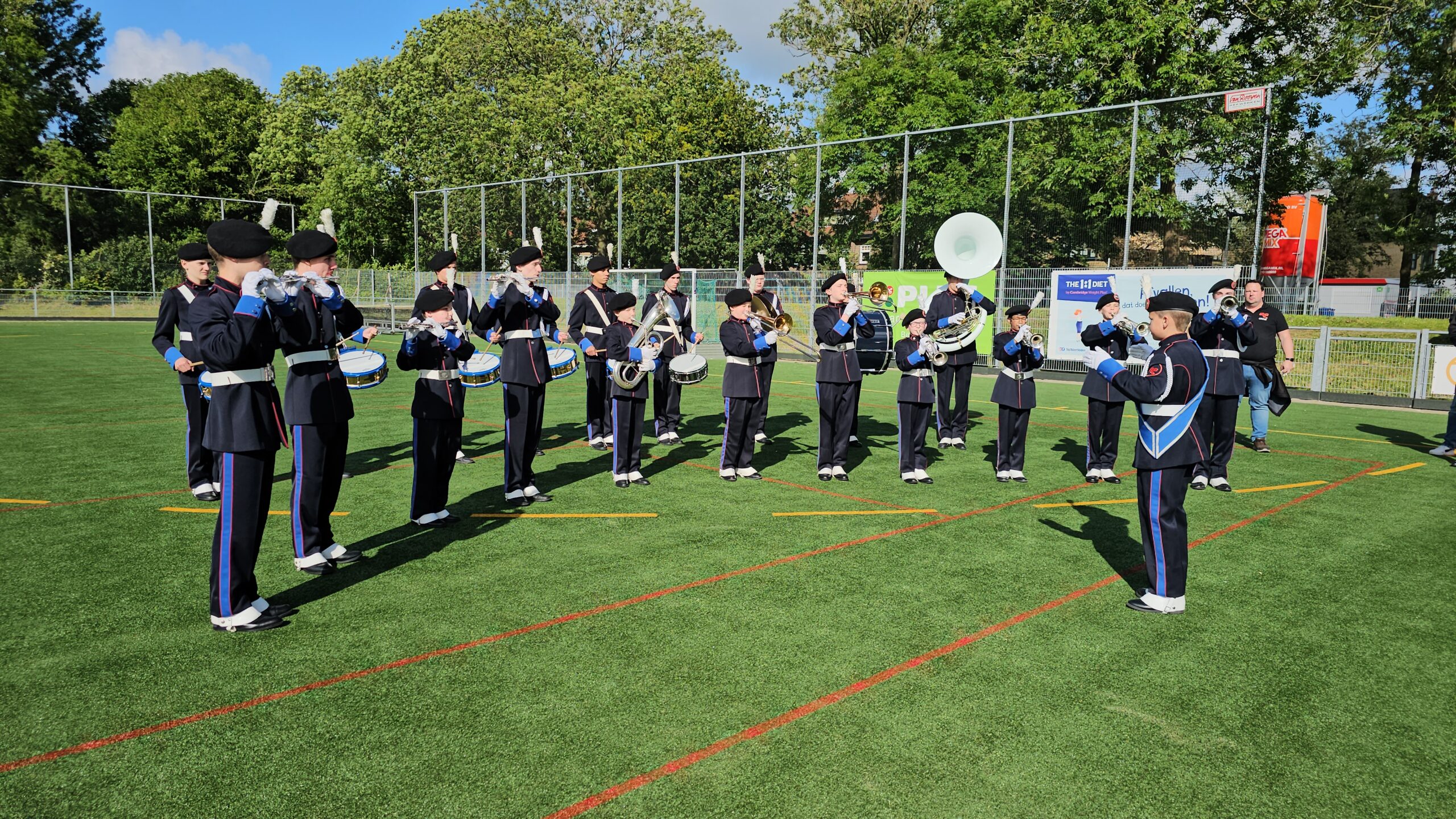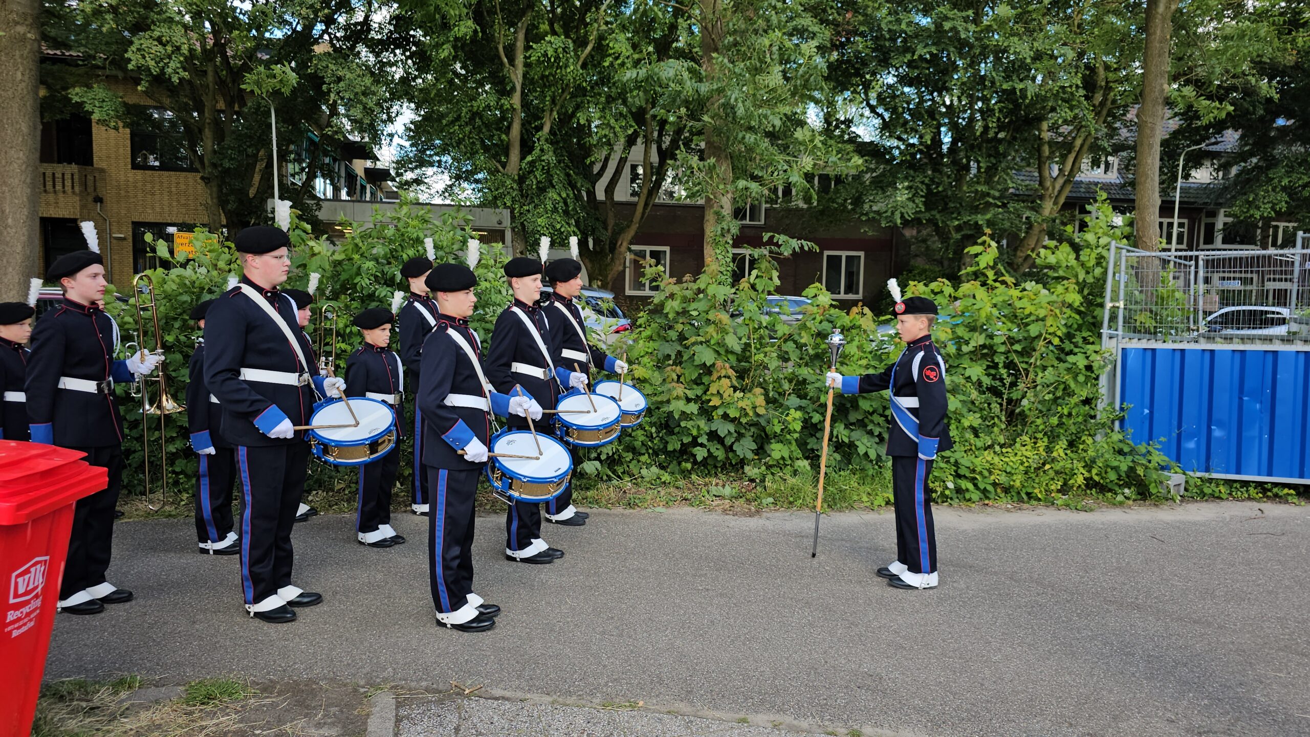 Nadat de organisatie maandag in de stromende regen alles had moeten opbouwen, waren de weergoden de deelnemers aan de avondvierdaagse dinsdagavond aanzienlijk beter gezind. Ook fijn voor de muzikanten van Jong K&G die een deel van de route voor de lopers uitliepen.