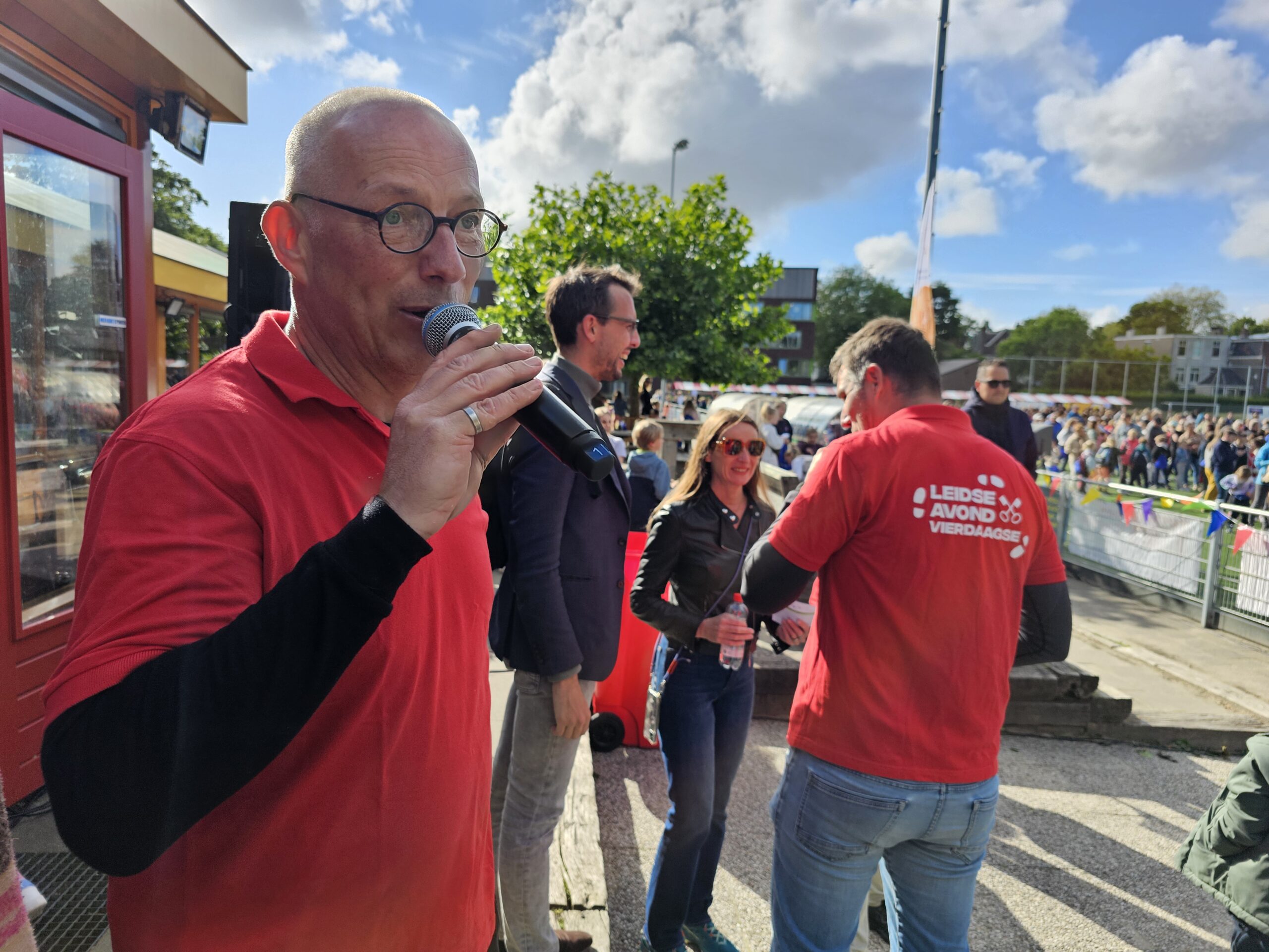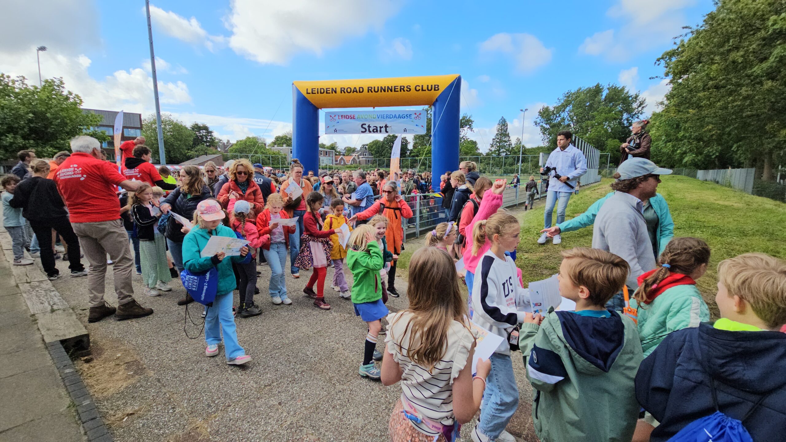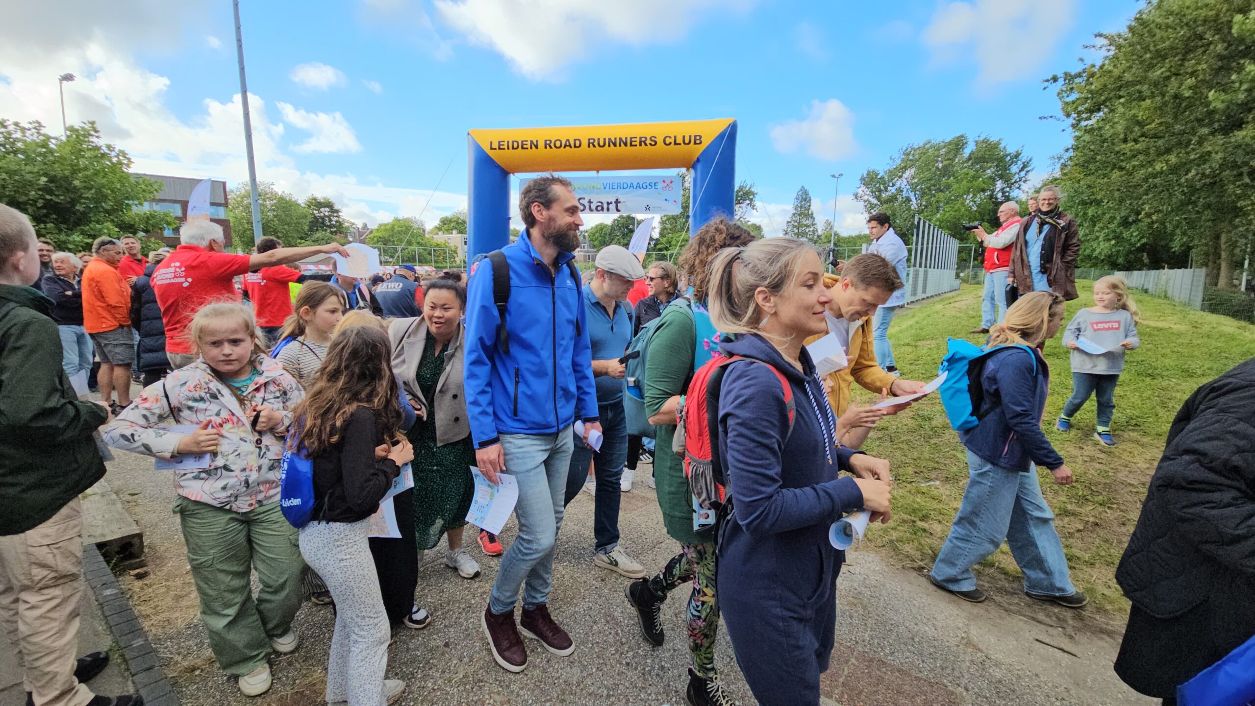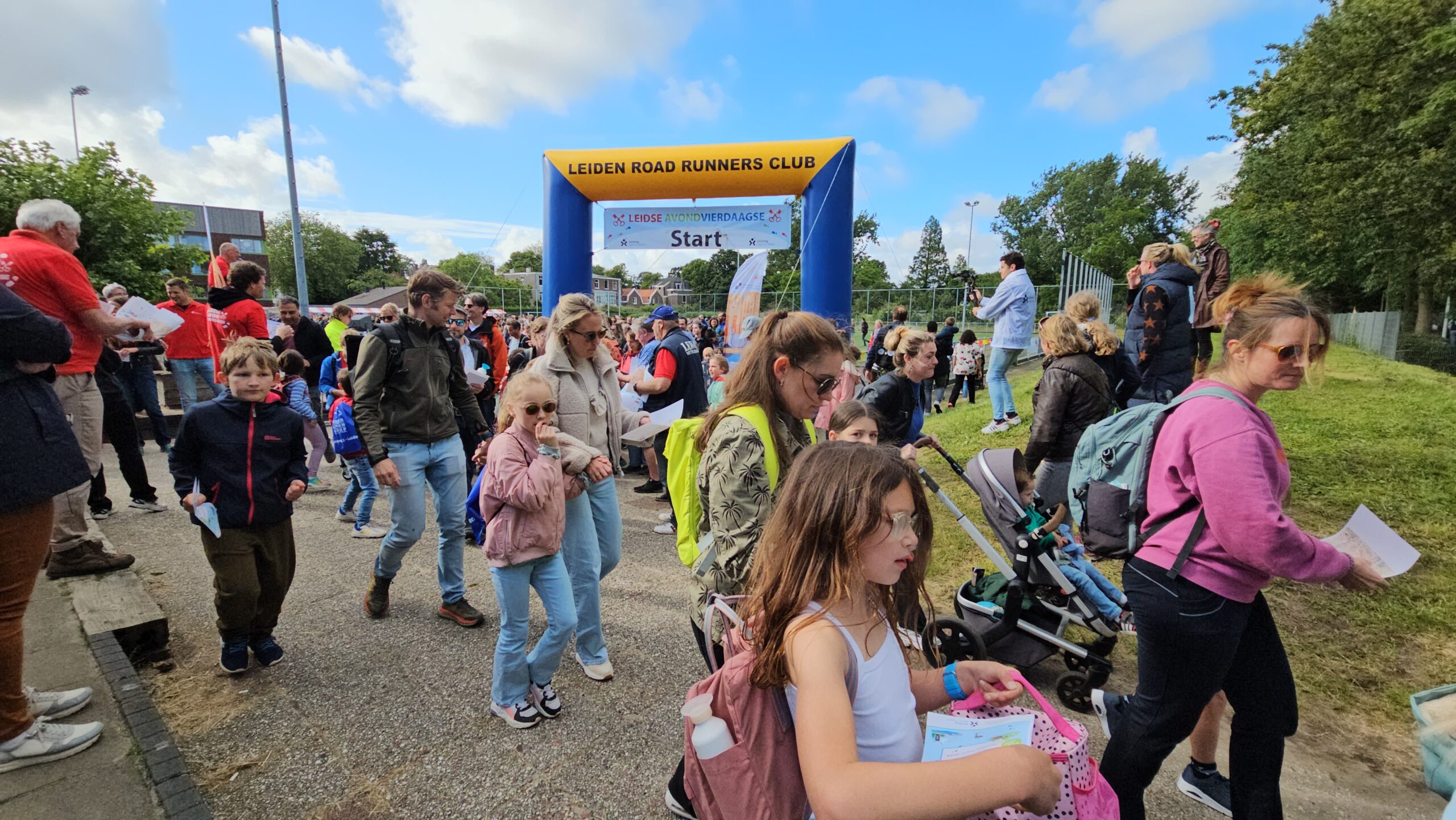 In de stralende zon gaf sportwethouder Fleur Spijker dinsdagavond het startsein voor de eerste dag van de Leidse Avondvierdaagse. Op het terrein van Sporting Trigon hadden zich 1.041 deelnemers verzameld. “Dat zijn er zeker tweehonderd meer dan we ooit hebben gehad”, zegt Jeroen Weijermars van de organiserende stichting Sport in Beeld.