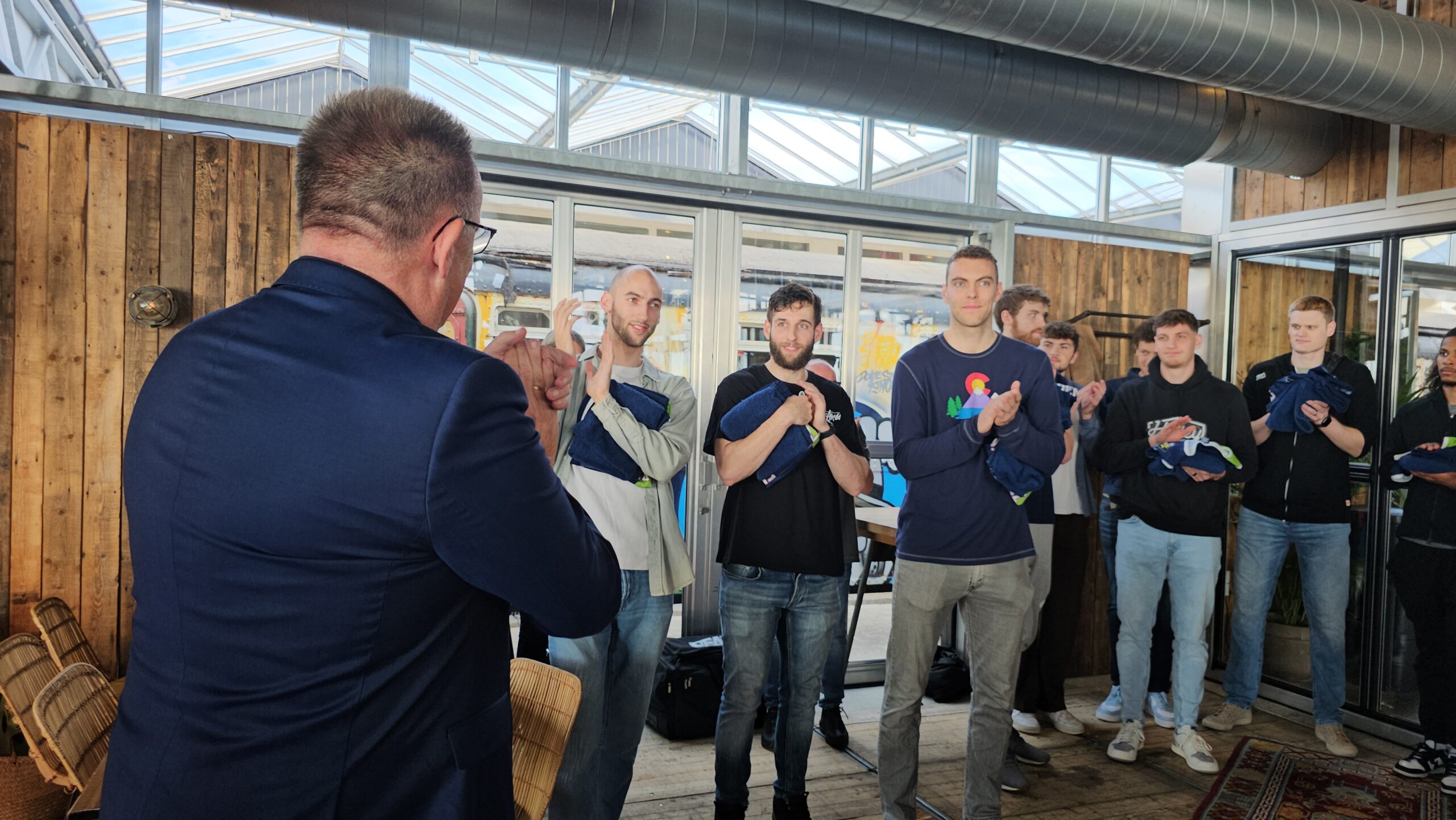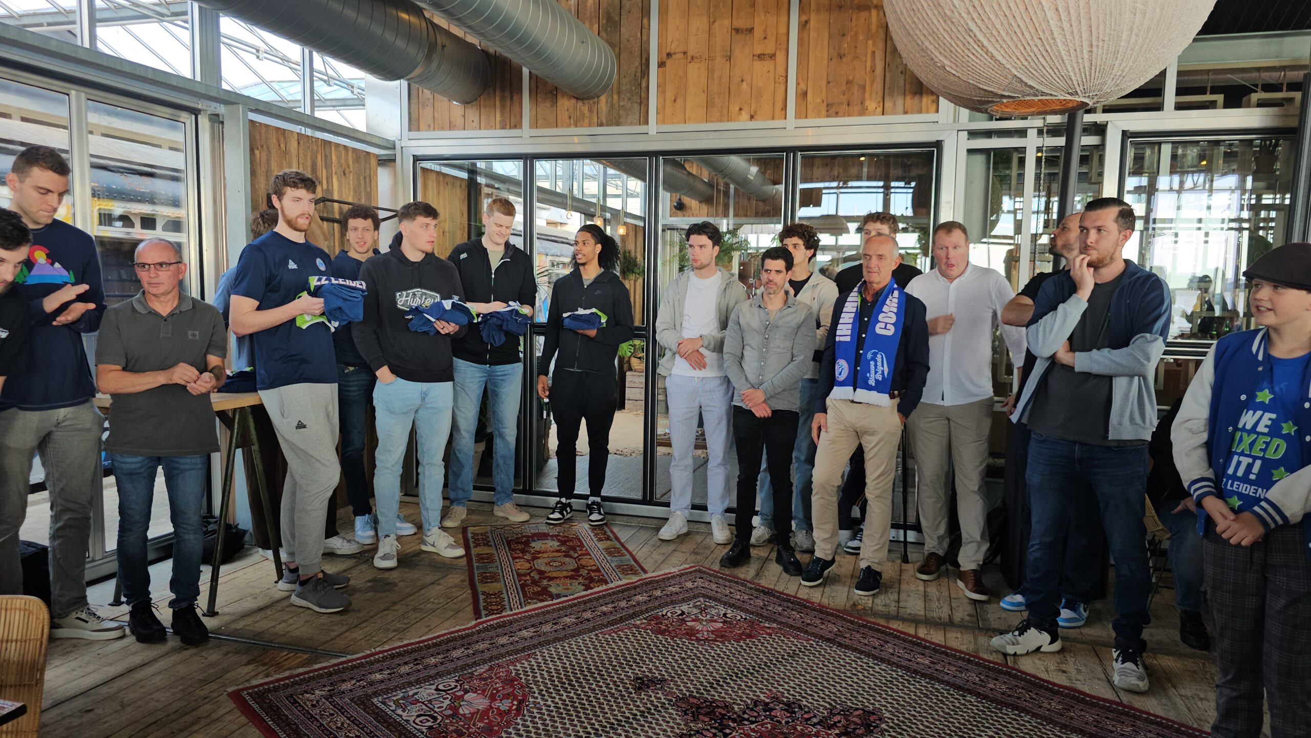 Het is een flinke aderlating voor ZZ Leiden. “Maar hier staat wel een heel trots bestuurslid”, zegt bestuurslid technische zaken Rob van Hooven direct nadat hij de drie vertrekkende spelers naar voren heeft geroepen. “Jullie denken allemaal dat je weet wat ik nu ga zeggen, maar dat klopt niet.” Vervolgens maakte hij het vertrek bekend van het drietal. Waarheen ze gaan, dat kan hij nog niet vertellen.