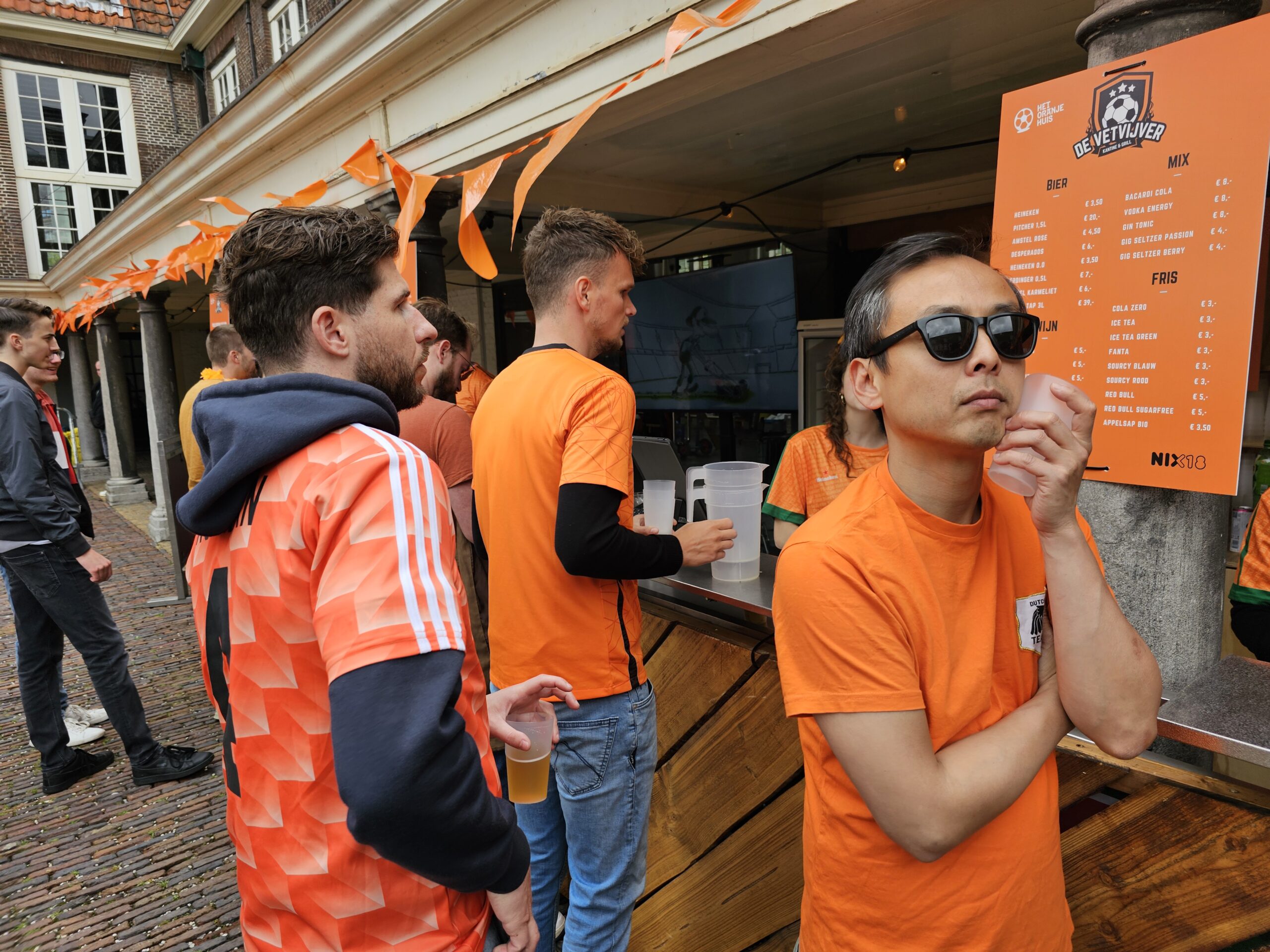 Op de derde dag van het EK Voetbal speelt Nederland de eerste wedstijd in het Duitse Hamburg. Tegen Polen. De wedstrijd begon om 15.00 uur en wordt overal op de voet gevolgd. In het tot Oranjehuis Leiden omgetoverde Pesthuis aan de Plesmanlaan in Leiden bijvoorbeeld.