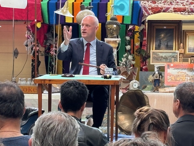 “We houden wel vaker een veiling. We sparen binnenkomende voorwerpen op die speciaal en wat kostbaarder zijn, zoals designer-objecten. Die komen dan op de veiling”, vertelt Rutger Bos, directeur van het kringloopbedrijf. “We houden het laagdrempelig, maar ik weet dat er ook handelaren op afkomen.”