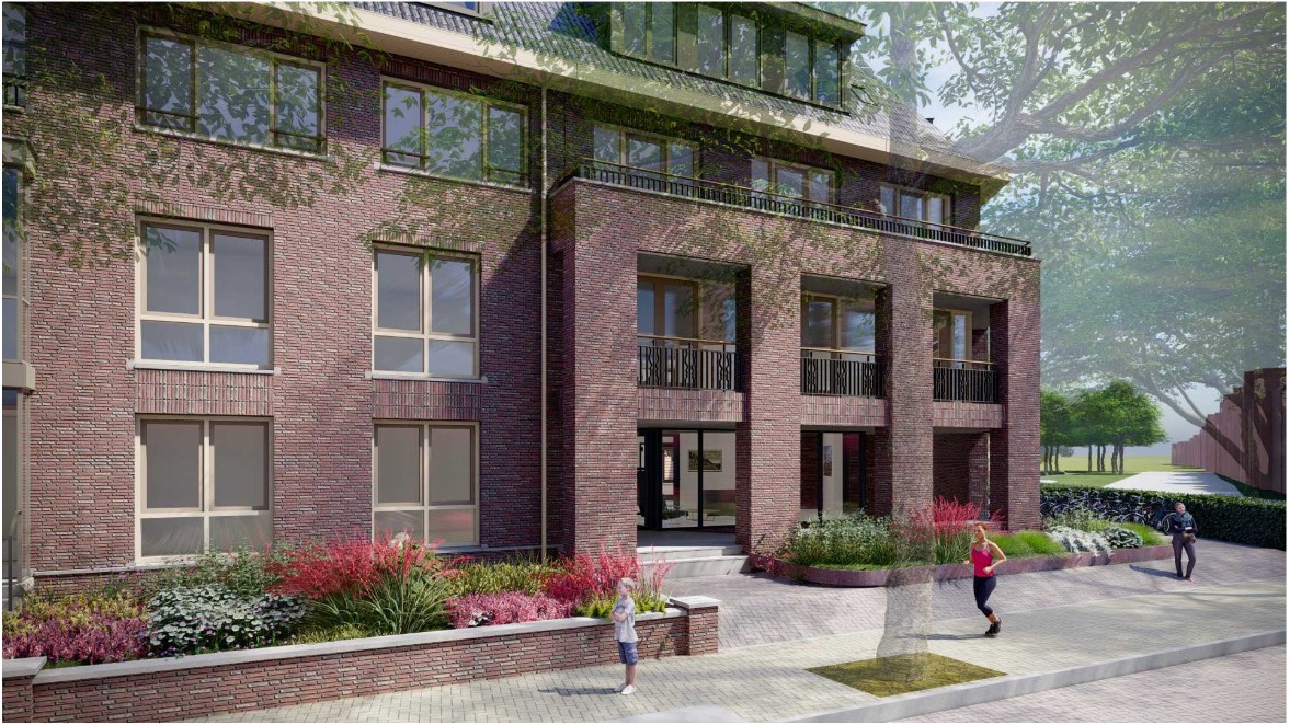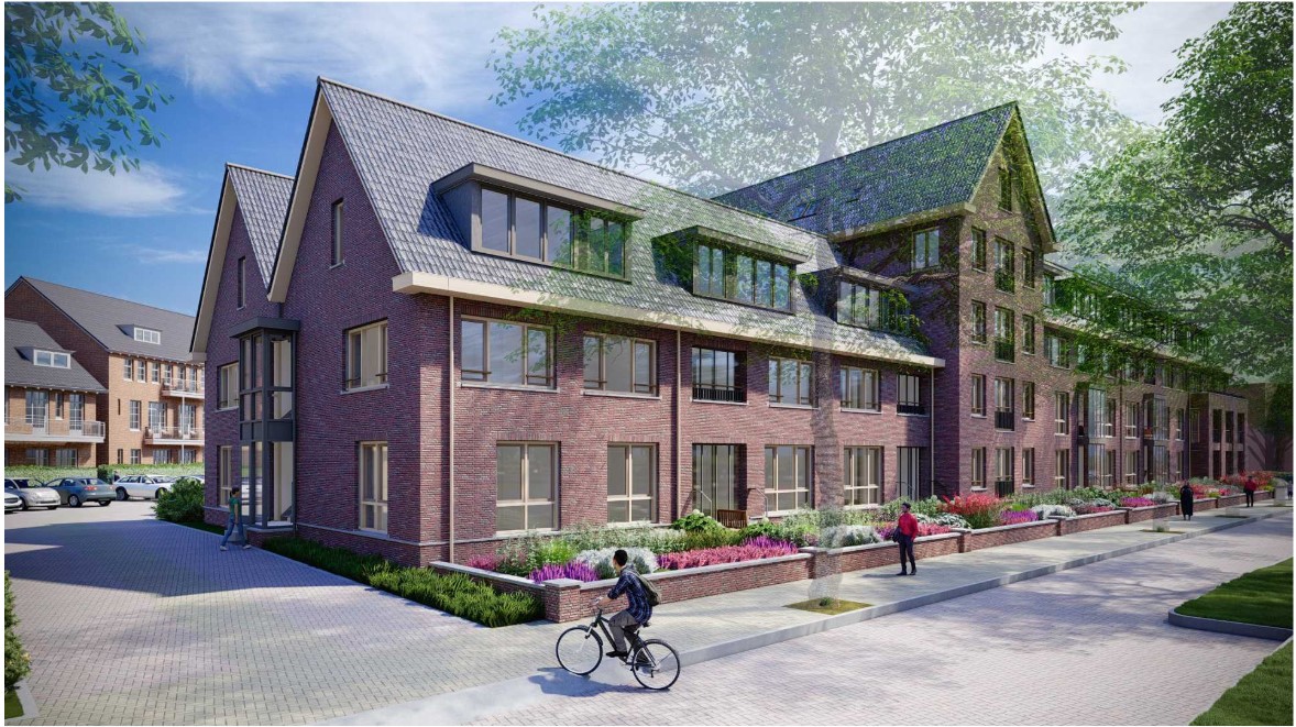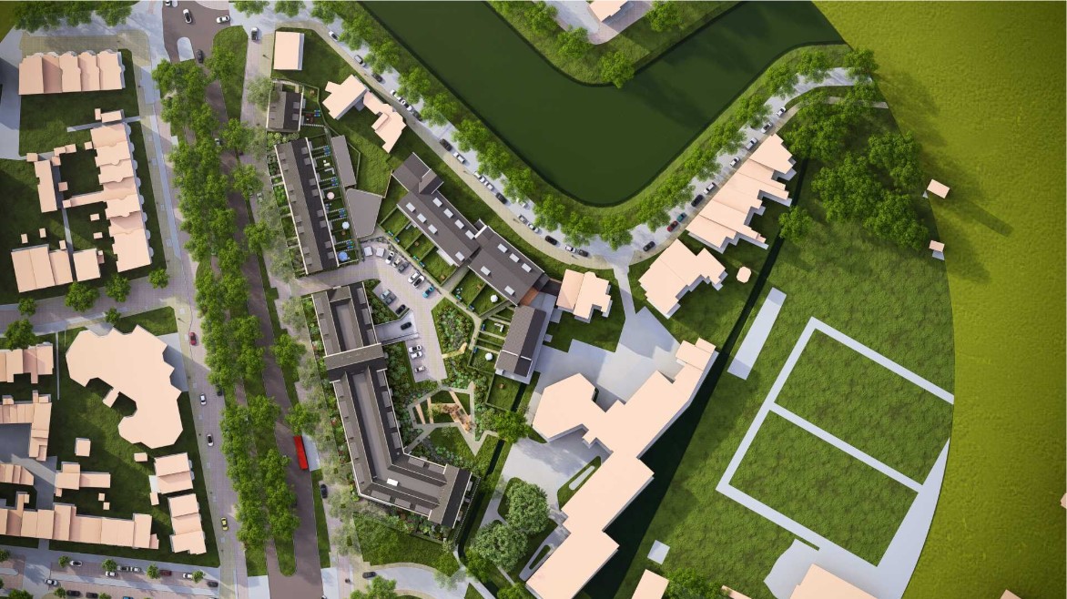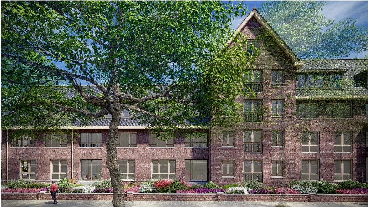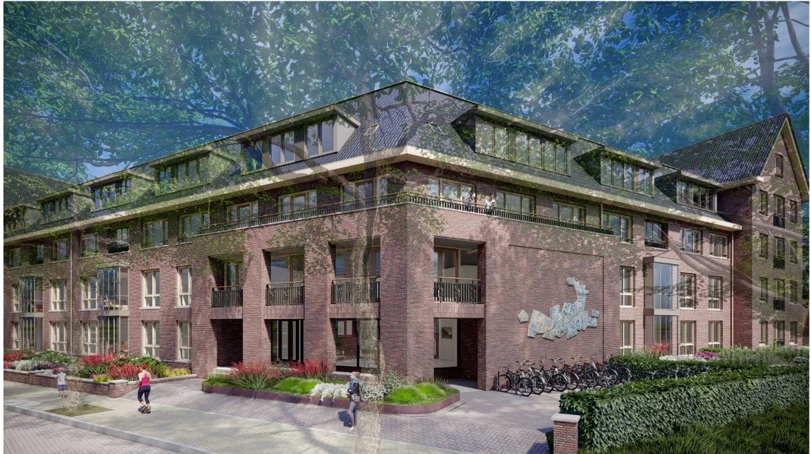 Het idee was en is om met een groep 55+’ers uit de wijk zelfstandig samen te gaan wonen. Dat gaat nu gebeuren in het complex met tien grondgebonden woningen, 36 koopappartementen en 24 sociale huurappartementen. Die laatste gaan verhuurd worden door Ons Doel. De woningen komen op de plek waar nu nog Oekraïense vluchtelingen worden opgevangen in een schoolgebouw en de naastgelegen gymzaal.