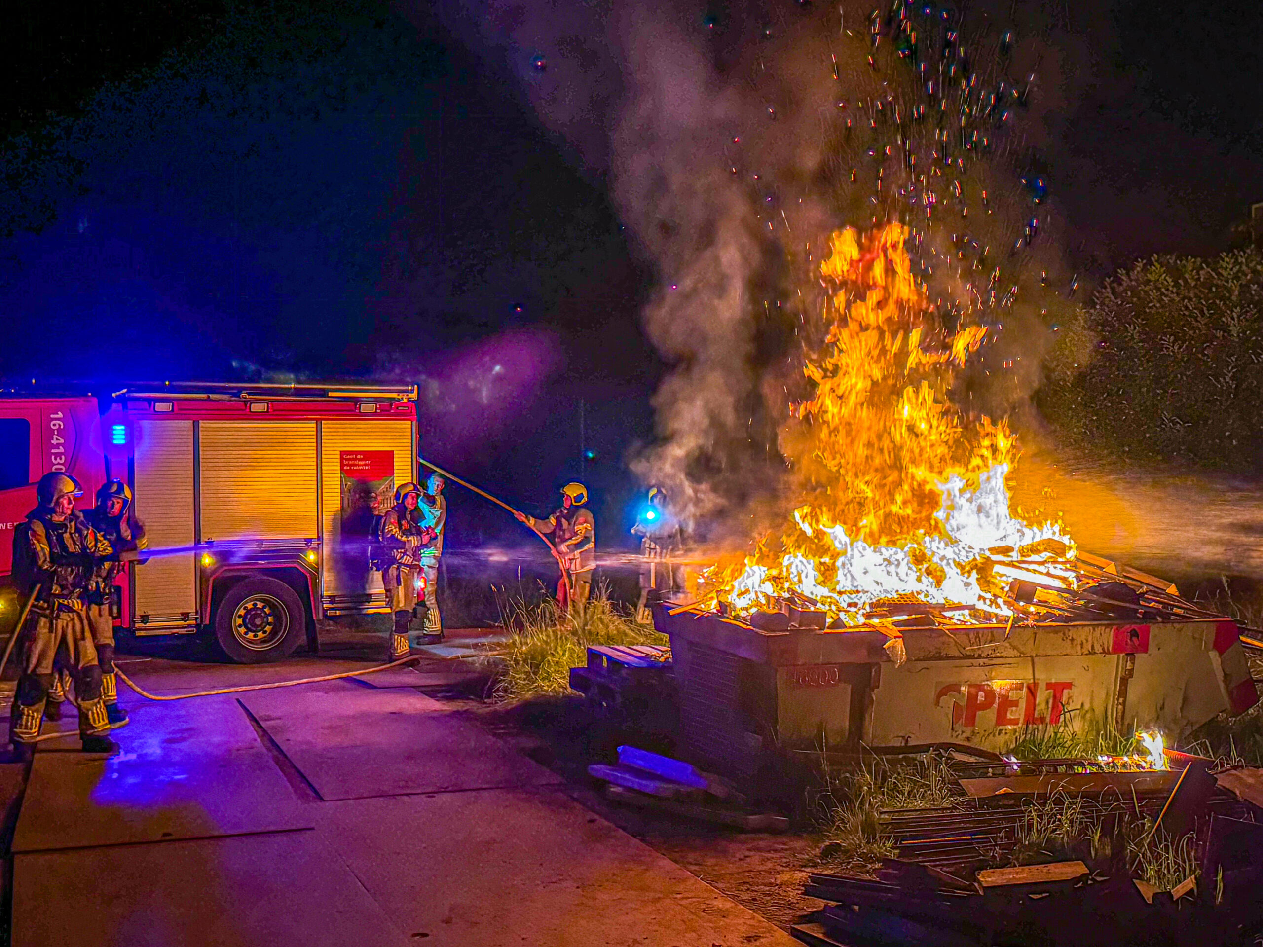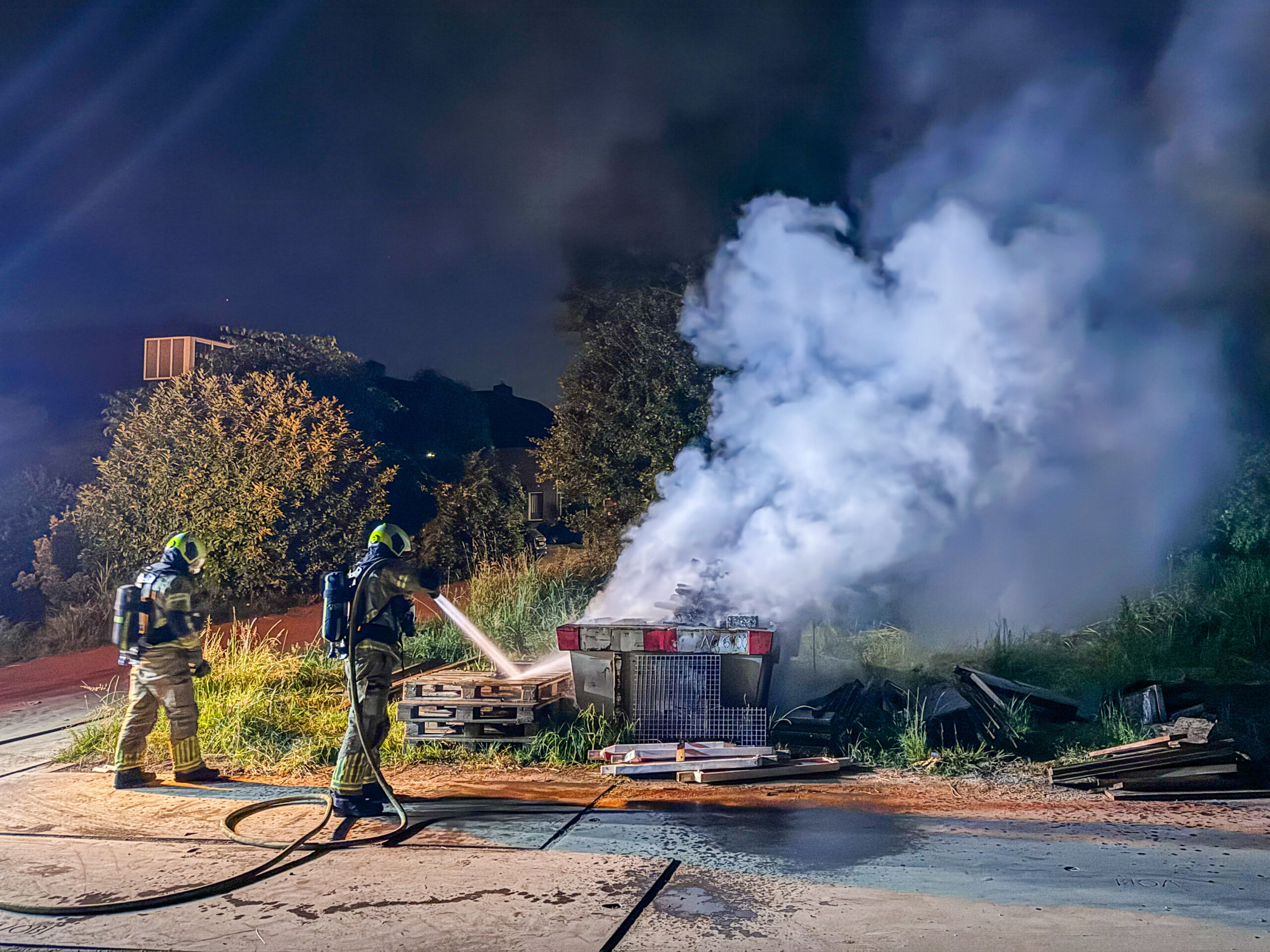 Toen de brandweer aankwam, stond de container inderdaad in lichterlaaie. De rode gloed van de vlammen was in de wijde omgeving te zien. Met en paar flinke stralen water is het vuur gedoofd.