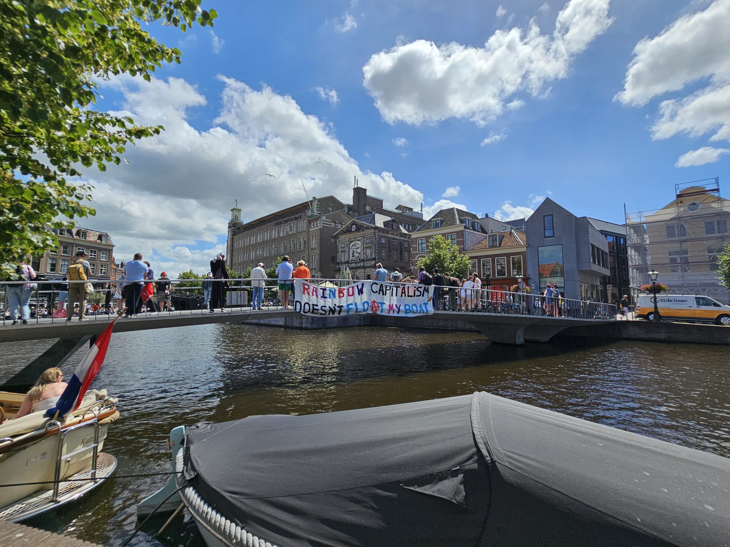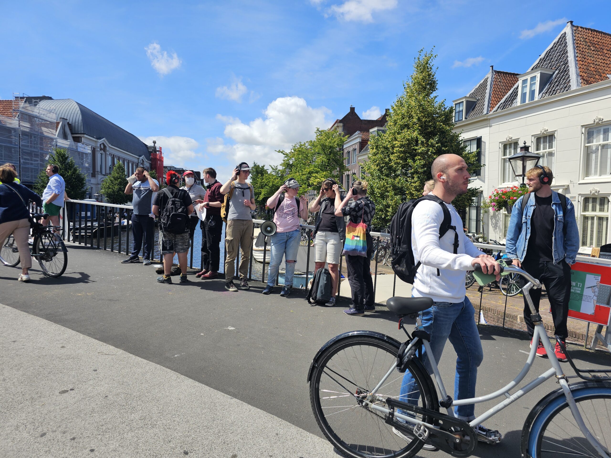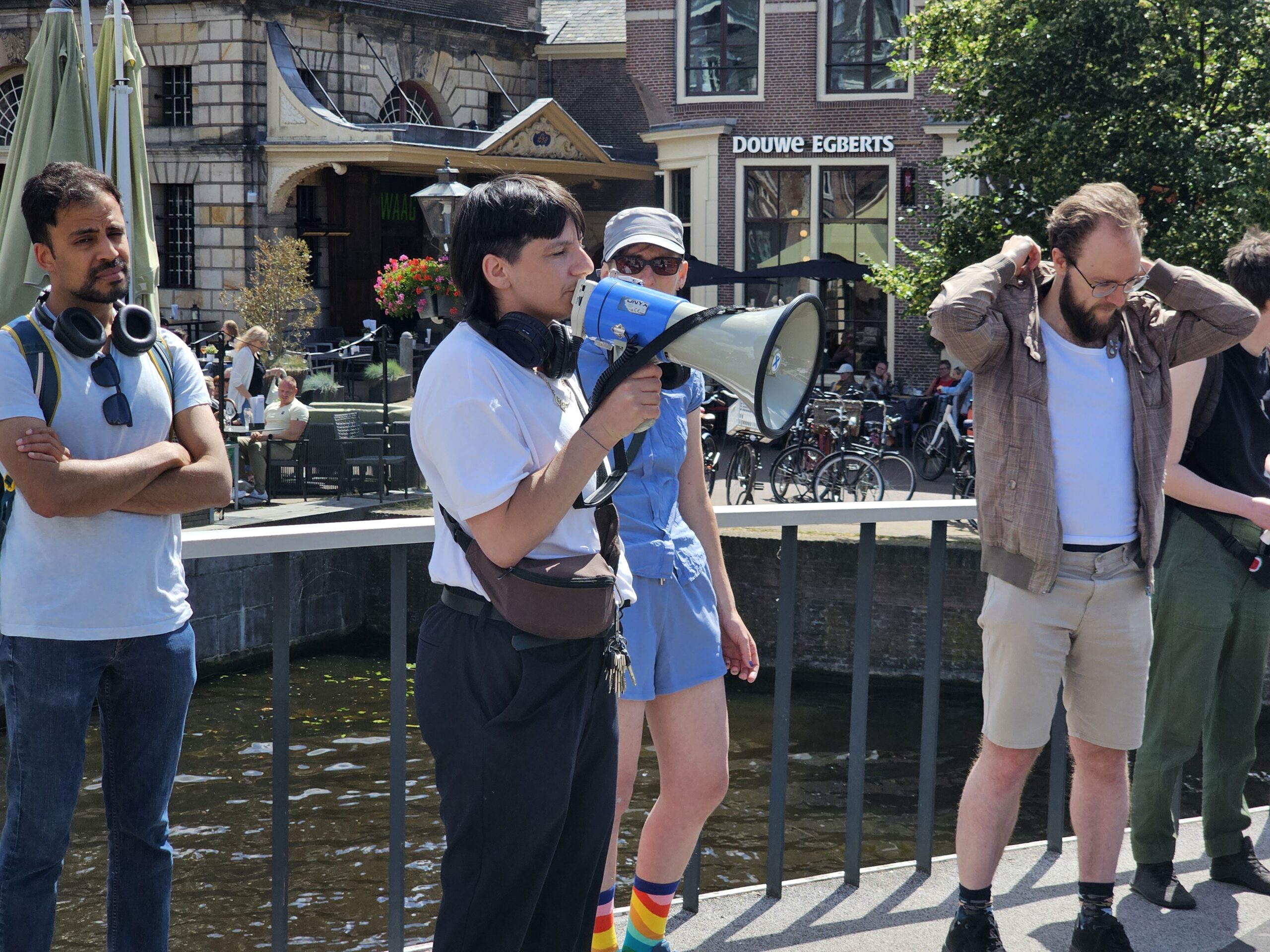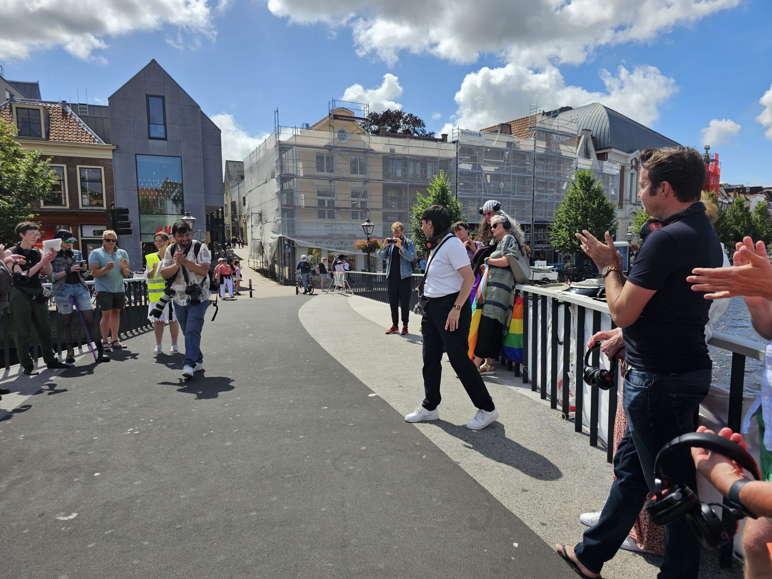 Theater De Generator voerde vrijdag op de Catharinabrug in Leiden een kort optreden op om aandacht te vragen voor het politieoptreden tijdens de Pride Leiden vorig jaar. Demonstranten die het feest te commercieel vinden, werden door de politie van de brug afgedreven toen ze een banner tegen regenboogkapitalisme probeerden op te hangen.