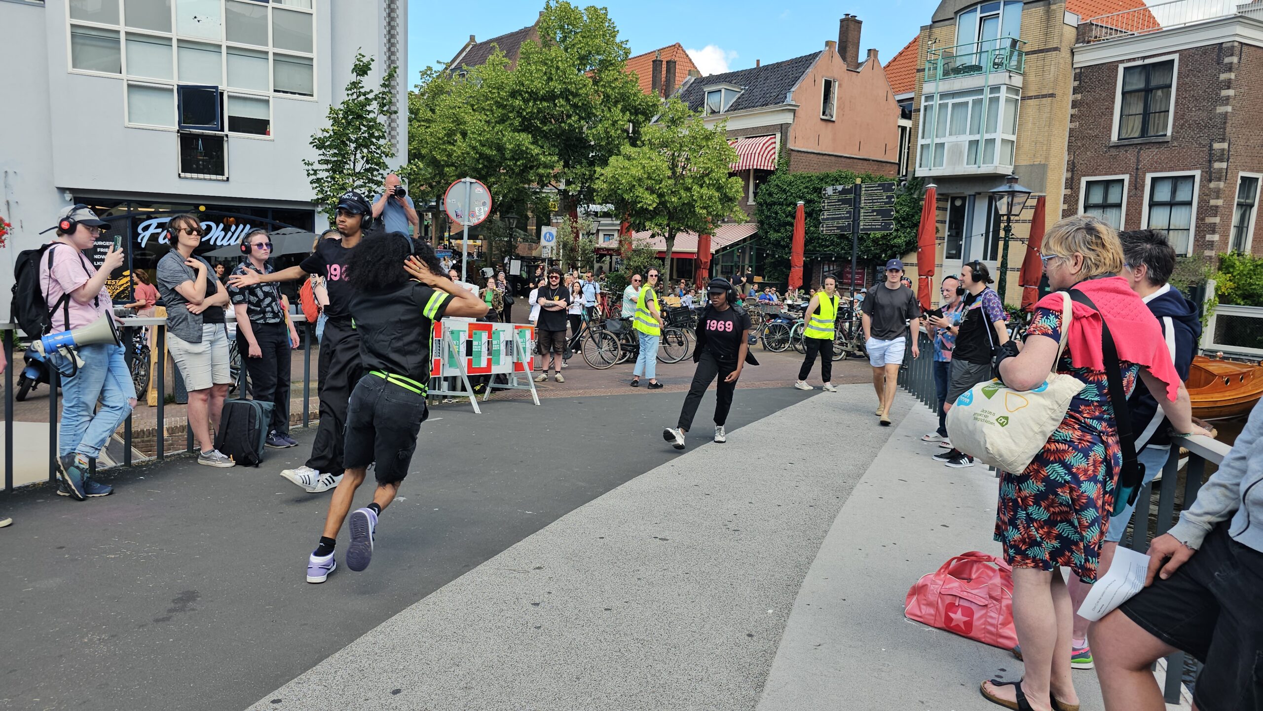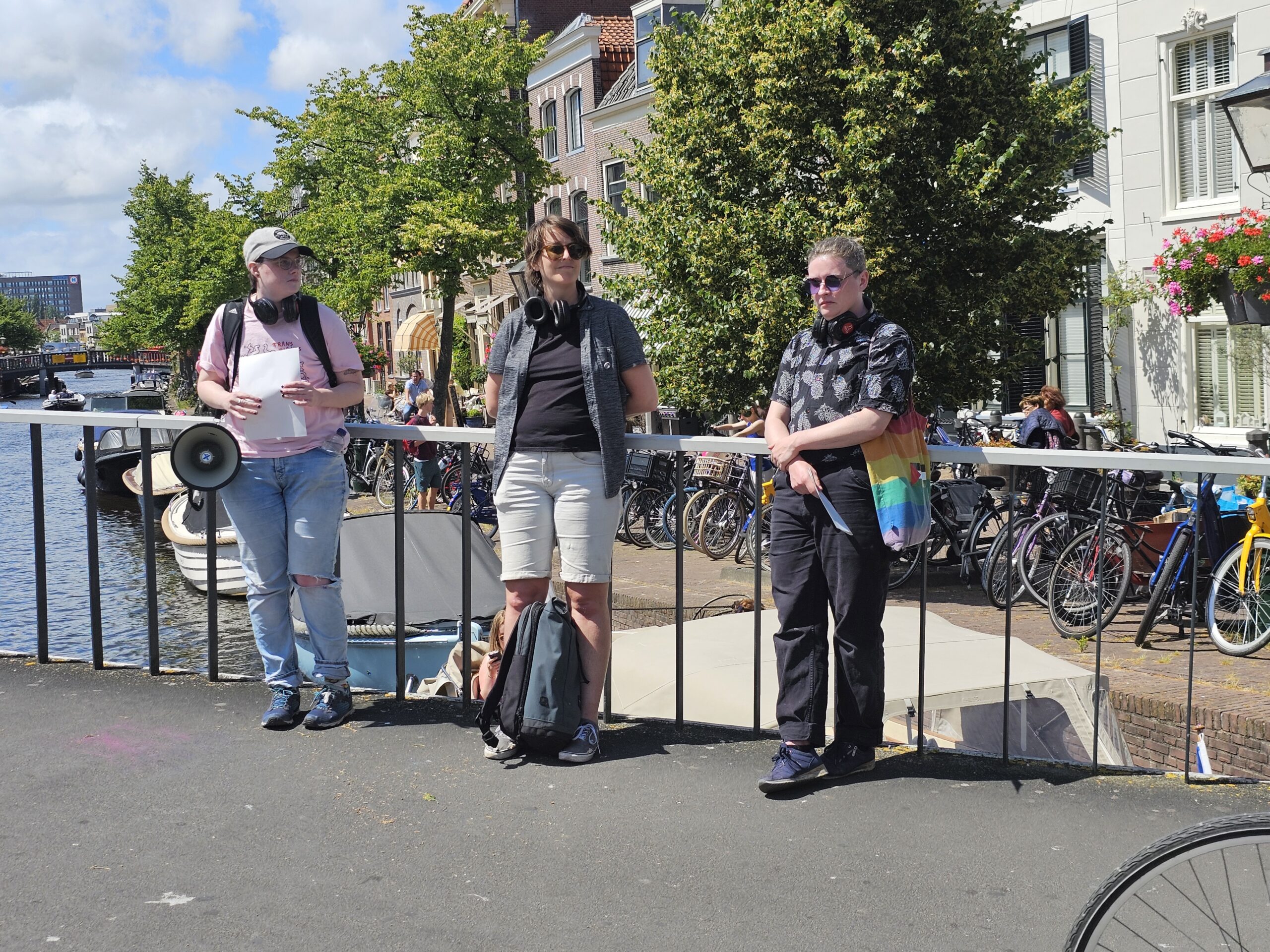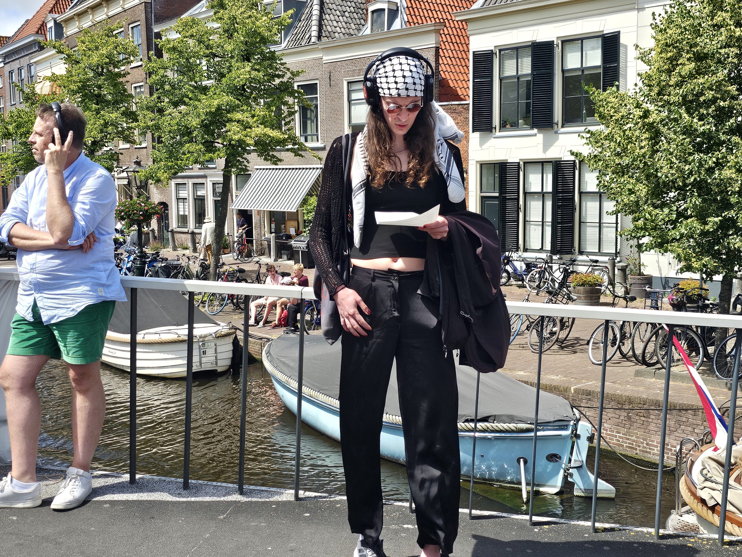 Theater De Generator voerde vrijdag op de Catharinabrug in Leiden een kort optreden op om aandacht te vragen voor het politieoptreden tijdens de Pride Leiden vorig jaar. Demonstranten die het feest te commercieel vinden, werden door de politie van de brug afgedreven toen ze een banner tegen regenboogkapitalisme probeerden op te hangen.