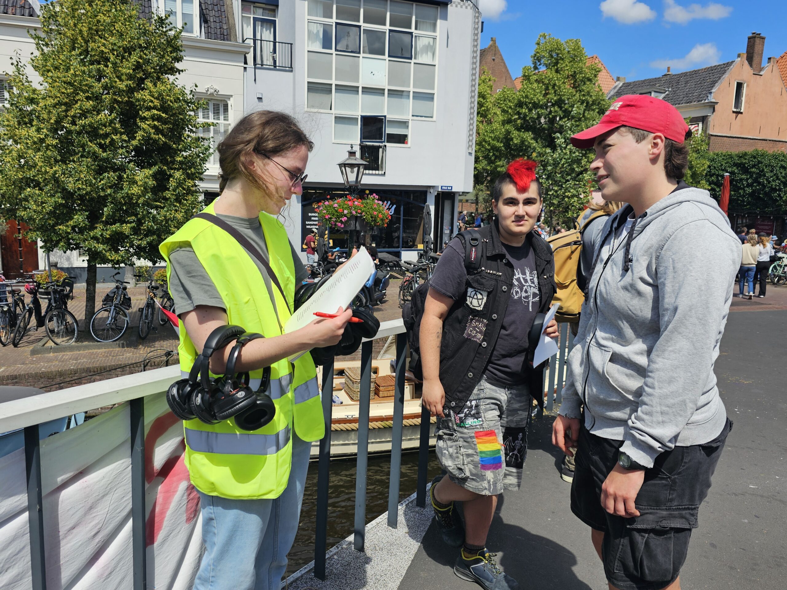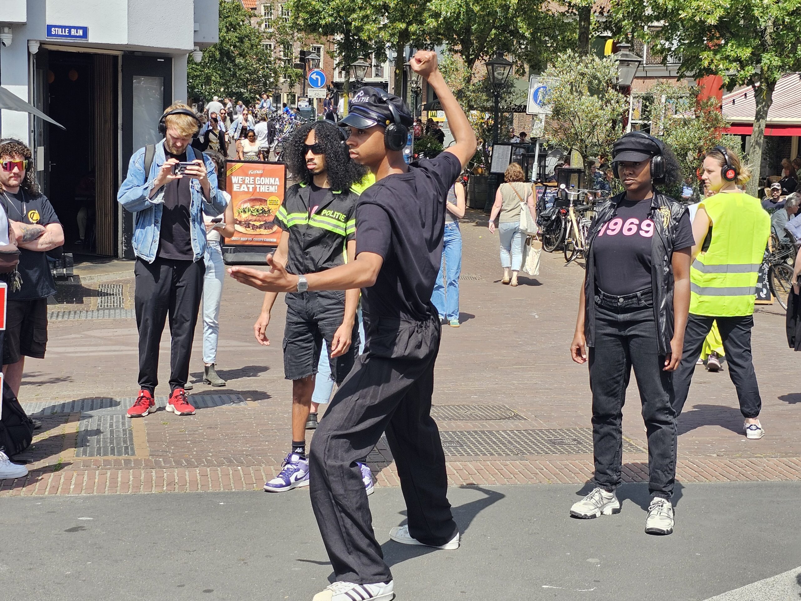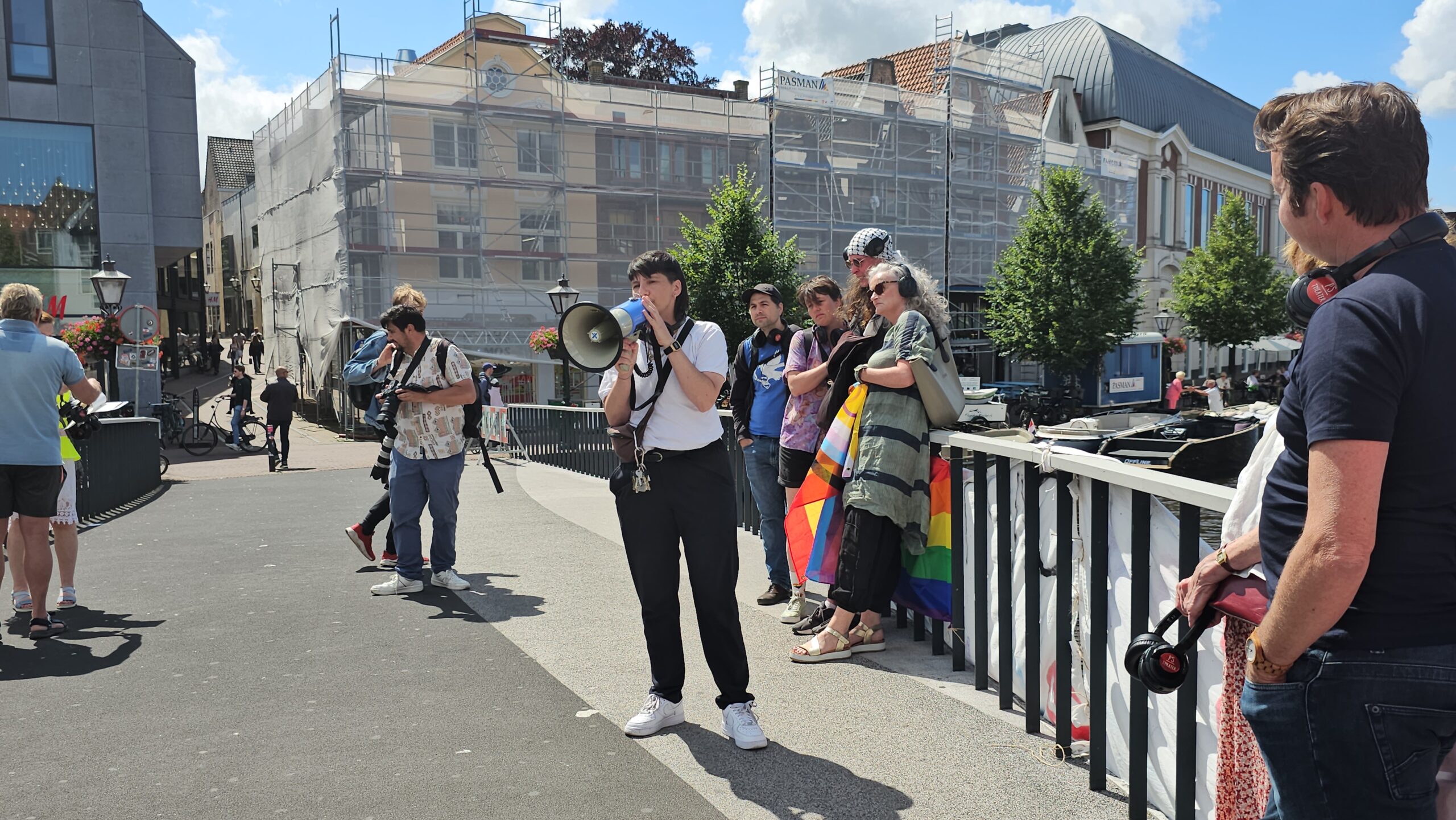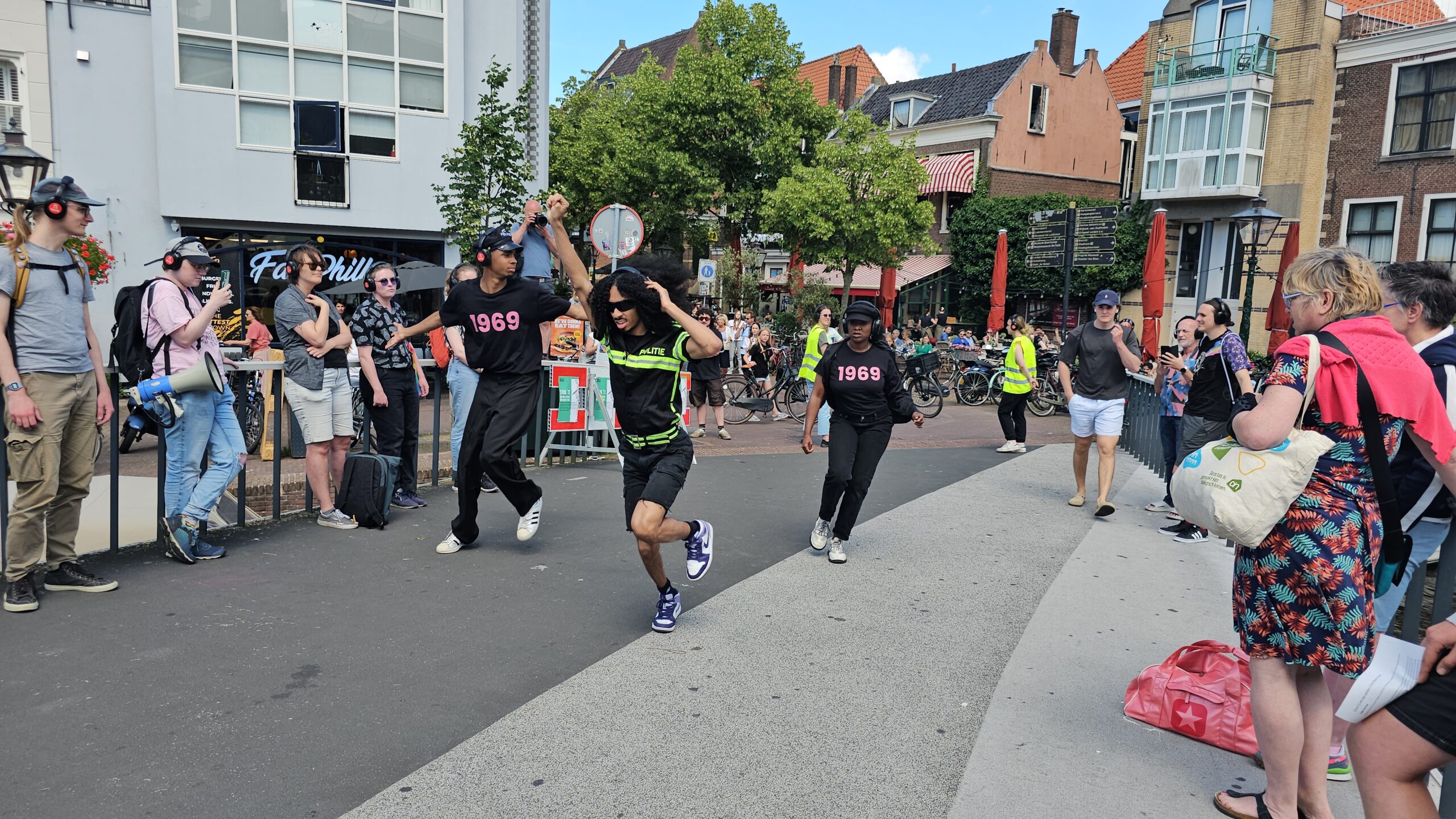 Theater De Generator voerde vrijdag op de Catharinabrug in Leiden een kort optreden op om aandacht te vragen voor het politieoptreden tijdens de Pride Leiden vorig jaar. Demonstranten die het feest te commercieel vinden, werden door de politie van de brug afgedreven toen ze een banner tegen regenboogkapitalisme probeerden op te hangen.