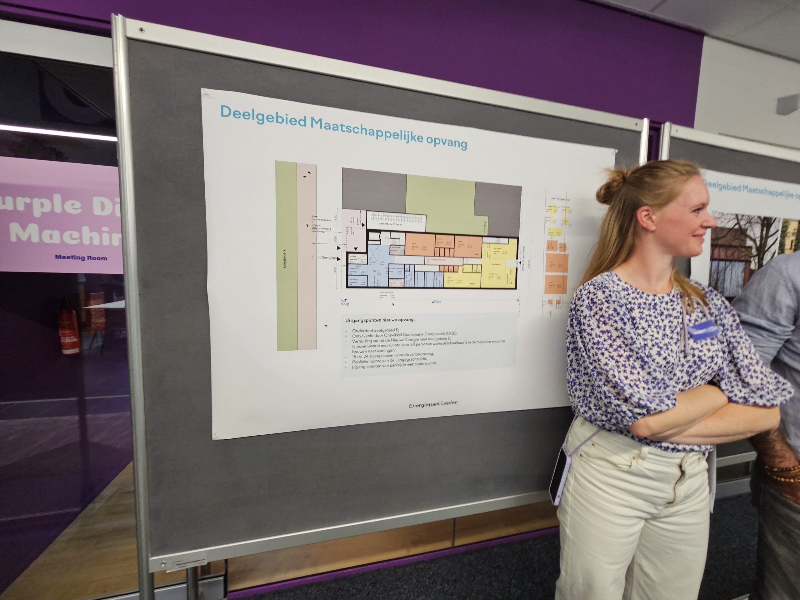 Links en rechts van de Uniper-centrale vindt de komende jaren een flinke herontwikkeling plaats. “We gaan geen huizen bouwen, maar buurten”, zegt wethouder Yvonne van Delft die verantwoordelijk is voor het Energiepark Leiden. “Het wordt een schuifoperatie. We beginnen met het pand waar nu nog PLNT in zit. Dat verhuist als eerste en krijgt een nieuw onderkomen in het gebouw Nieuwe Energie. De maatschappelijke opvang van De Binnenvest die daar nu nog huist, krijgt een nieuw onderkomen in de nieuwbouw langs de straat. Het losstaande pand dat door De Binnenvest wordt gebruikt voor bijvoorbeeld de winteropvang, Gebouw C, wordt gesloopt. Mogelijk blijven wel de contouren zichtbaar, waardoor het deel gaat uitmaken van het park.