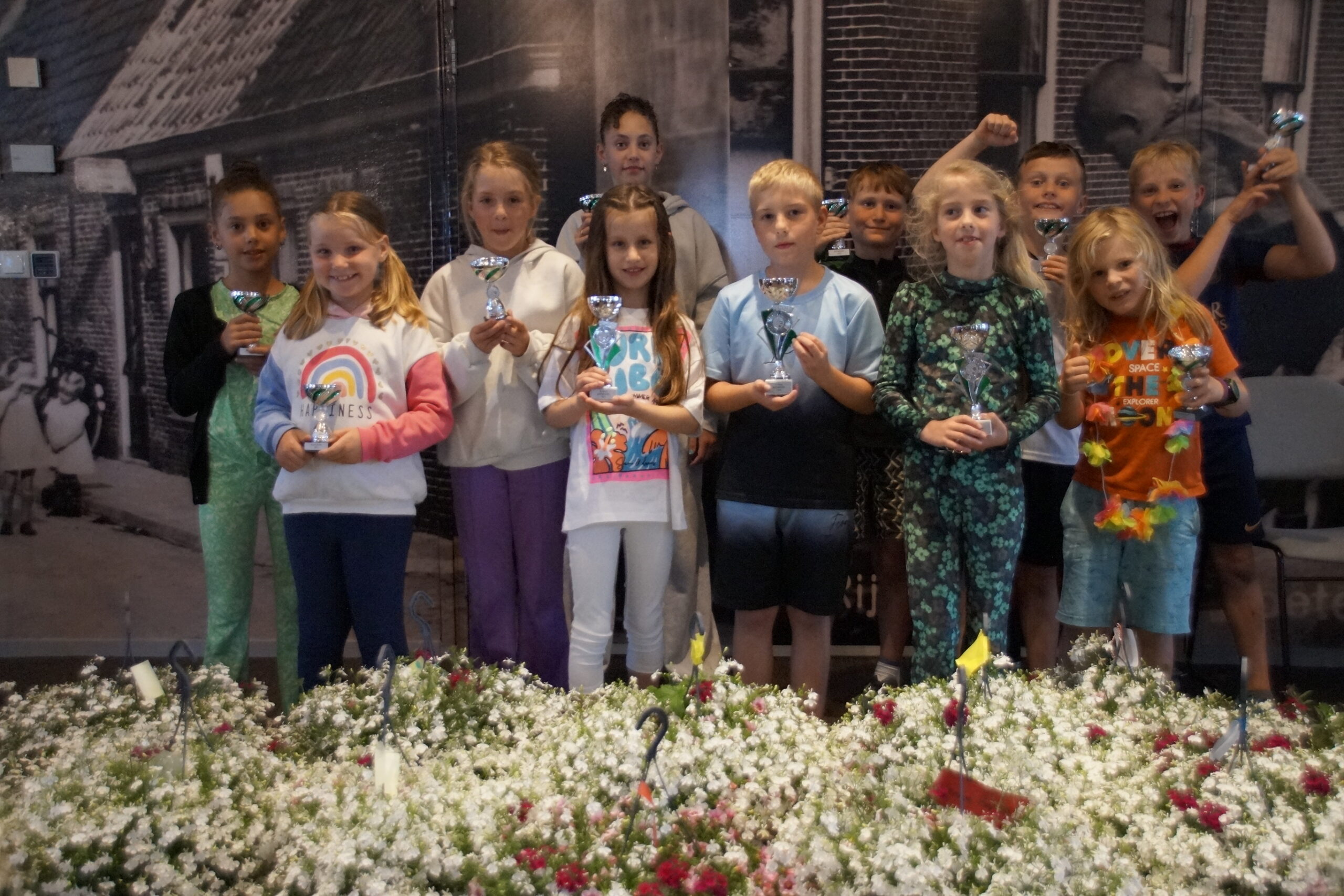 De juryleden van de vijftiende editie van project Bloemenzee brachten donderdag een bezoek aan beide basisscholen. Ze nomineerden de vier mooiste plantenbakken per klas. De kinderen die de plantjes verzorgden, mochten vrijdag naar het gemeentehuis komen. “Het was dit jaar extra moeilijk, door de vele regen en het spaarzame mooie weer. Dat zijn geen goede omstandigheden om je plantjes op te kweken”, legt initiatiefnemer Peter de Groot uit.
