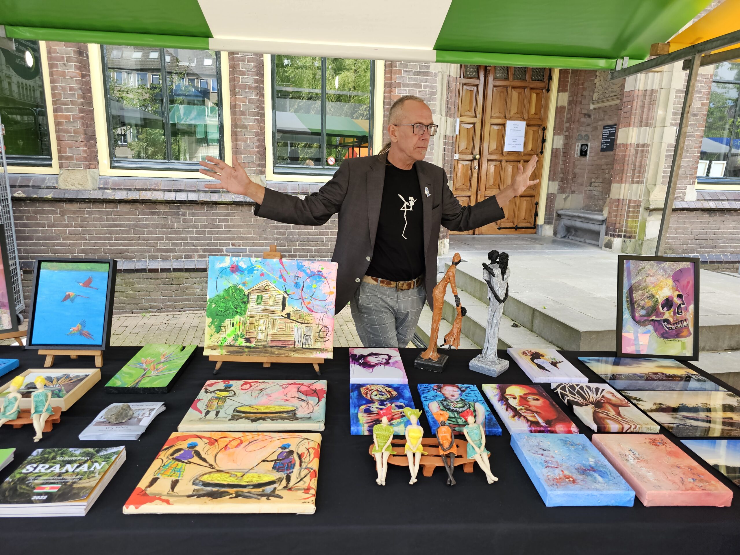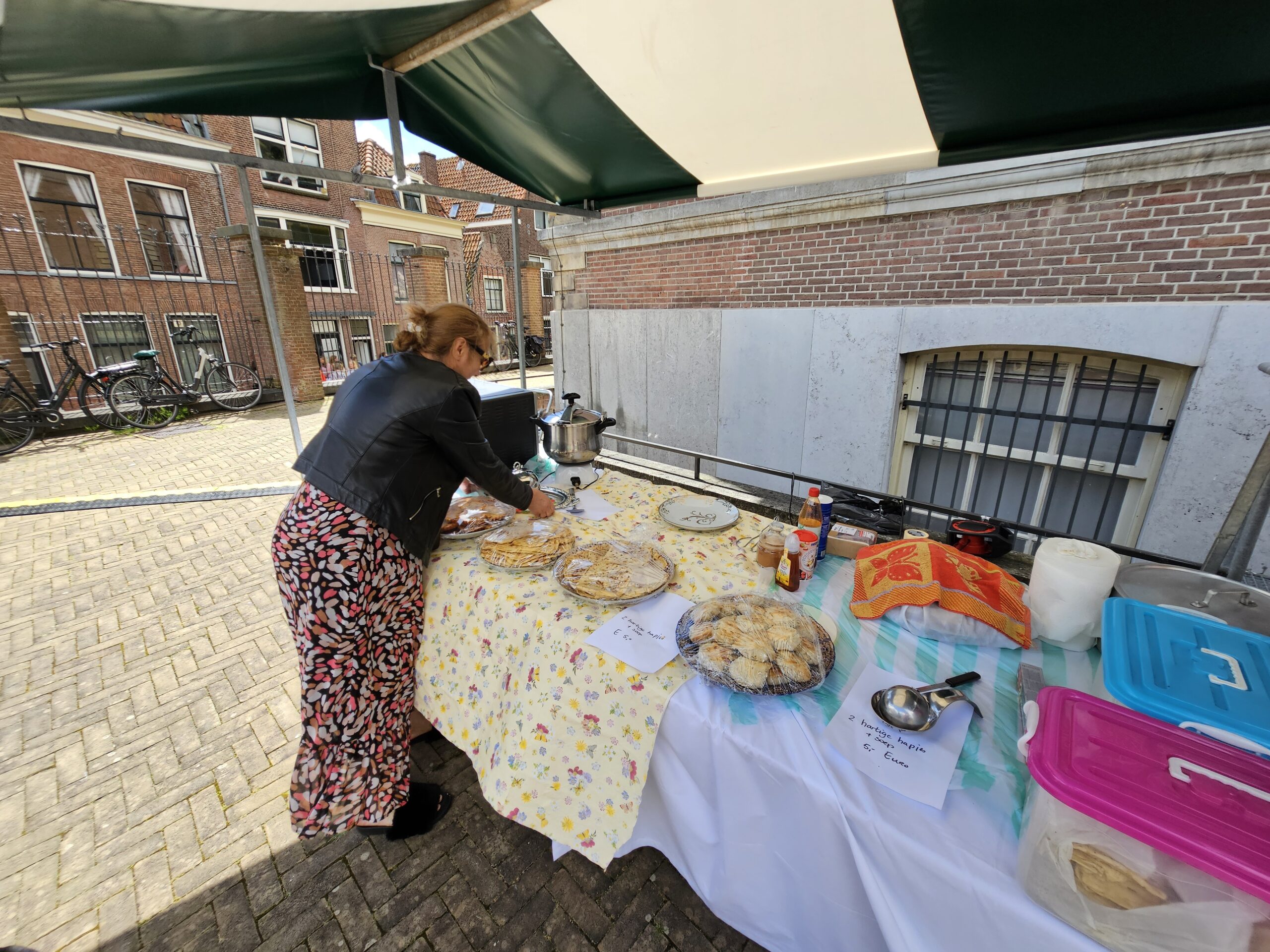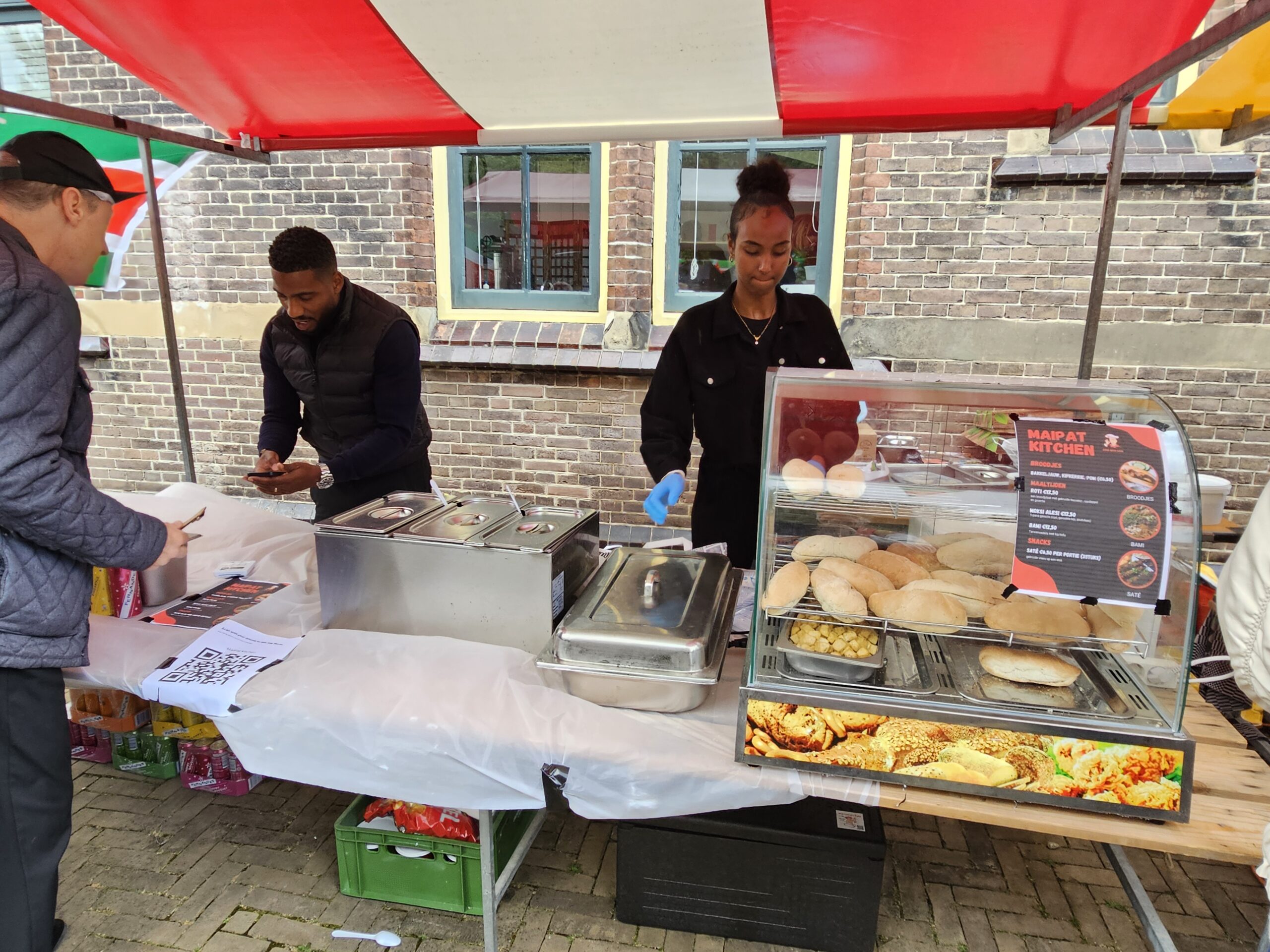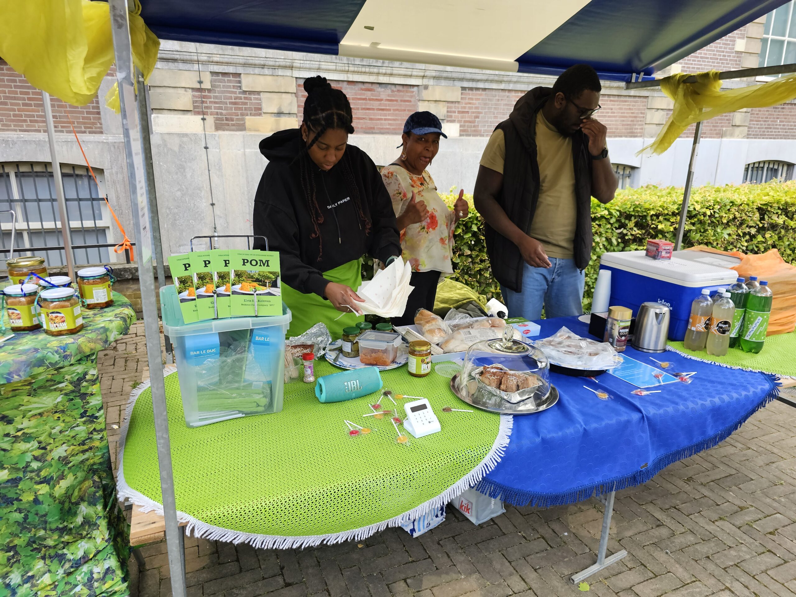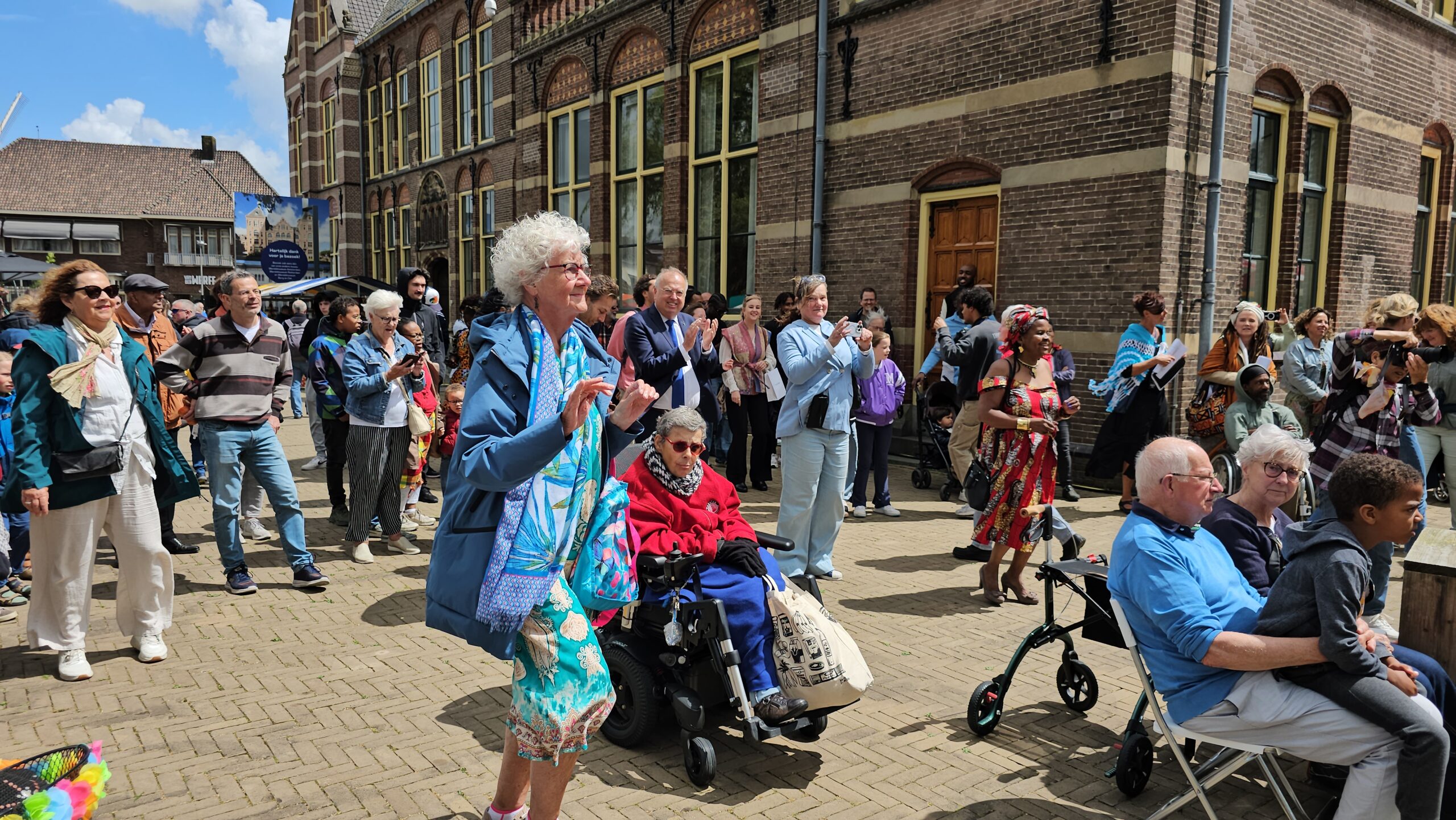 Standjes met allerlei hapjes en drankjes, maar ook met kleurrijke kleding en kunst, vulden zaterdagmiddag het buitenterrein van Wereldmuseum Leiden. Songs of Freedom organiseerde er op feestelijke wijze het verbreken van de ketenen, oftewel: Keti Koti. Een week eerder werden de slachtoffers van ons slavernijverleden al herdacht.