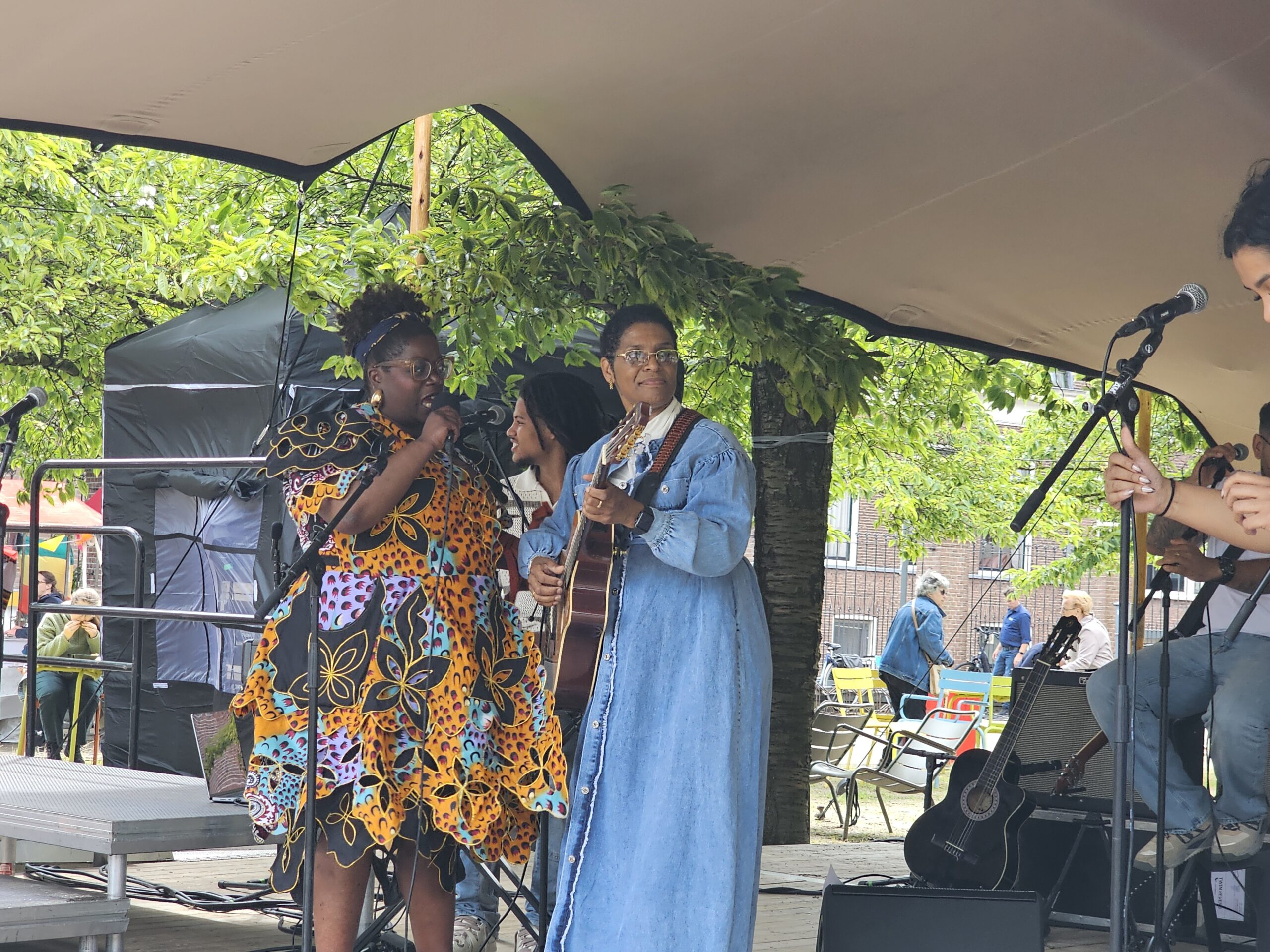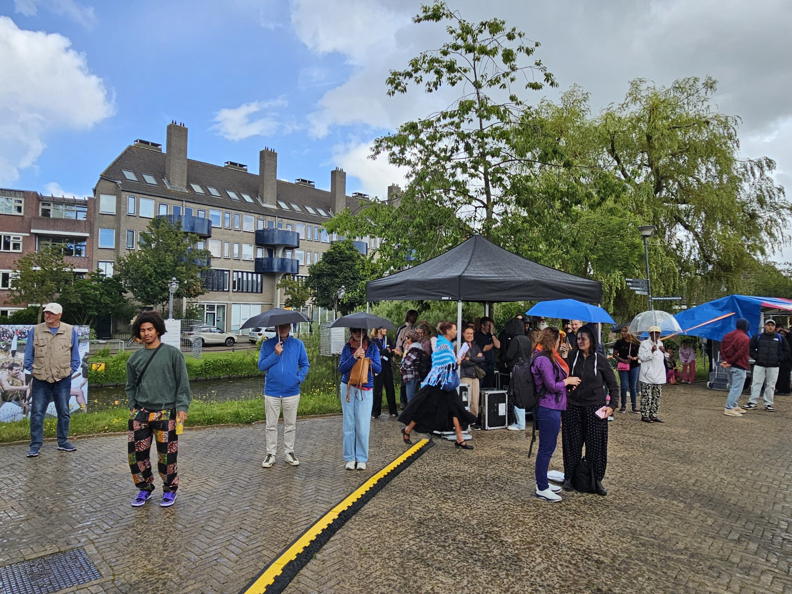 Tussen de enorme hoosbuien door genoot het publiek verder van optredens van onder meer ‘Motha Earth’, zangeres Clementina en het Leids black gospel projectkoor met Nancy Zeefuik.