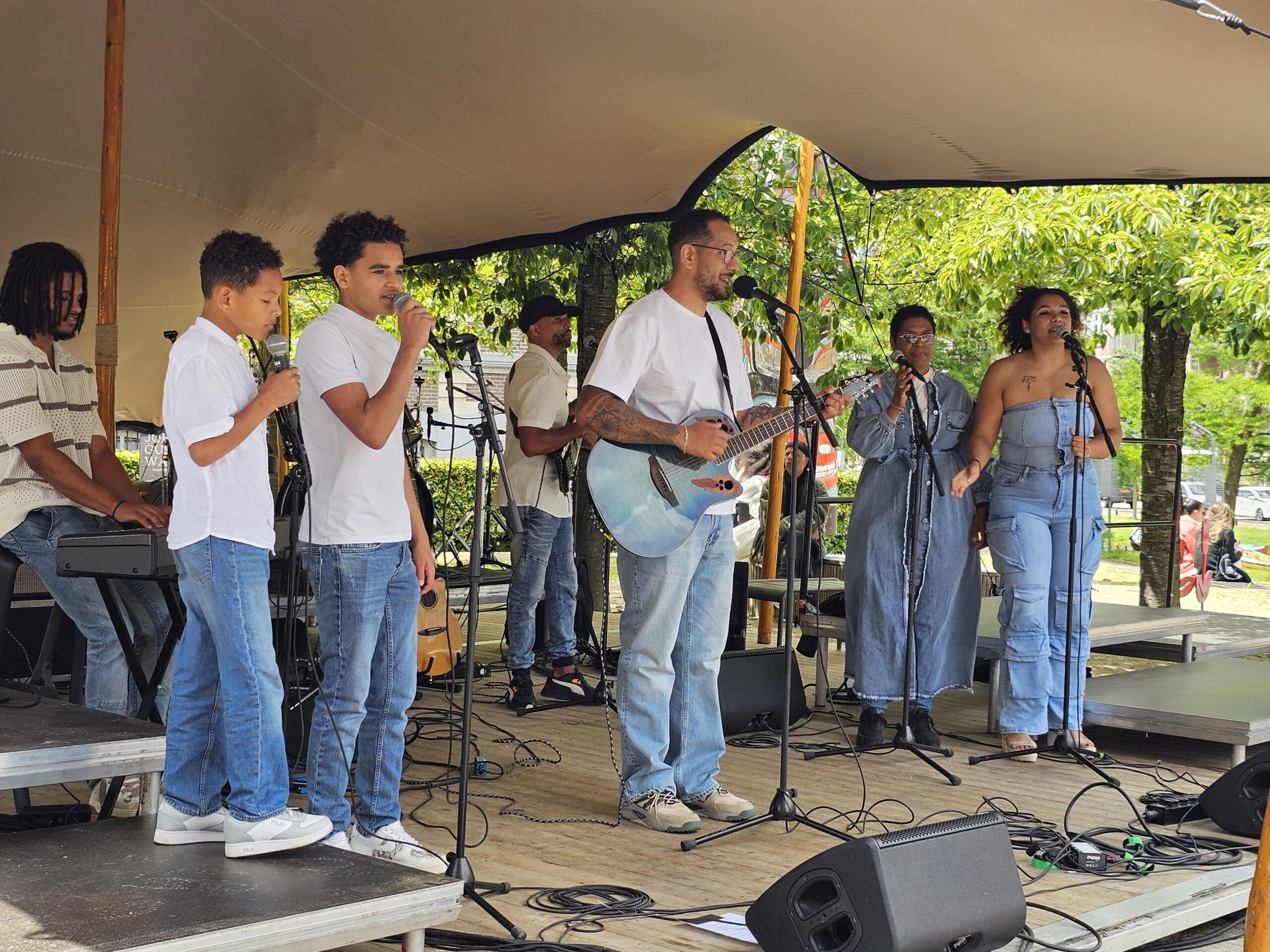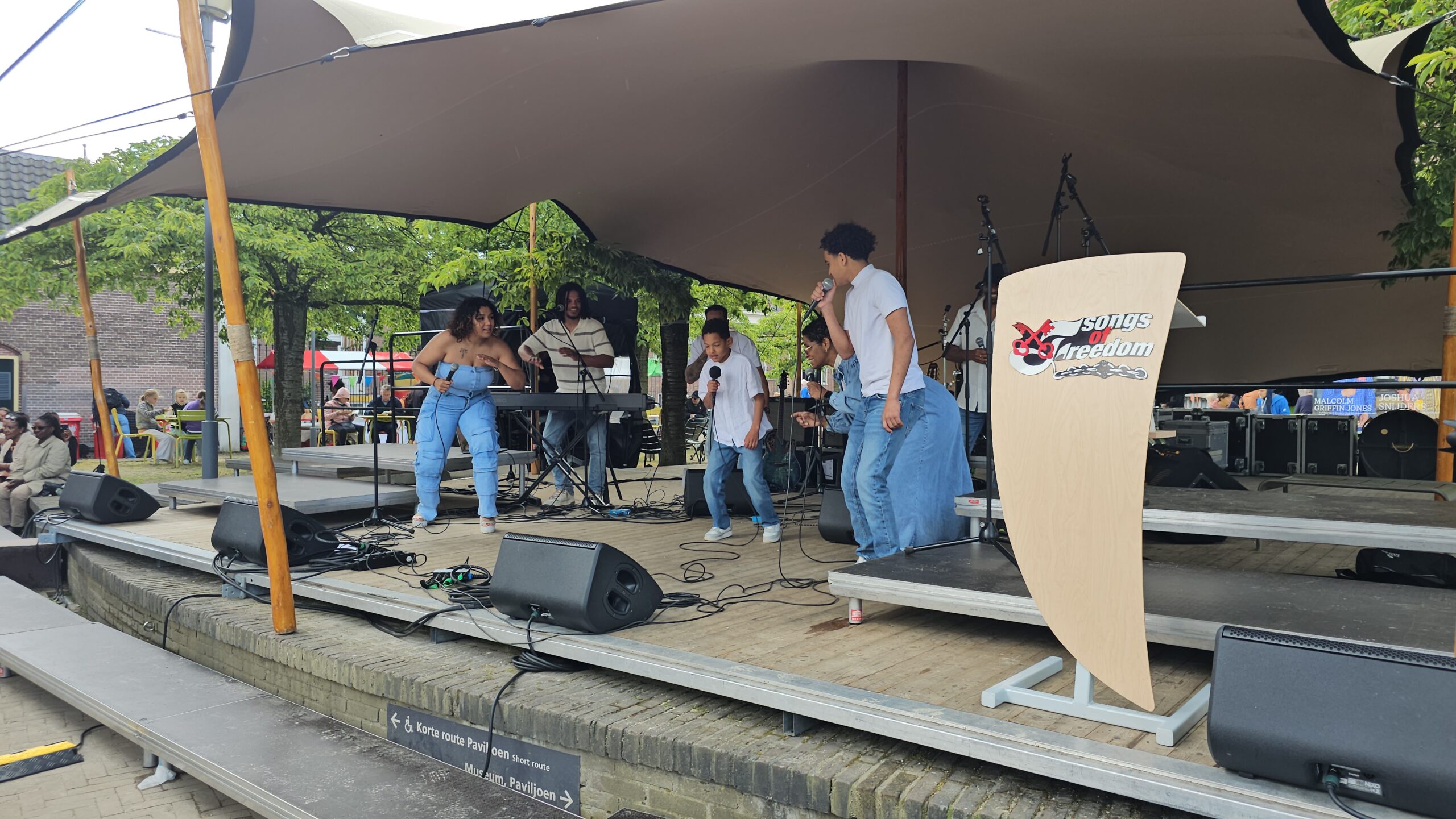 Na een, letterlijk, stormachtige opening door Songs of Freedom-voorzitter Jacintha Groen en de burgemeester was het tijd voor een serie optredens die begon met de ‘Toney Family Band’. In deze muzikale familie doen inderdaad alle generaties mee.