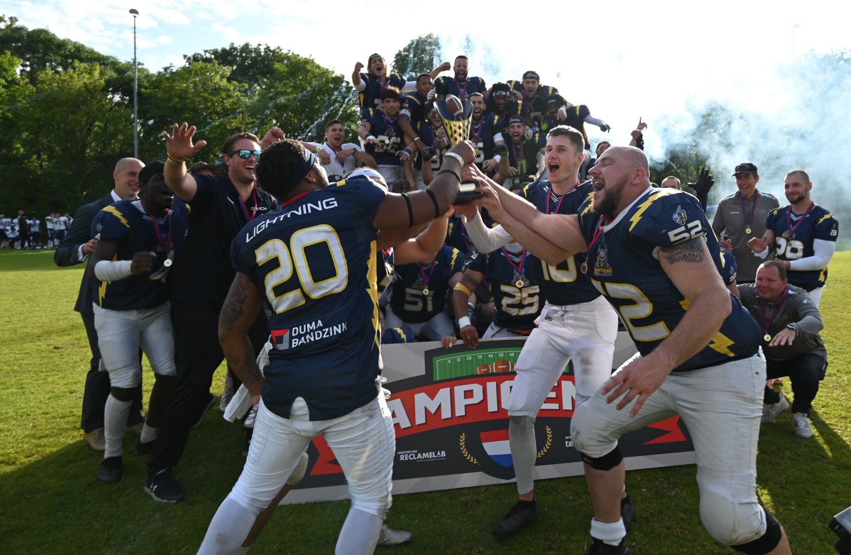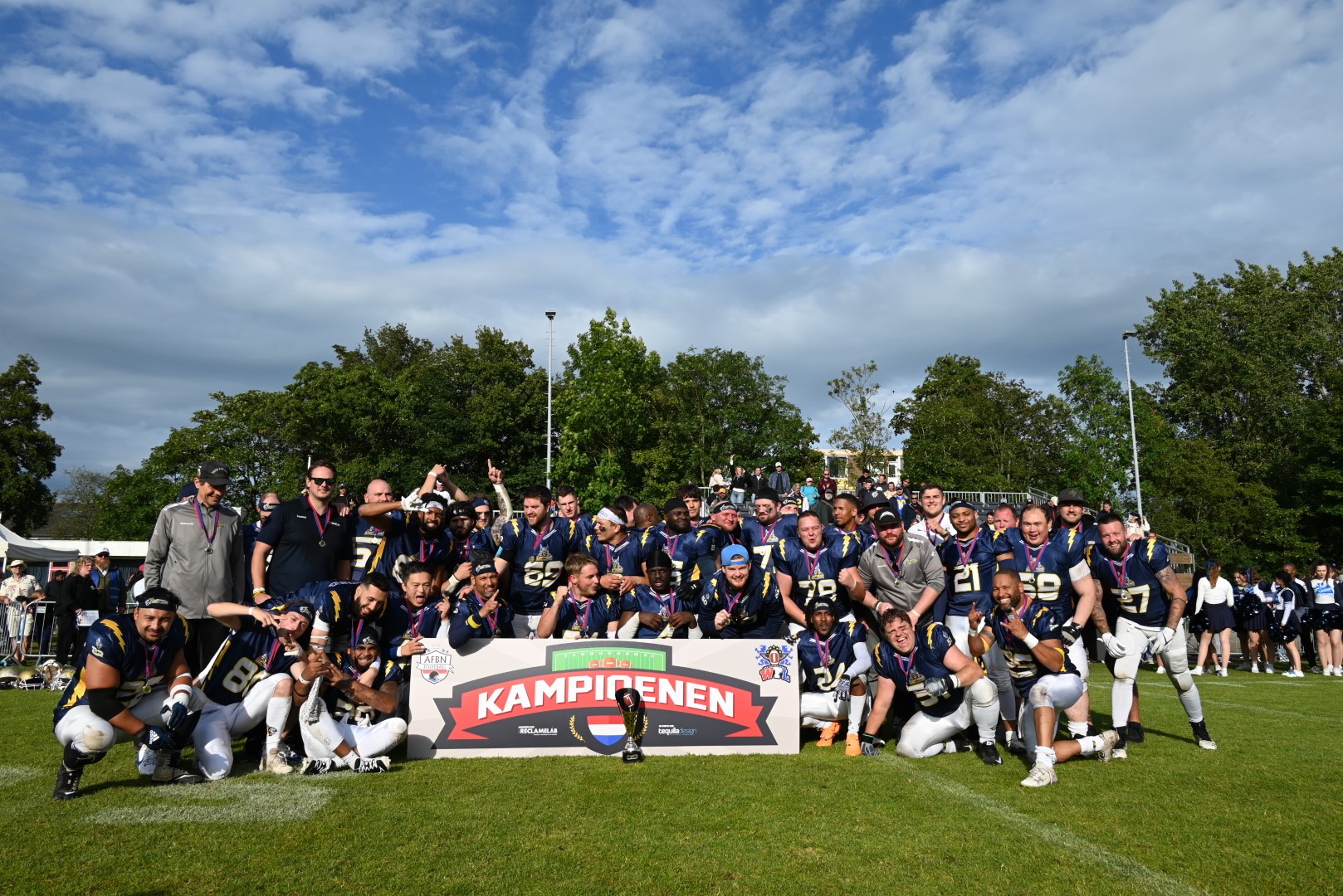 “Zondag 9 juli 2023 is een dag niet nooit meer vergeten gaat worden”, prijkt er nu nog op de website van de American Footballclub uit Leiden. Als ze in de loop van de ochtend zijn bijgekomen van de feestvreugde, hoeft de webmaster van de club slechts de datum te veranderen.