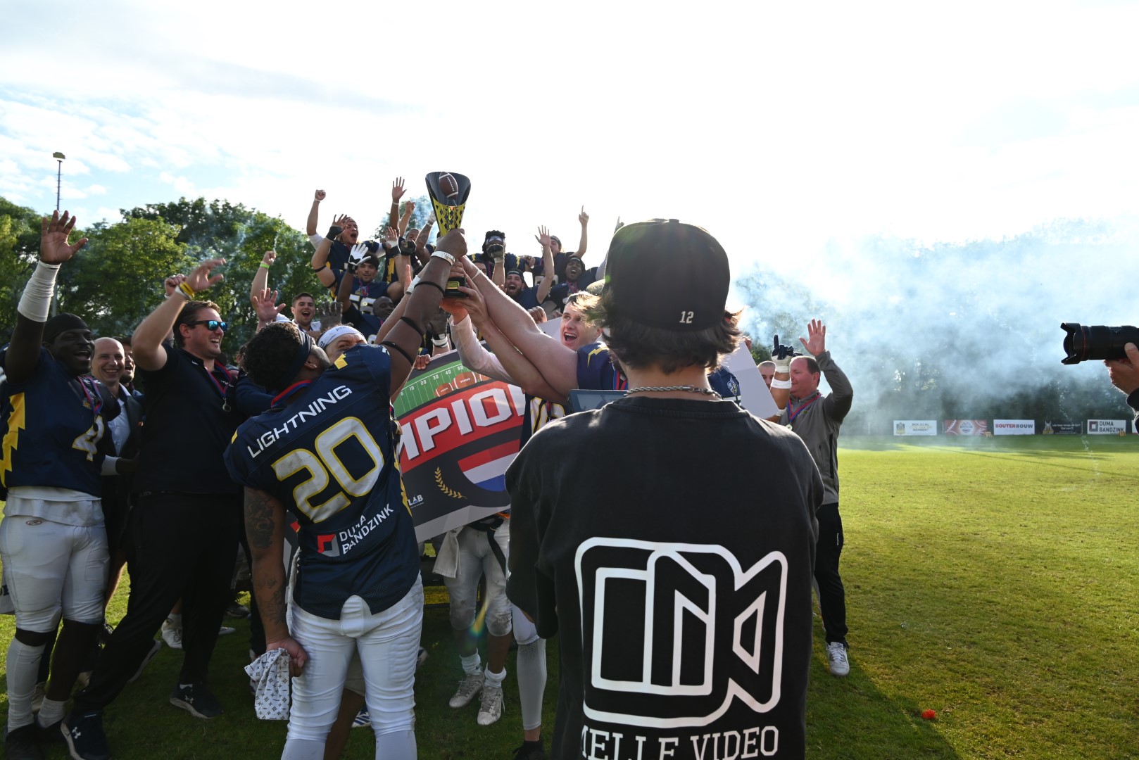 Lightning Leiden heeft alle verwachtingen waargemaakt en heeft zondag het landskampioenschap American Football geprolongeerd. In een zinderende strijd werden de Maastricht Wildcats verslagen. Het werd 24-14 voor de thuisploeg.