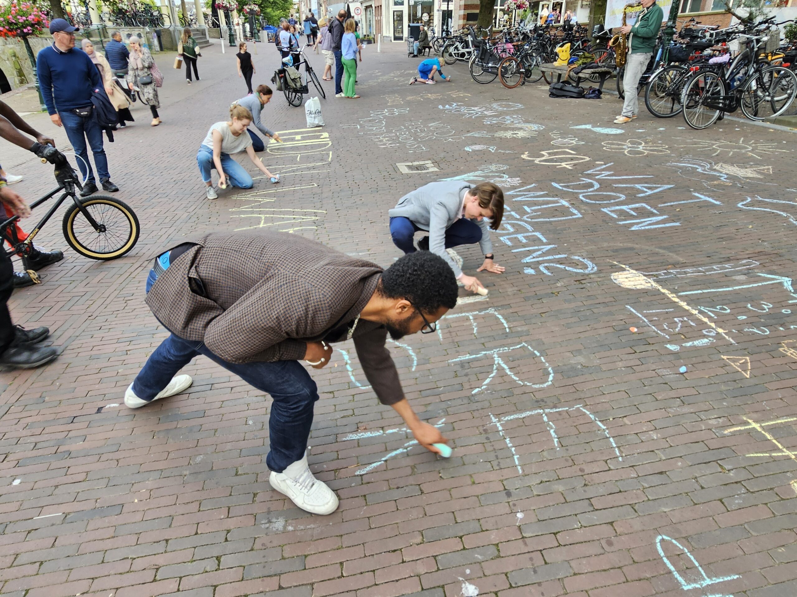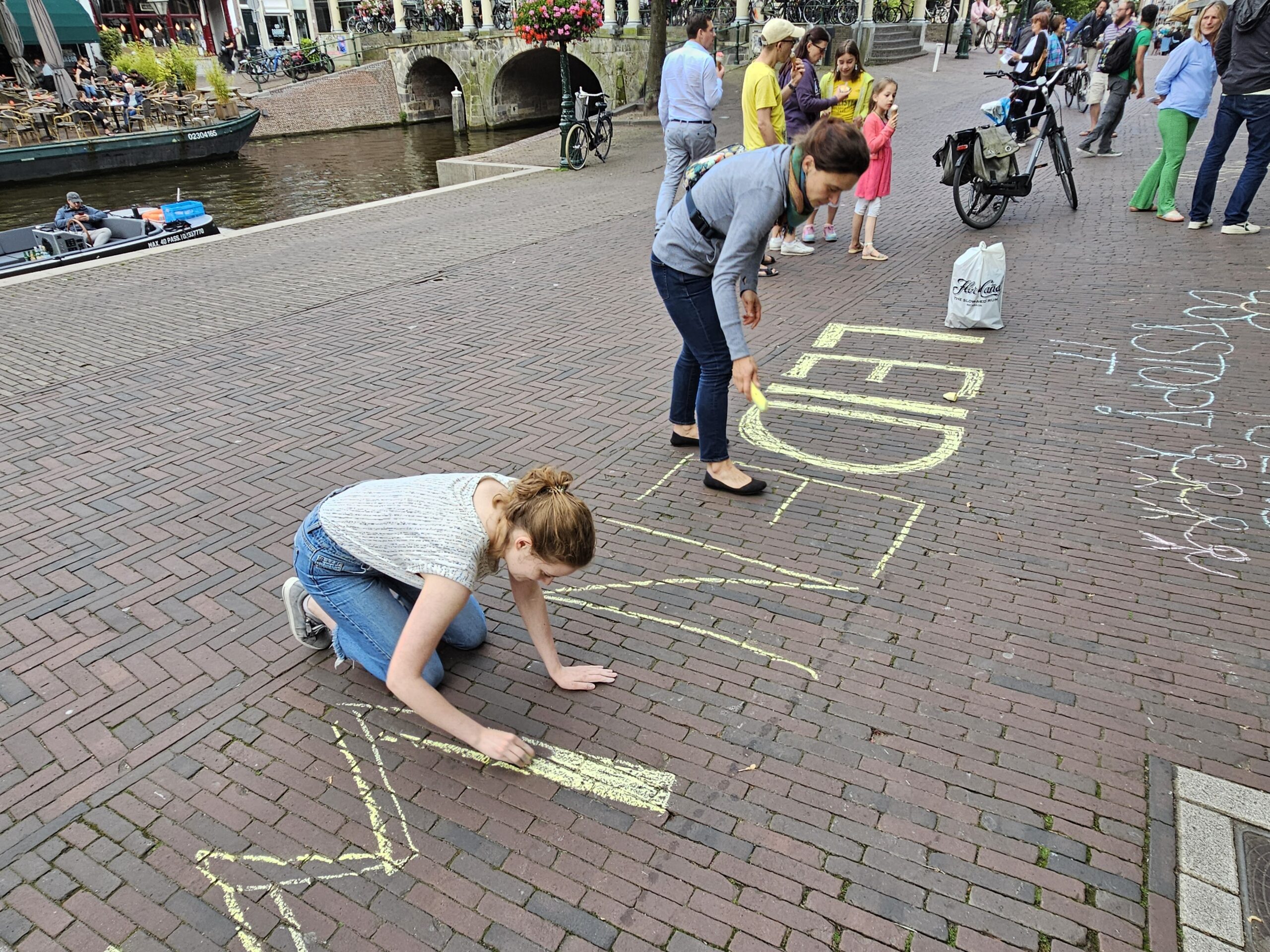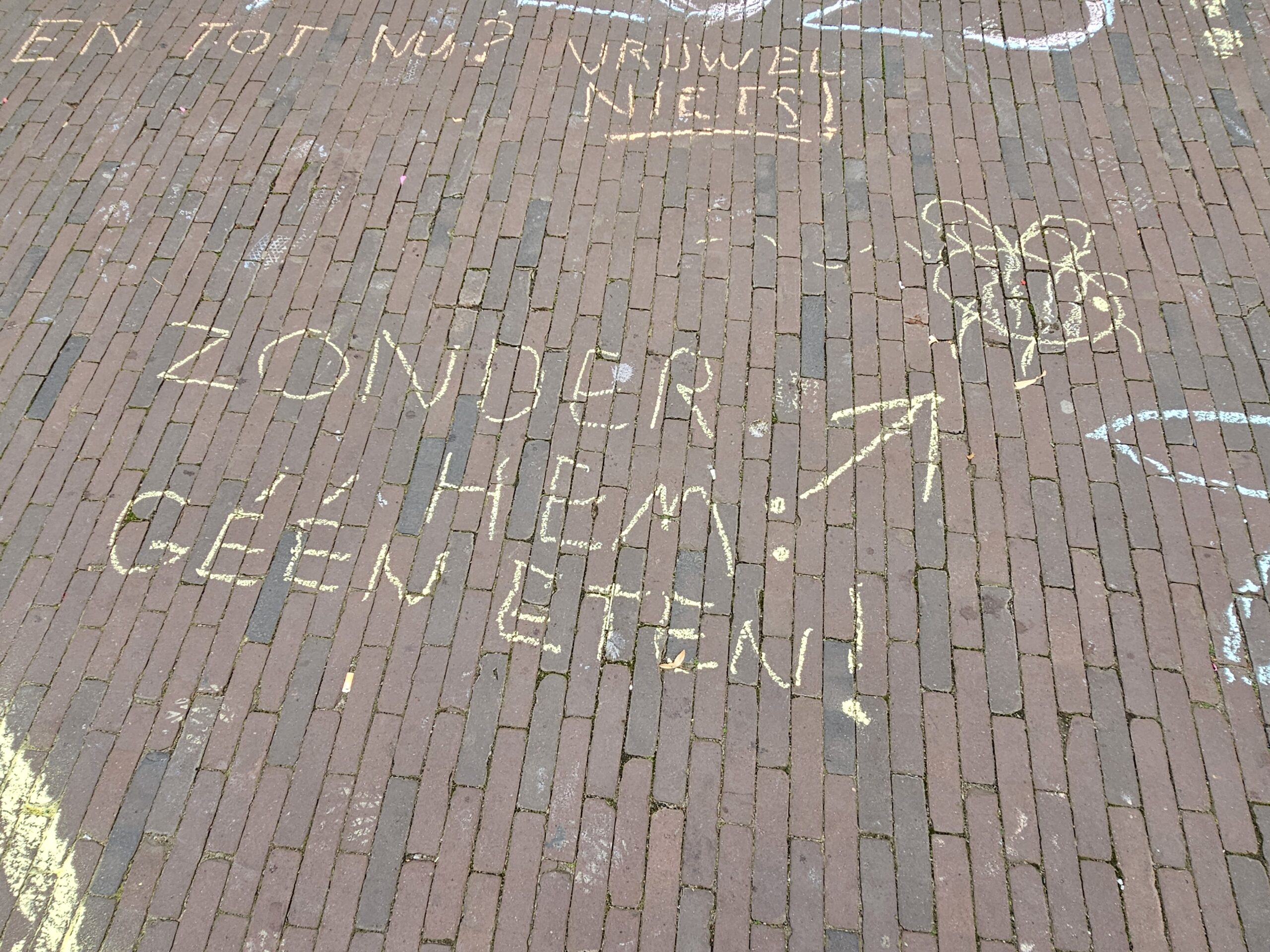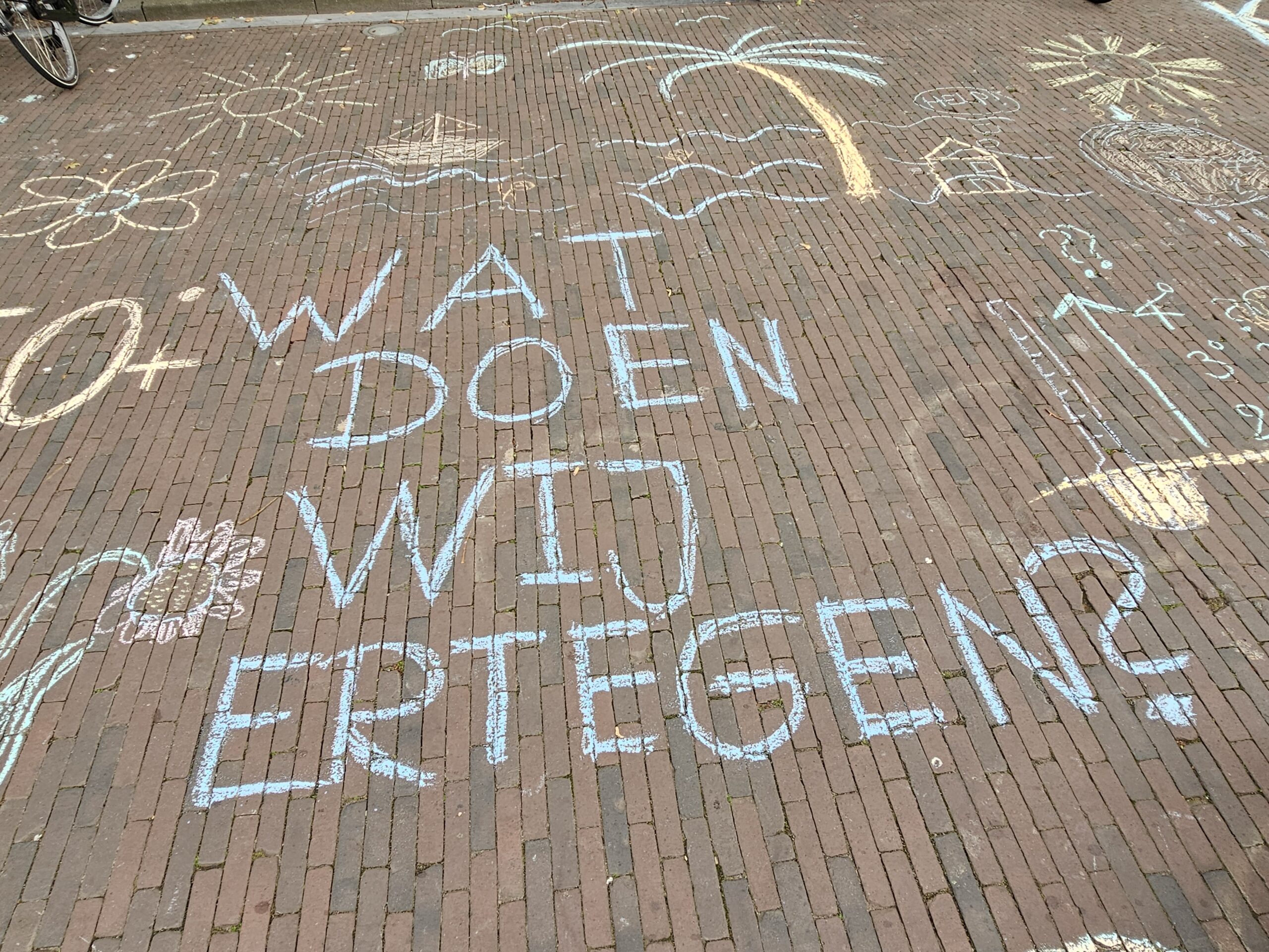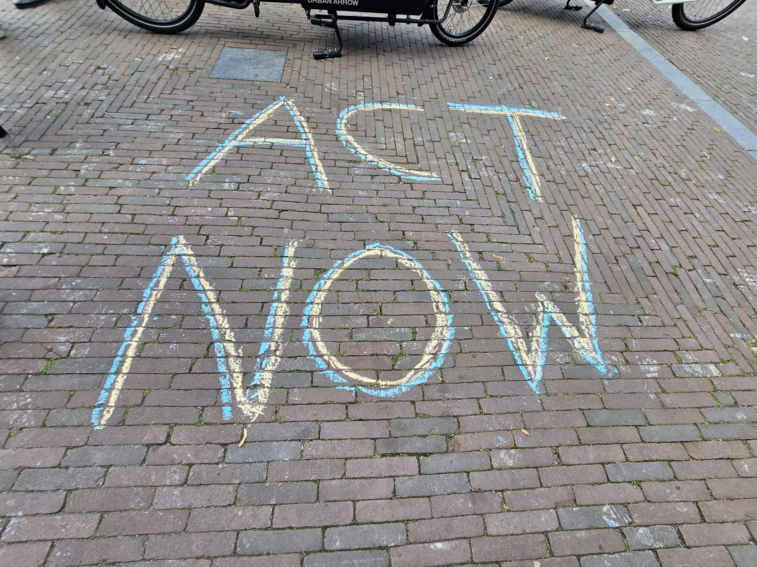 “Een jaar geleden heeft de raad weliswaar de klimaatnoodtoestand uitgeroepen, maar er is sindsdien bijzonder weinig gebeurd”, aldus de stoepkrijtende demonstranten.