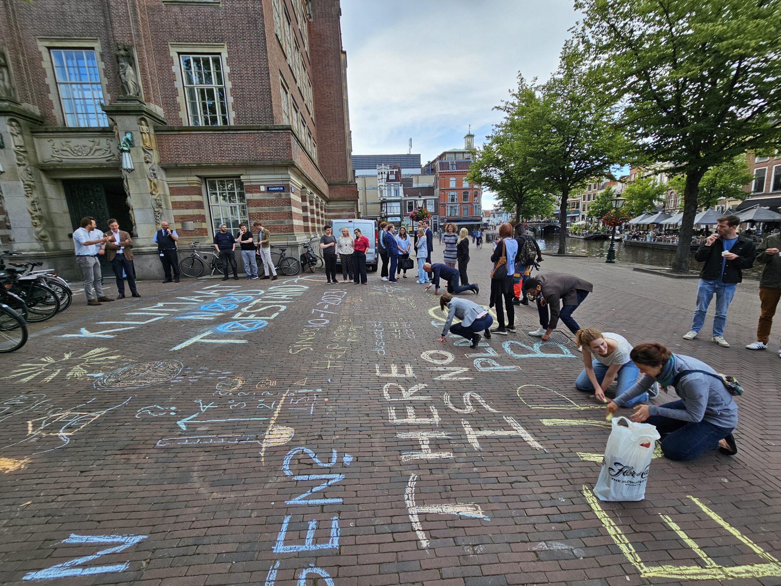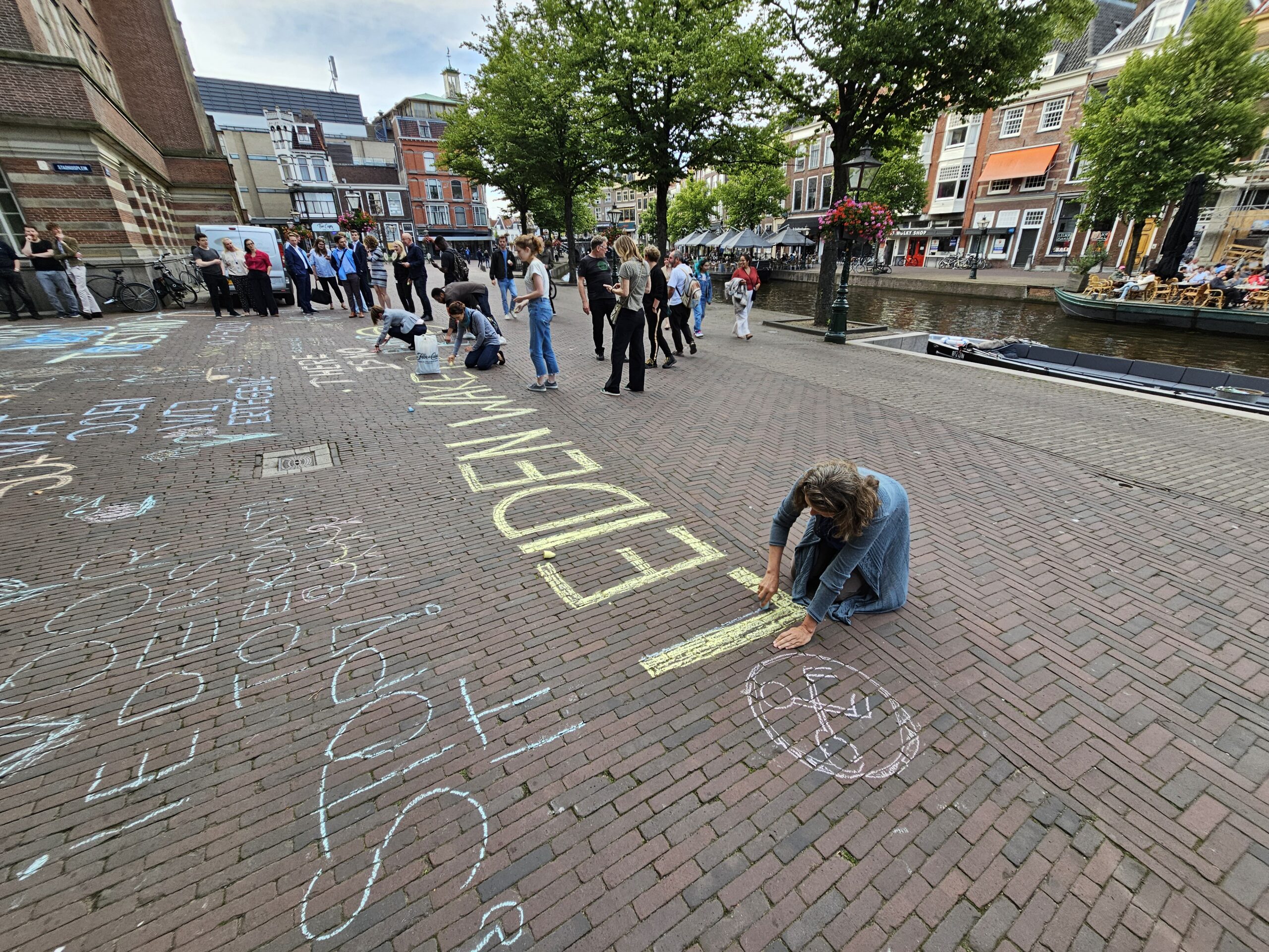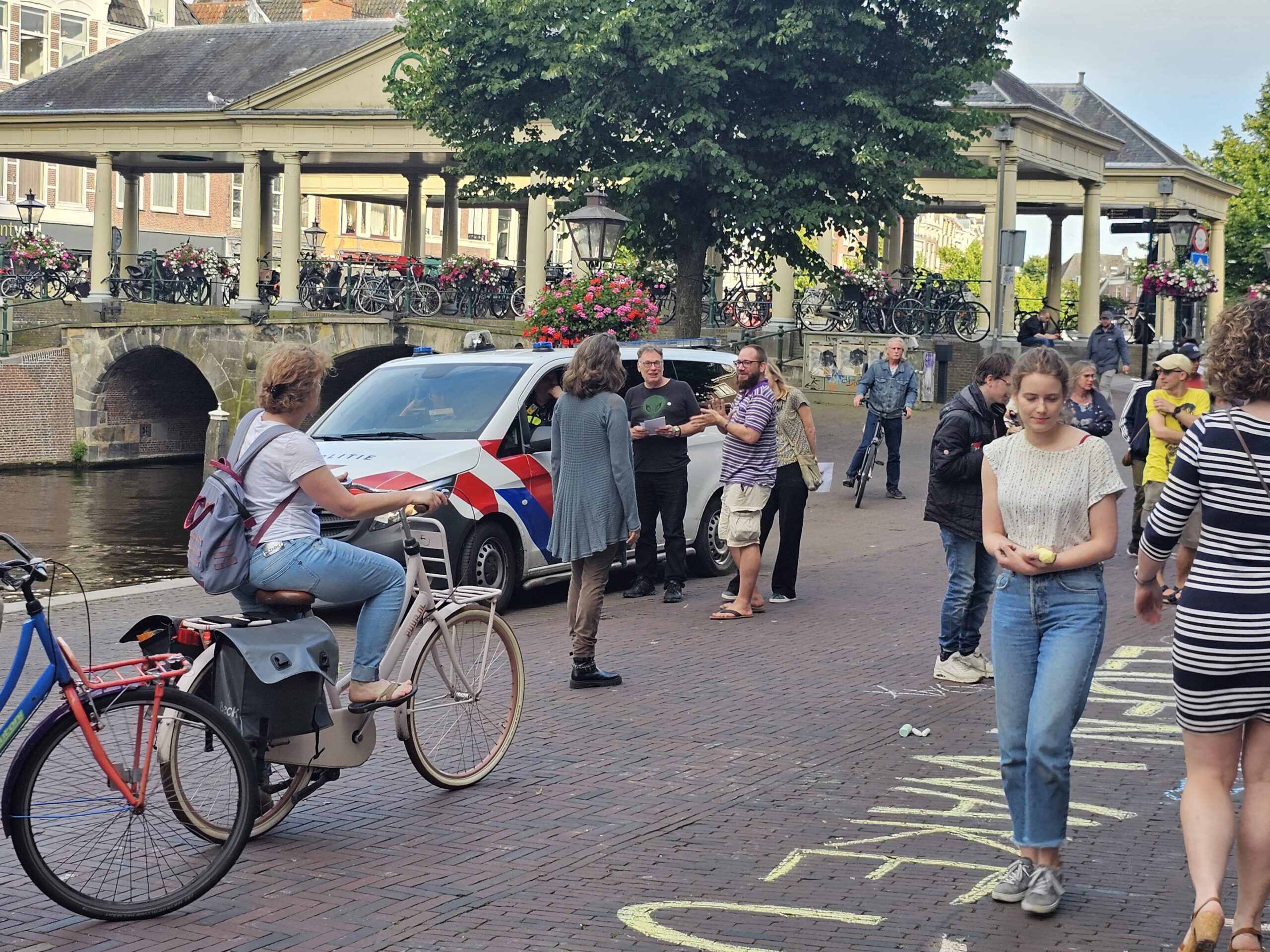 Activisten van Leiden Sneller Duurzaam hebben donderdagavond tijdens de behandeling van de Kaderbrief door de Leidse gemeenteraad aandacht gevraagd voor klimaatverandering.