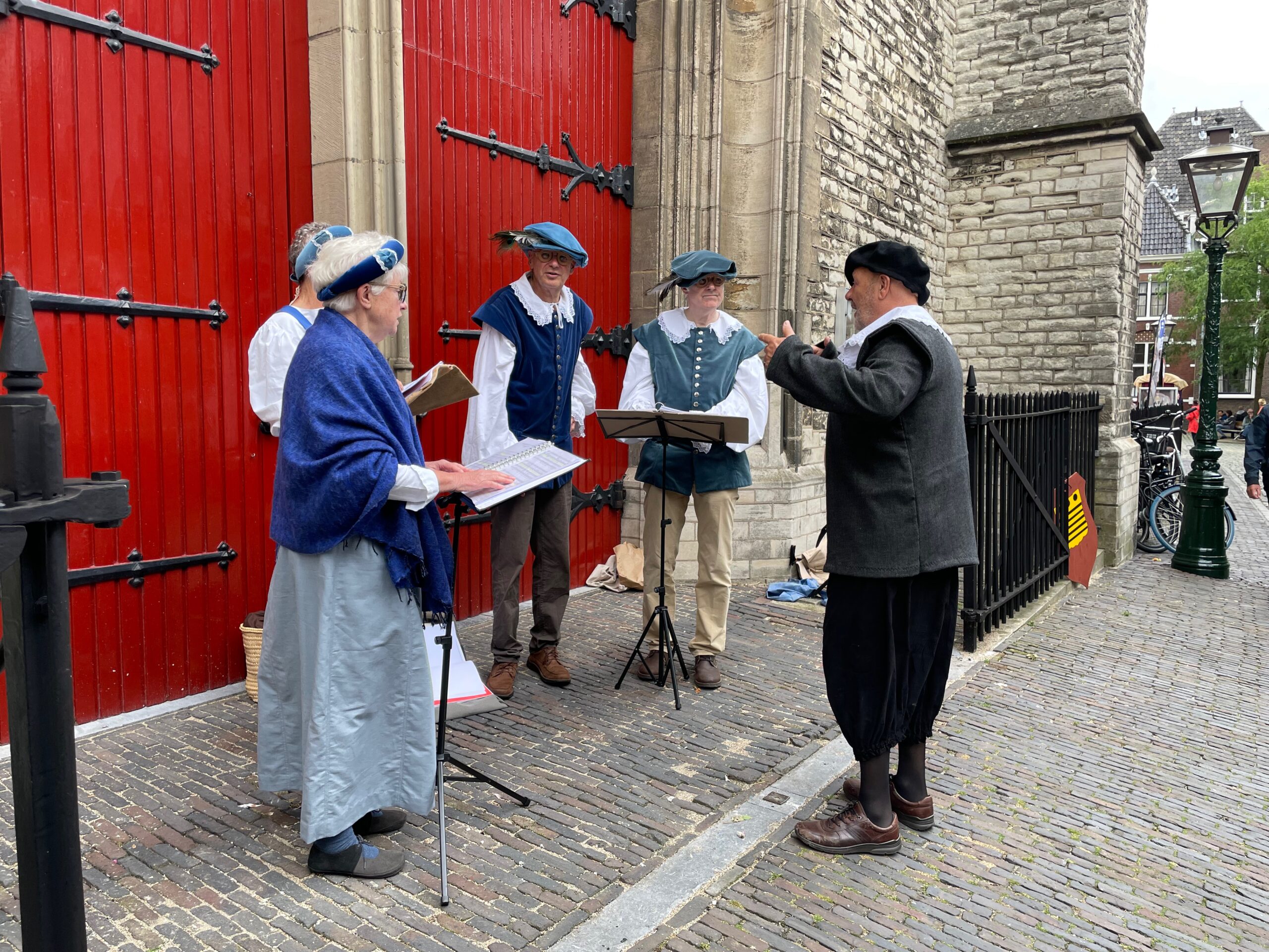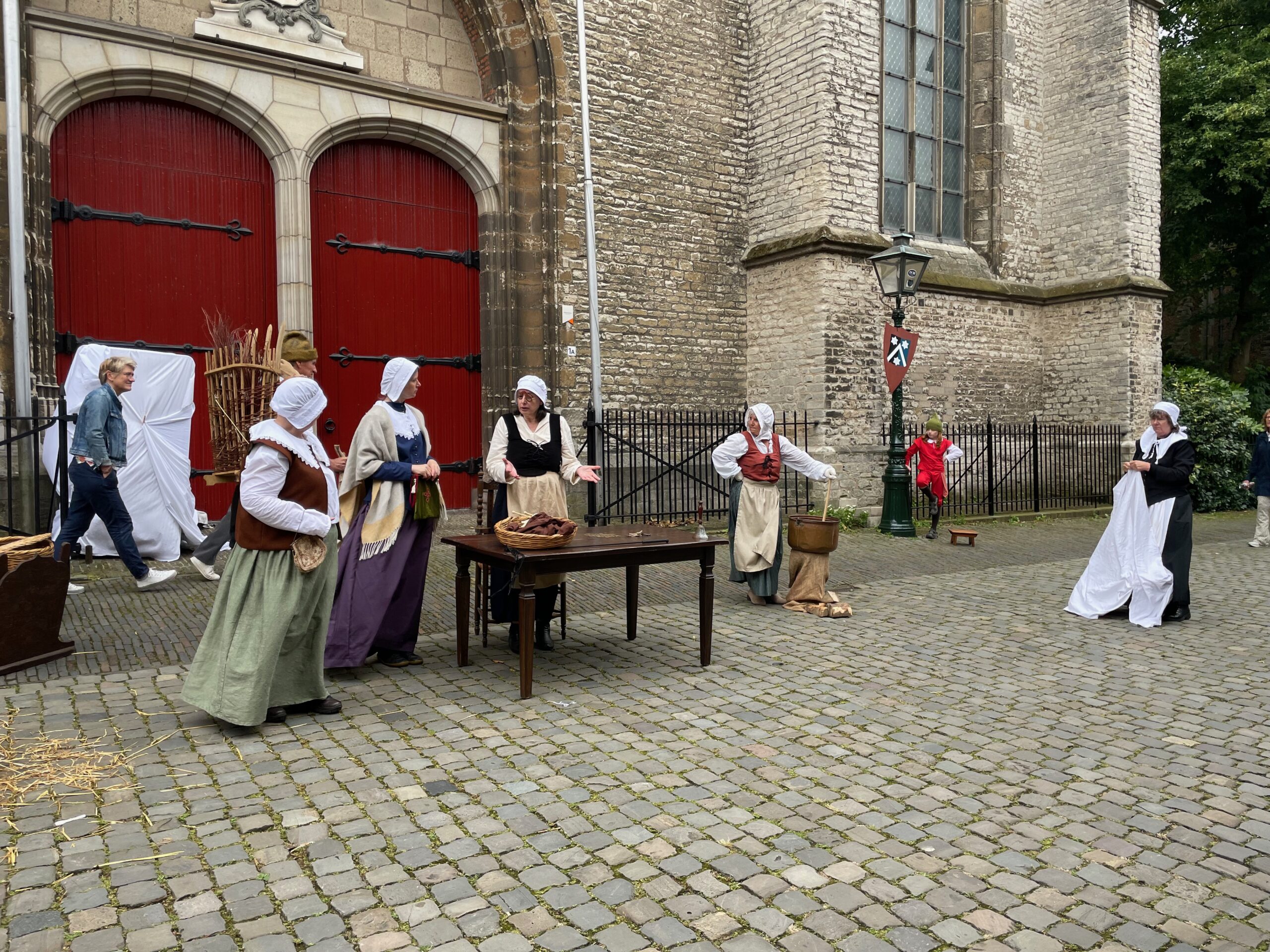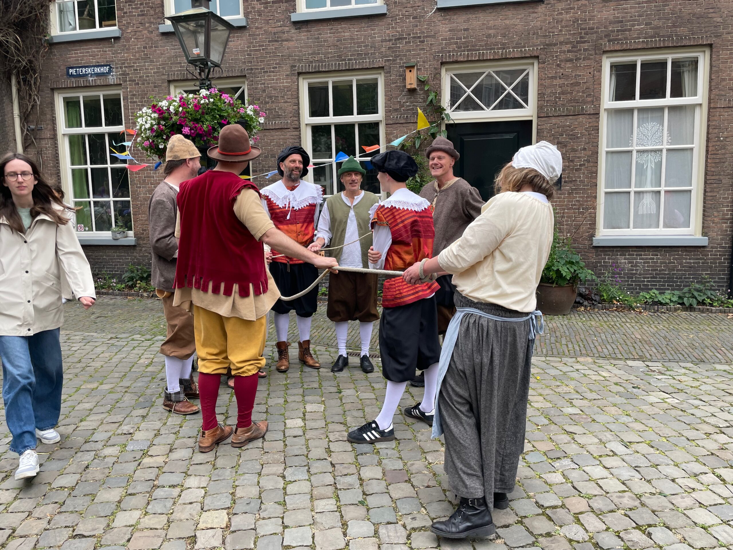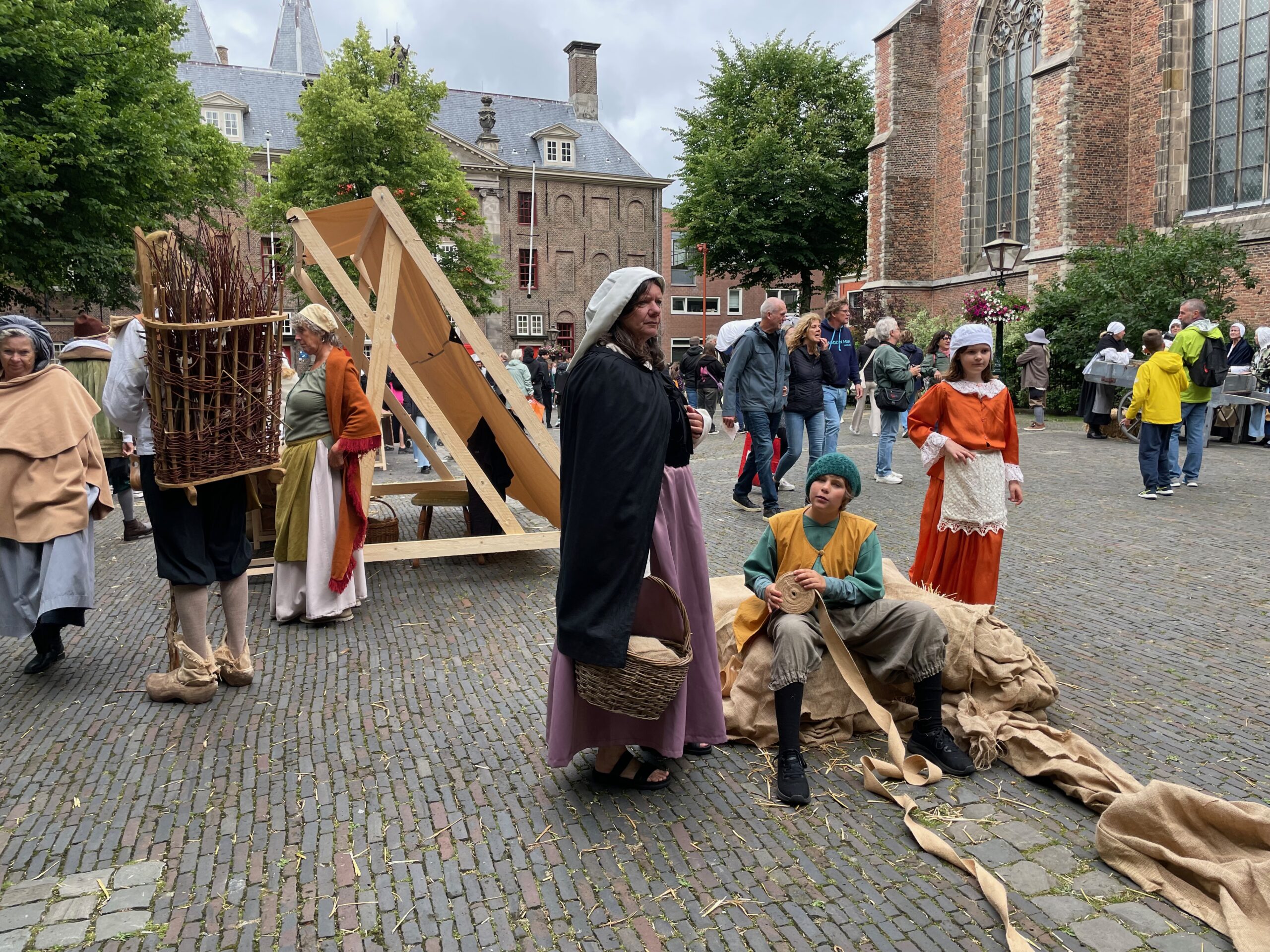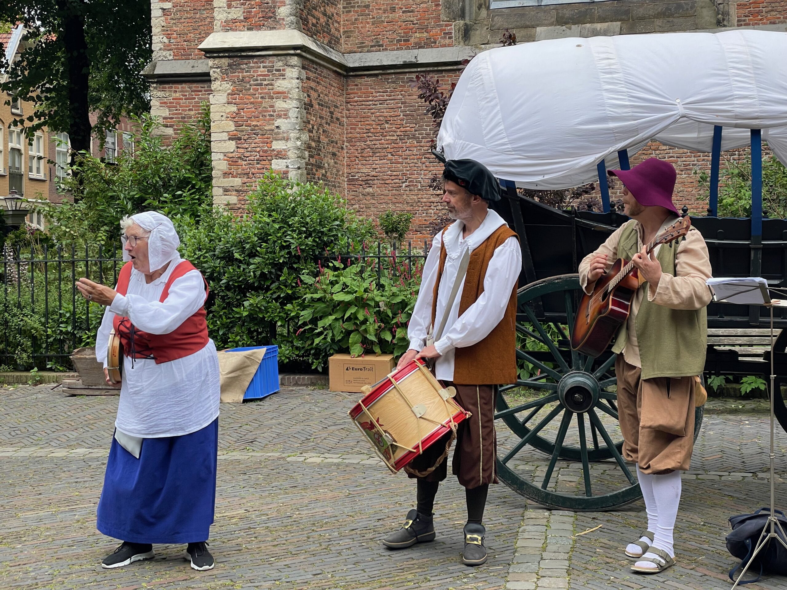 Voor de vierde keer stapt Leiden ruim vier eeuwen terug in de tijd. In de aanloop naar de geboortedag van de schilder Rembrandt van Rijn eert de Sleutelstad de beroemde zoon. Rondom de Pieterskerk is het een doorlopend historisch theater. Aanvankelijk valt het weer tegen, maar in de loop van de middag wordt het droger en komt er meer publiek.