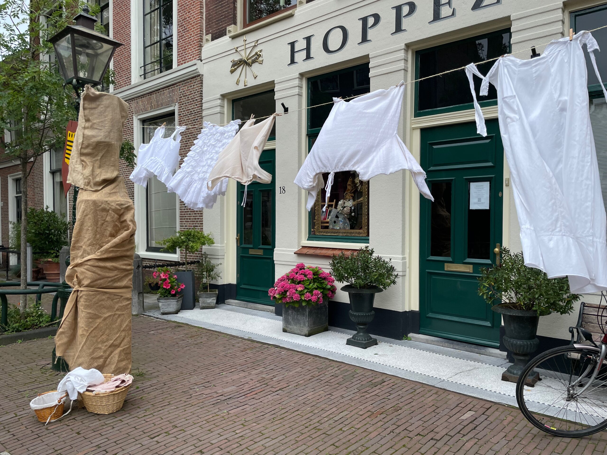 Overal worden korte toneelvoorstellingen op straat gegeven. Over een groot gezin dat moeilijk rond kan komen, twee poppenkastspeelsters die ook in armoede leven en daarom met hun poppenkast de markten in en rondom Leiden aflopen met een verhaal over een gestolen penseel van Rembrandt. “Ik moet mijn achttien kinderen toch ergens te eten van geven”, zegt een van hen.
