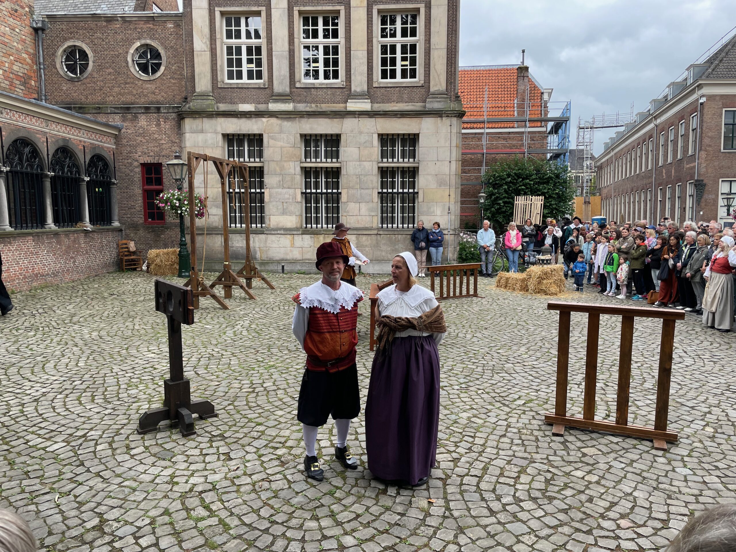 Op het Gerecht wisselen rechtszaken en berechtingen elkaar af. Het publiek wordt aangemoedigd uit te kijken naar de ontsnapte landverrader Hugo de Groot, die listig zijn privilege om boeken te mogen ontvangen in zijn kamer in Slot Loevestein misbruikt om in een van de boekenkisten het kasteel te verlaten. Een lesje Nederlandse geschiedenis in een notendop.