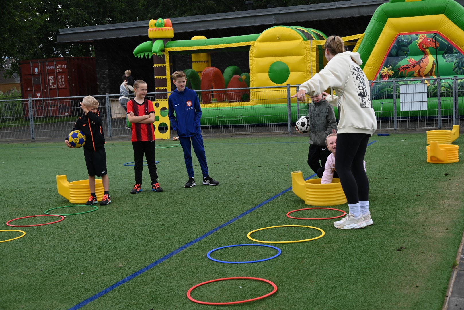 Tot half augustus kunnen de kinderen elke zaterdag van 11.00 tot 14.00 uur en woensdag van 14.00 tot 16.00 uur terecht om gratis kennis te maken met diverse sporten. Zaterdag werd letterlijk en figuurlijk de aftrap gegeven met een demonstratie van een freestyle voetballer gevolgd door voetbal- rugby- en korfbalclinics. Wie even genoeg gesport had kon terecht op de stormbaan of genieten van de muziek van DJ Montalto.