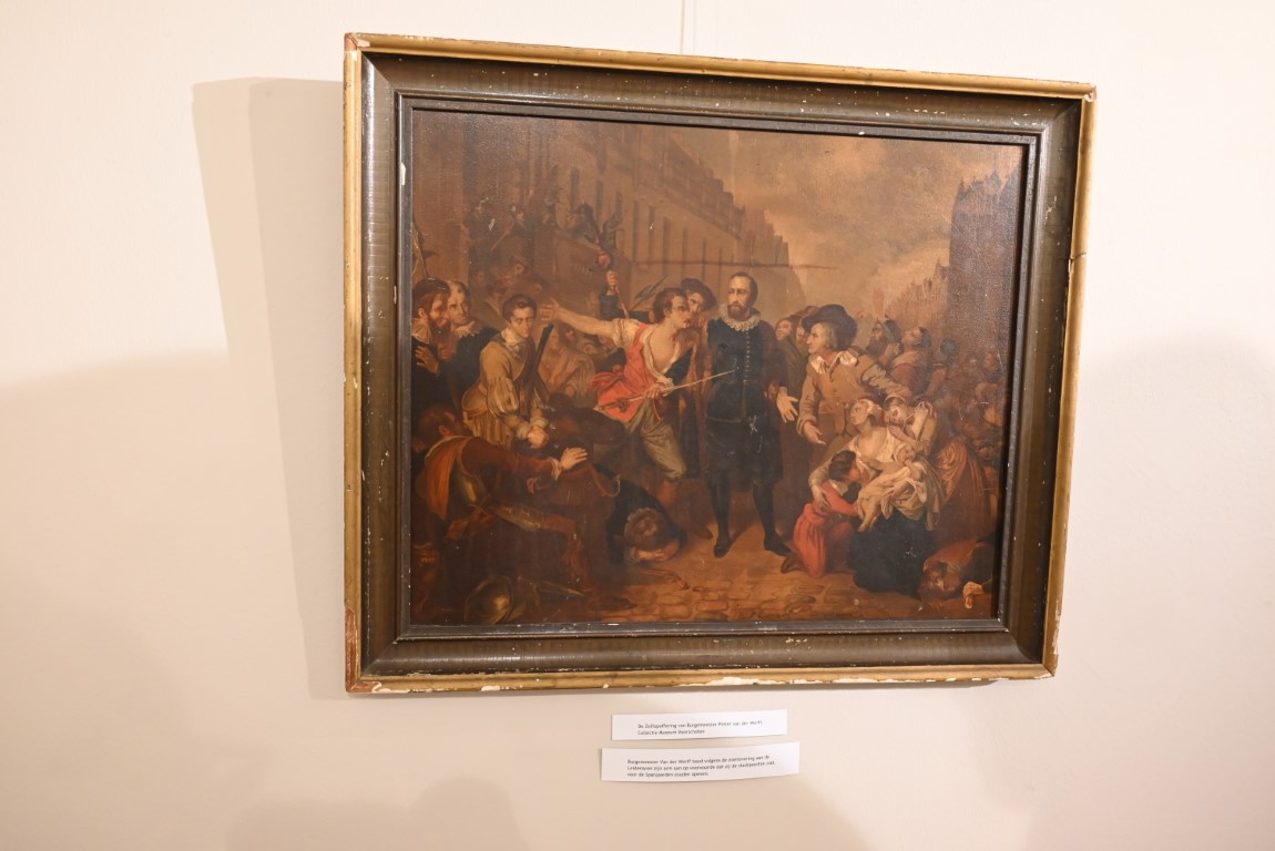 Marijn Rikkerink stelde de expositie samen en had de hulp van maar liefst tachtig vrijwilligers, de Leidse Lakenhal en Erfgoed Leiden. “De bezoeker wordt aan de hand van het verhaal op panelen meegenomen in de geschiedenis. Er zijn schilderijen, schoolplaten maar ook een mini-hutspotpan en een beeldje van de legendarische burgemeester Van der Werf.”