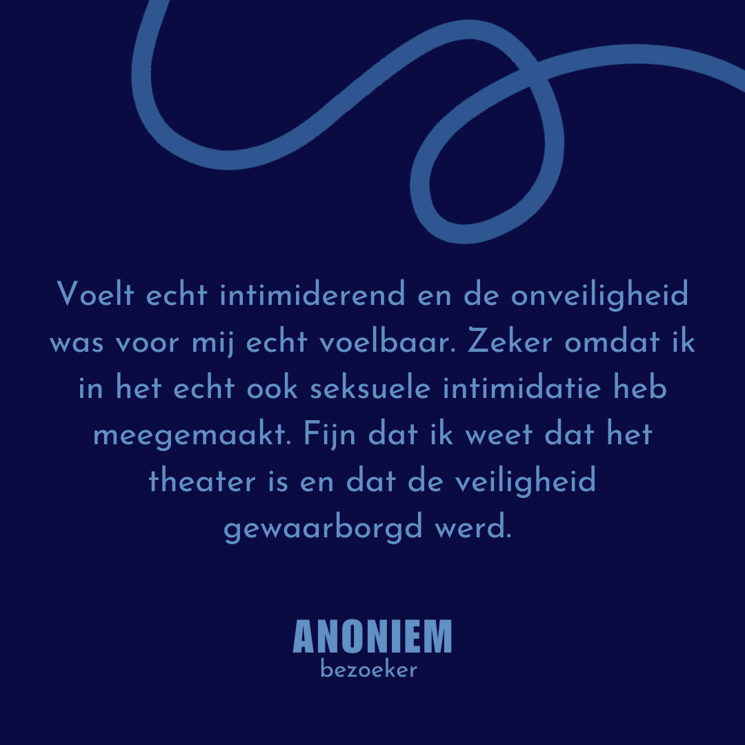 ‘Psst, hé schatje’ plaatst de bezoekers in de rol van slachtoffer, waarin ze een intense ervaring beleven. “Door middel van een route door kille gangen en intimiderende situaties, afgewisseld met muzikale en theatrale elementen, ervaar je de impact van seksuele straatintimidatie”, vertelt artistiek leider en regisseur Lous van Noordwijk van de theatrale route die eindigt met een interactieve sessie waarbij ervaringen worden gedeeld met (mede)bezoekers en experts. “Deze aanpak stimuleert reflectie en discussie over de impact van seksuele straatintimidatie. En de rol die iedereen speelt in het bevorderen van veiligheid in openbare ruimten.”