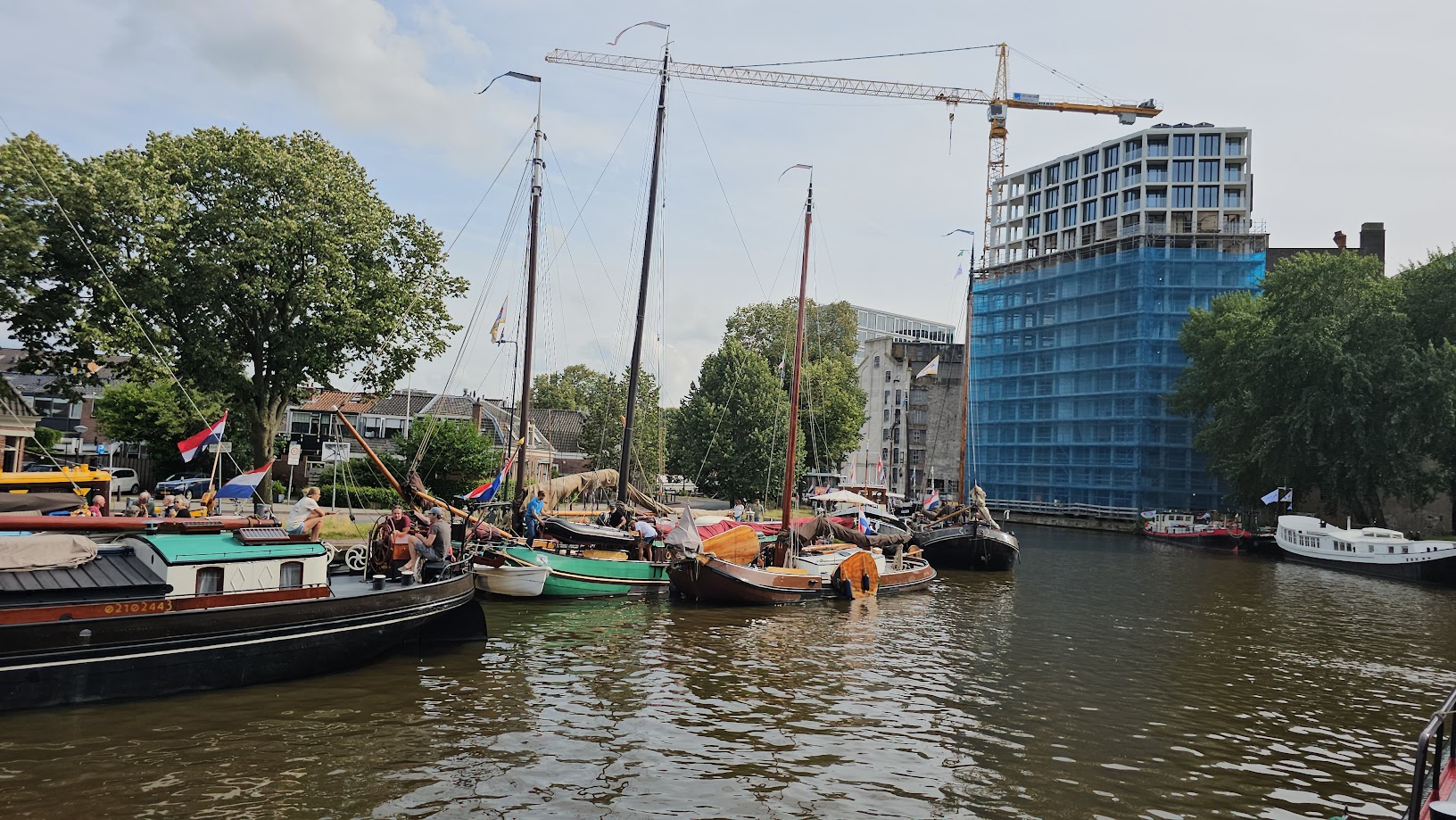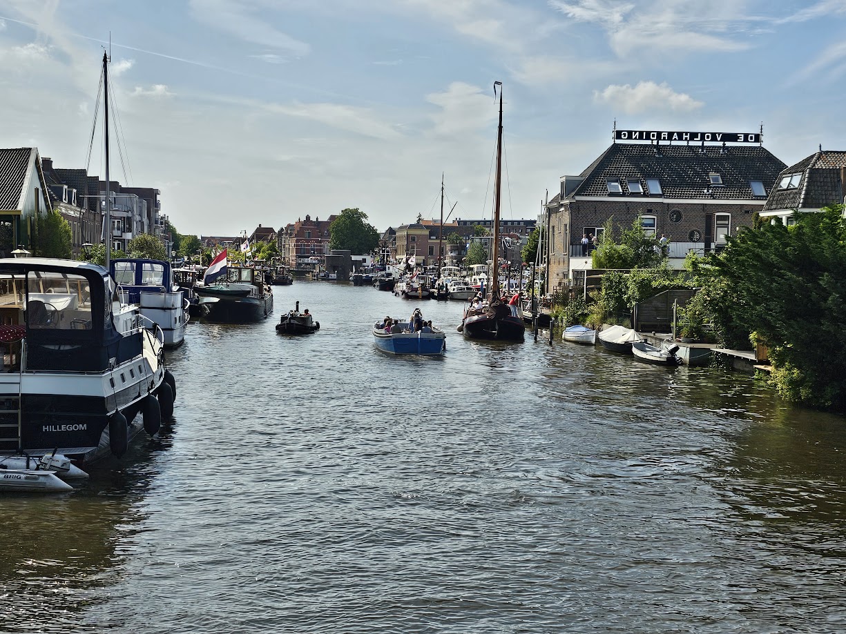 Het hele weekend liggen de schepen in Leiden. Maandagochtend vertrekken ze naar Amsterdam waar de jubilerende vereniging een koninklijke onderscheiding in ontvangst zal nemen.