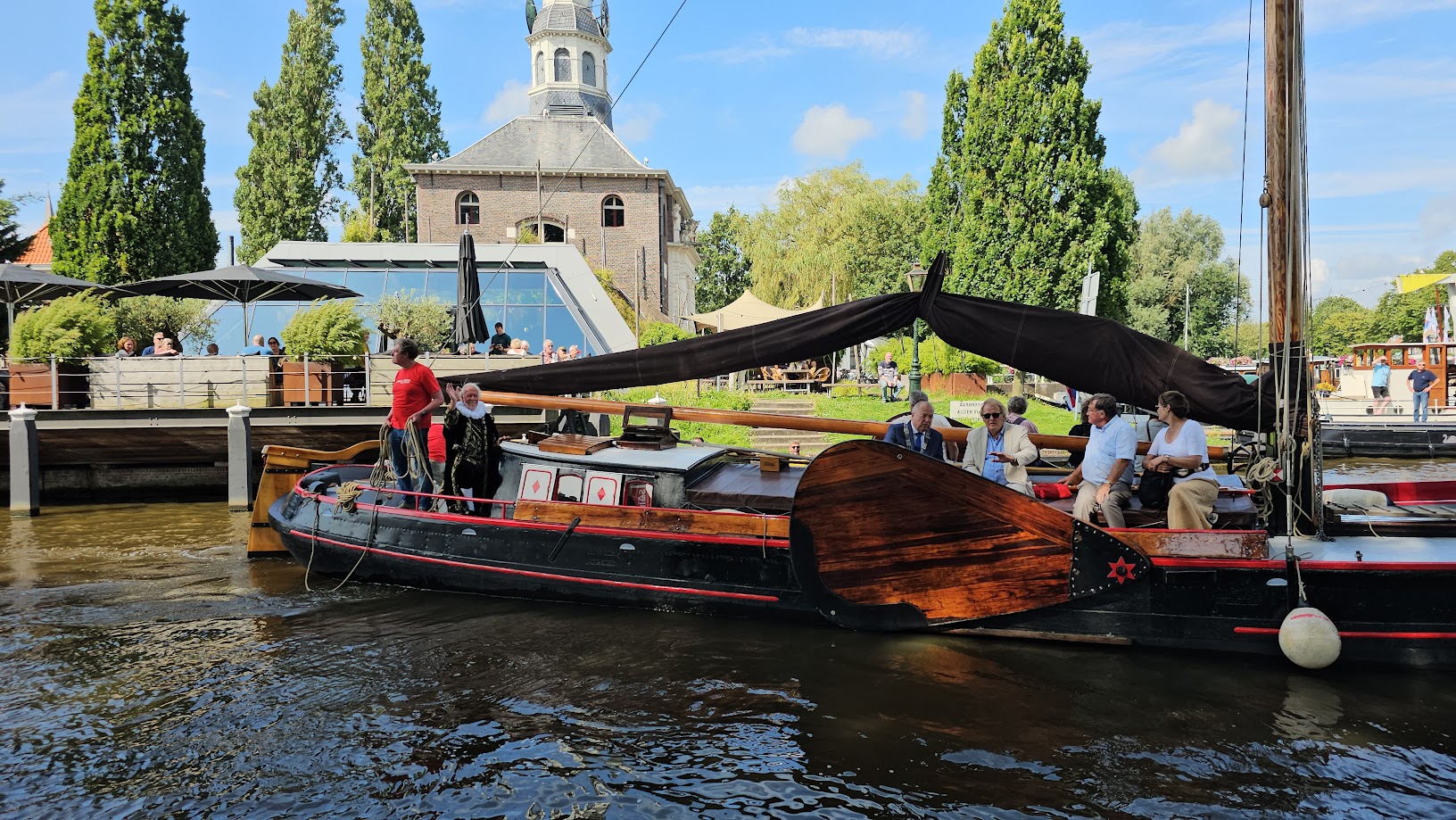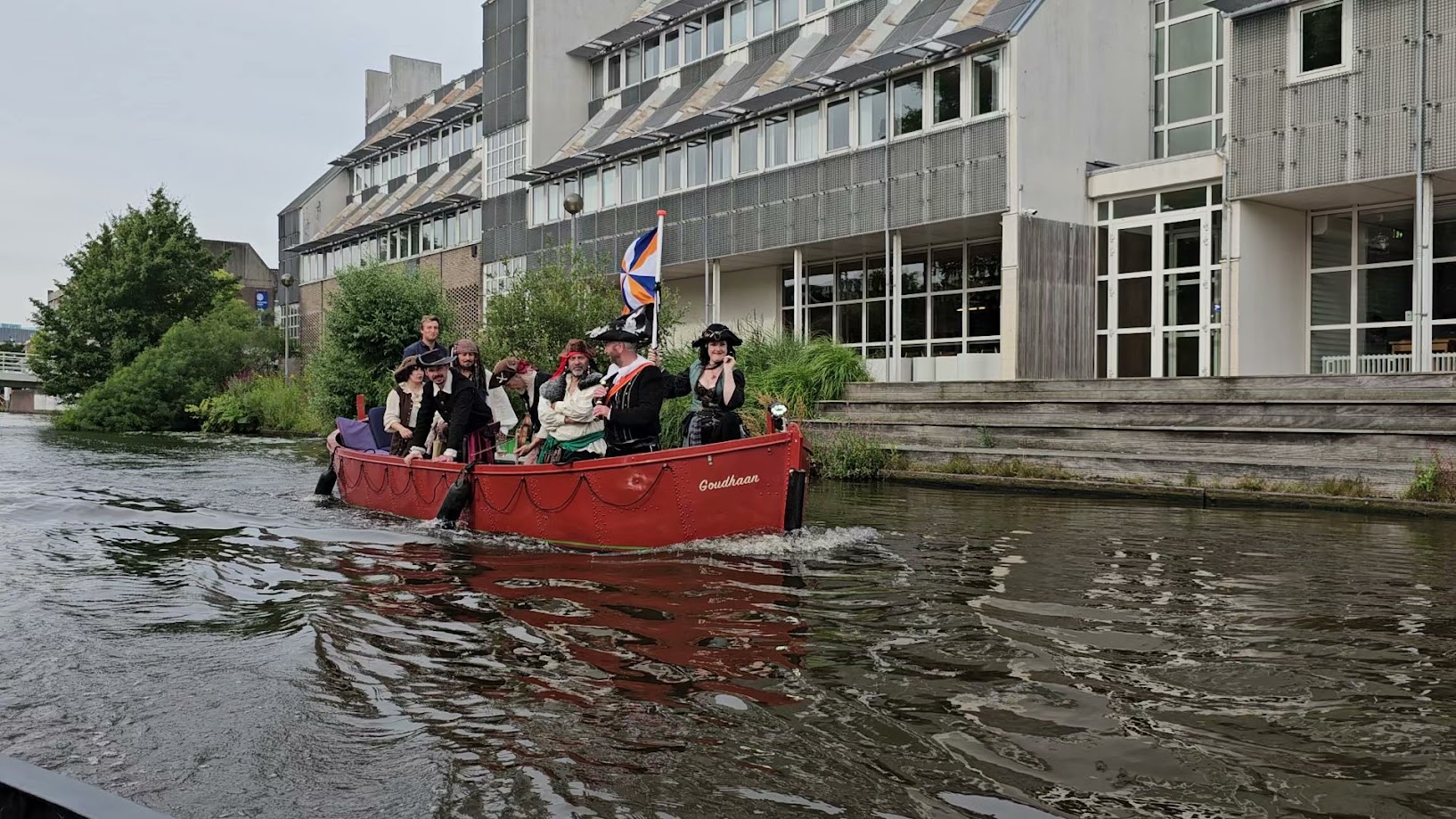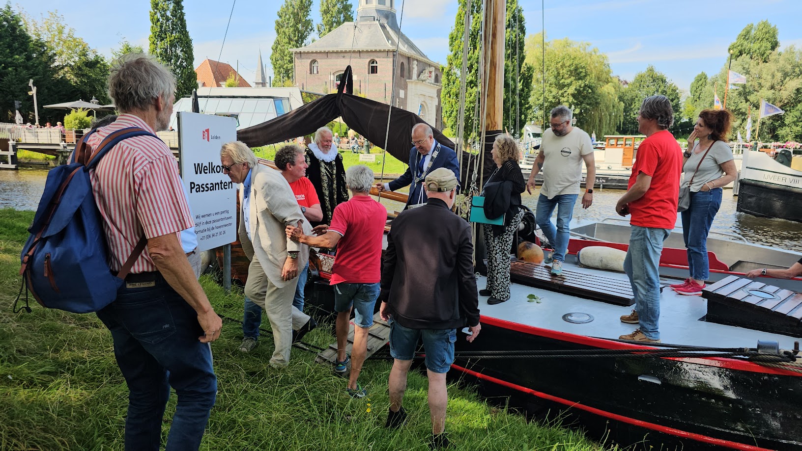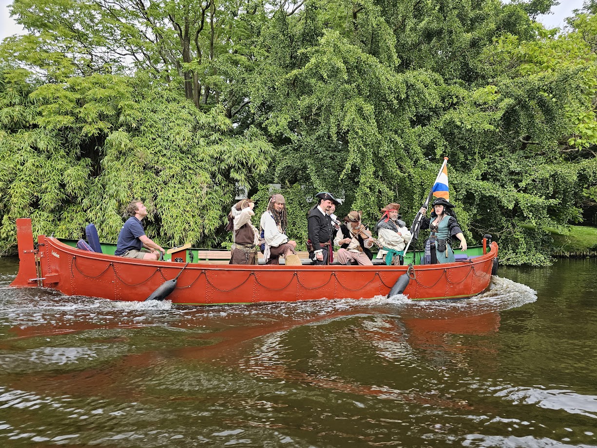 Na afloop van het officiële gedeelte volgden vaartochtjes door Leiden met Leidse rondvaartboten die er ook al een heel leven op hebben zitten. Net als schippers Koene Parmentier en Sjaak Veringa zelf trouwens. Onderweg werden ze nog ‘aangevallen’ door piraten.