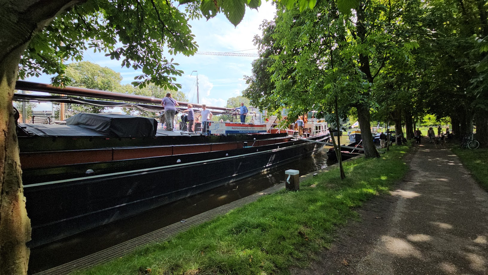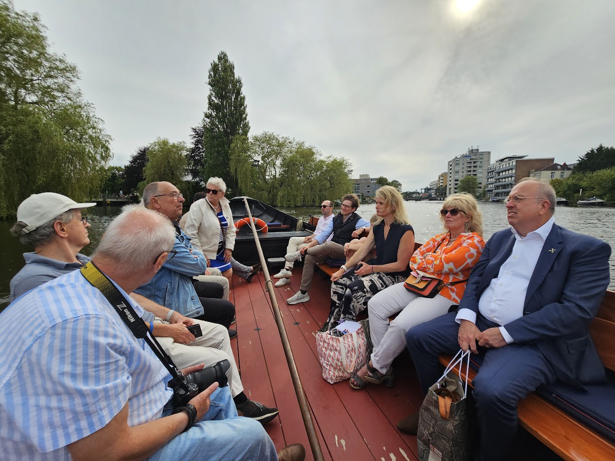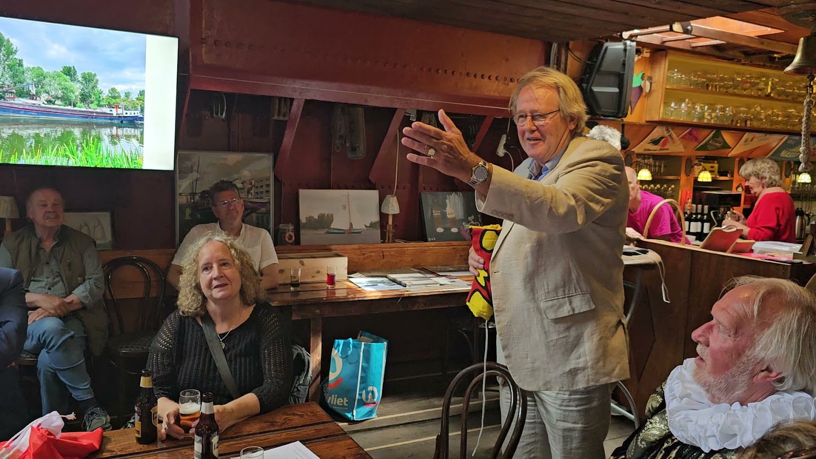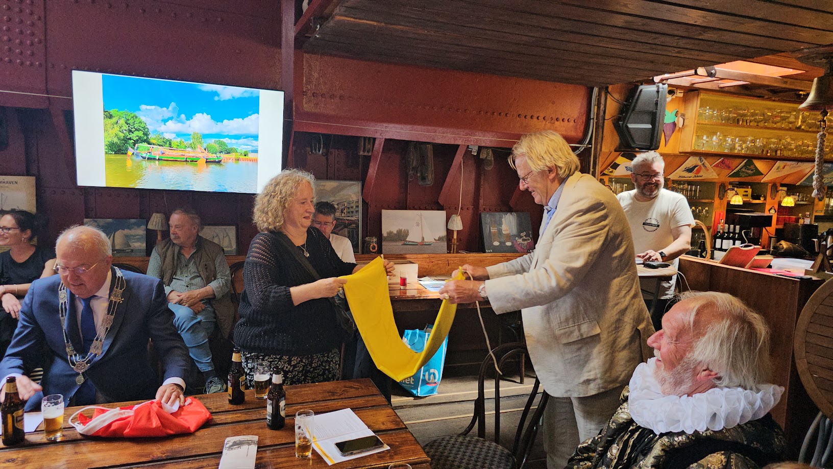 Na afloop van het officiële gedeelte volgden vaartochtjes door Leiden met Leidse rondvaartboten die er ook al een heel leven op hebben zitten. Net als schippers Koene Parmentier en Sjaak Veringa zelf trouwens. Onderweg werden ze nog ‘aangevallen’ door piraten.