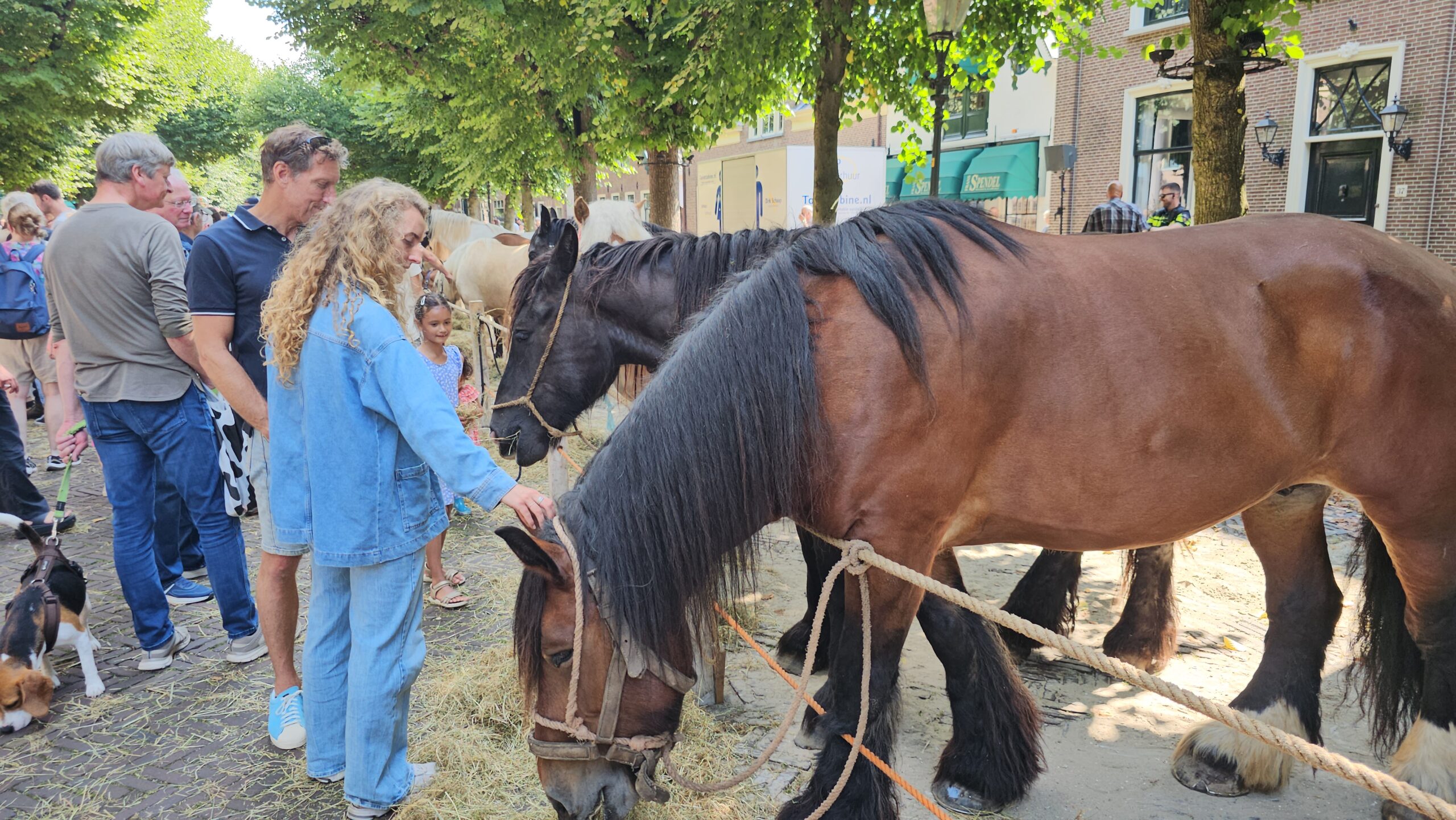Na de opening tegenover de dorpspomp die zaterdag ook volop in gebruik was om emmers water voor de paarden te vullen, plantte burgemeester Nadine Stemerdink traditioneel het marktkruis in de marktpaal op de Treubstraat.
