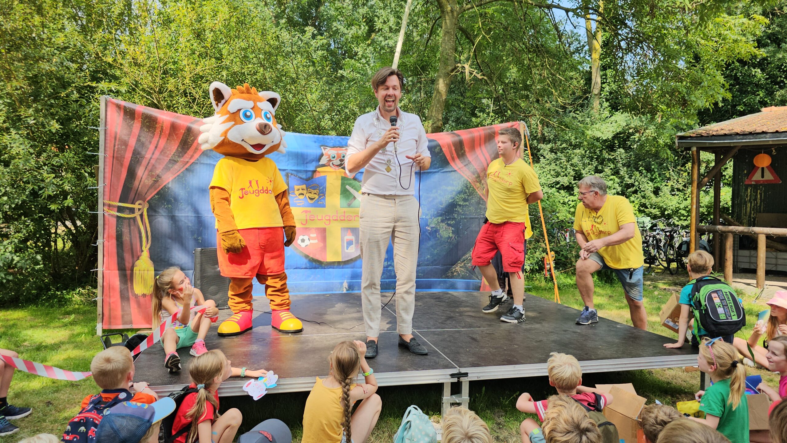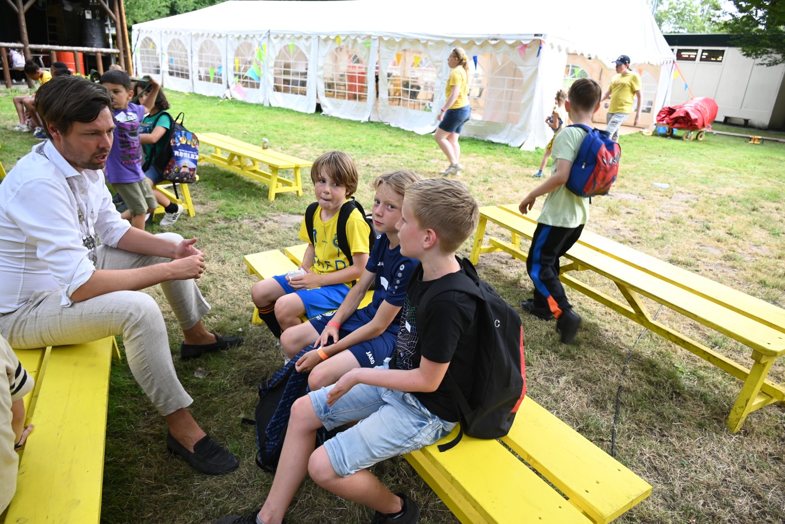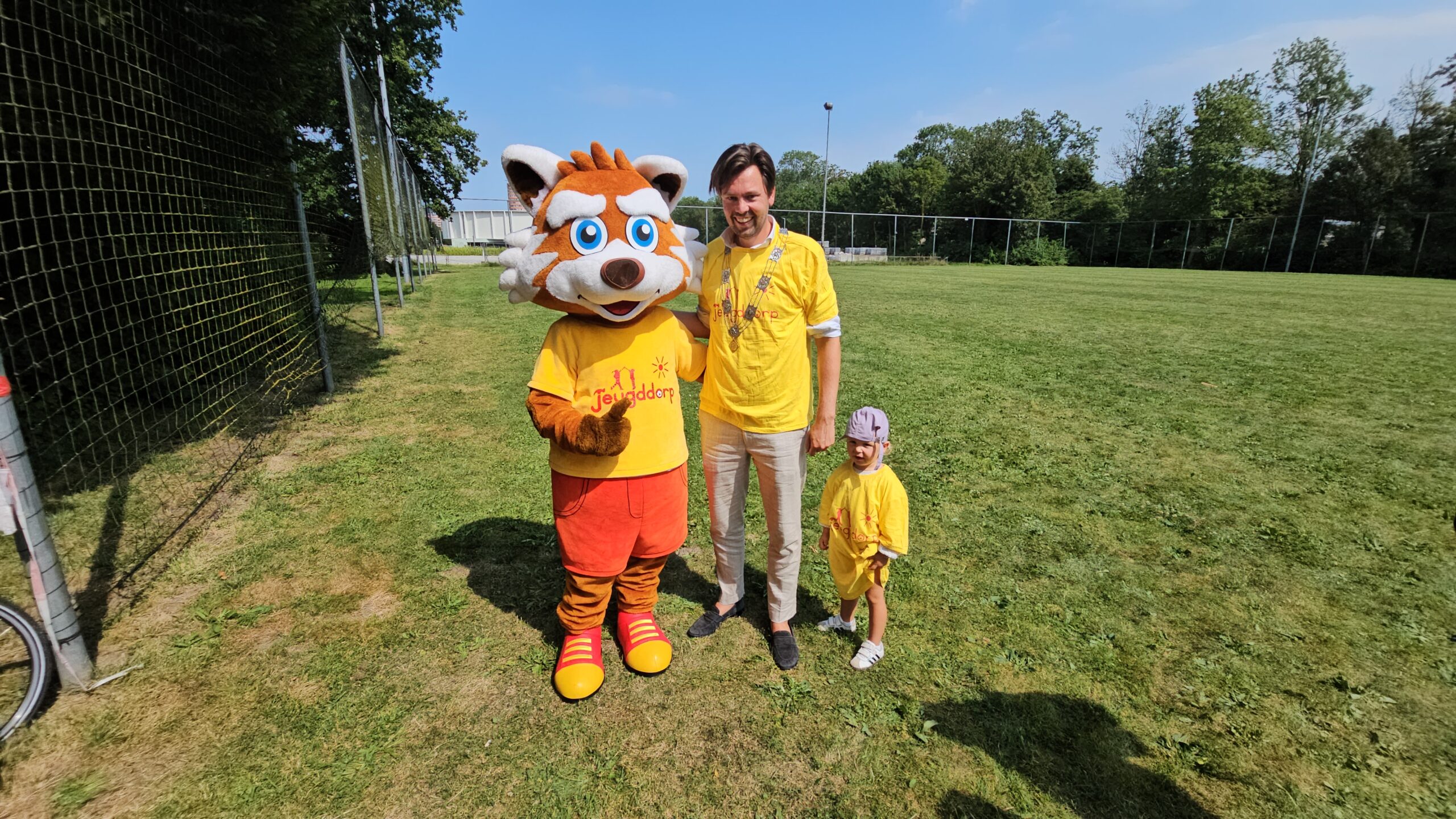 “Dit is nou echt het allerleukste van wethouder zijn”, lacht een opgetogen Julius Terpstra nadat hij Jeugddorp Leiden 2024 in bijpassend shirt officieel heeft geopend.