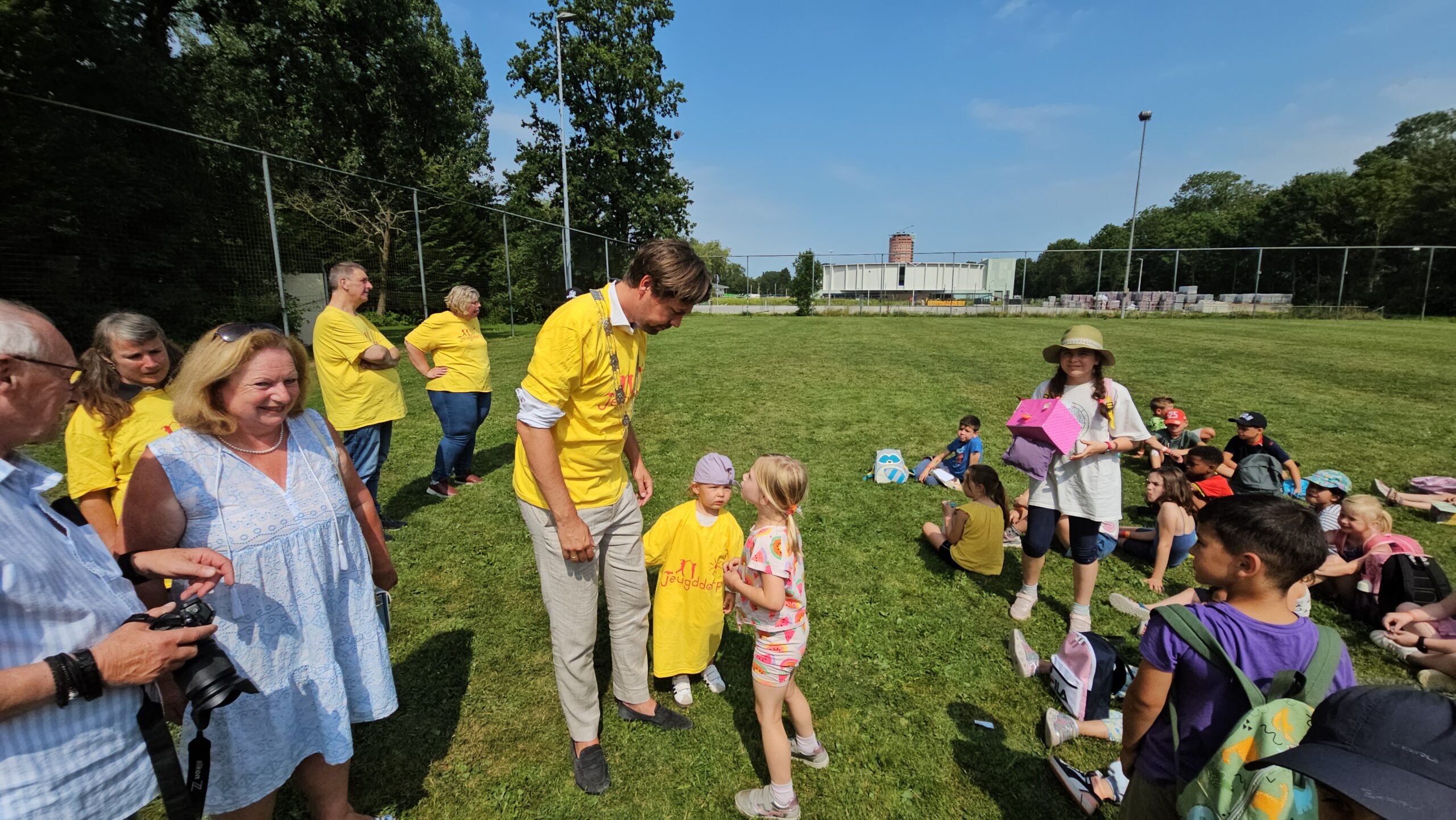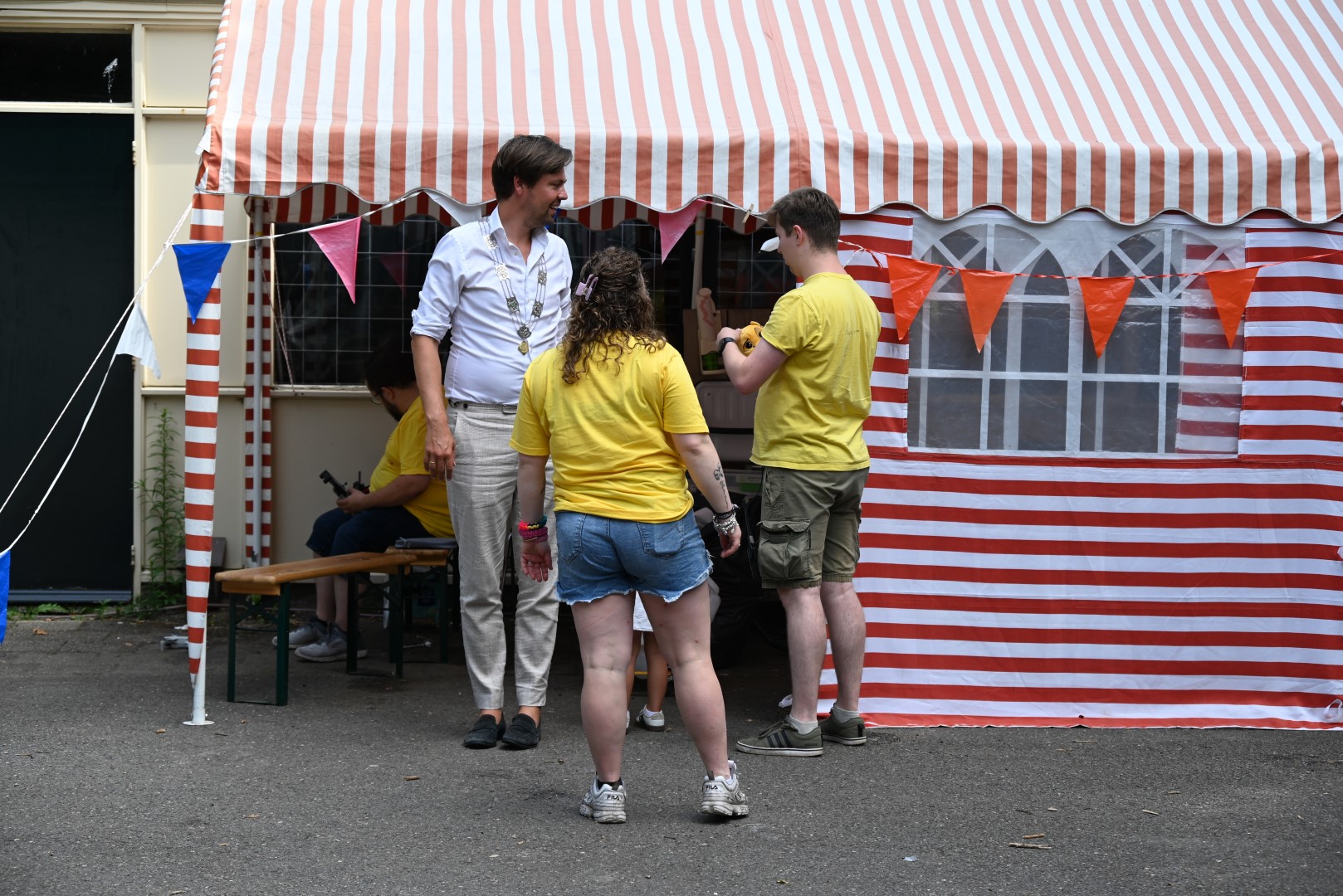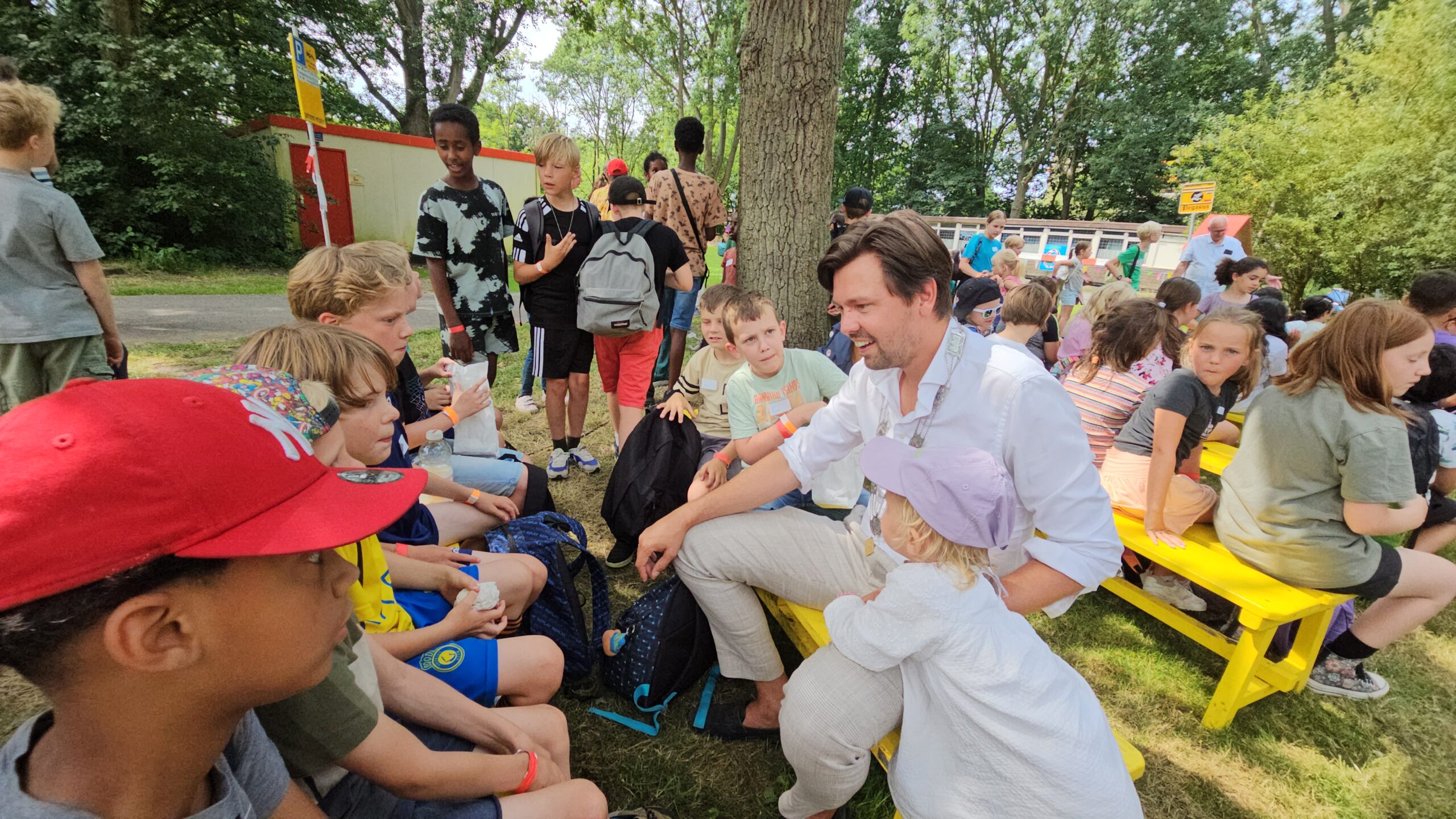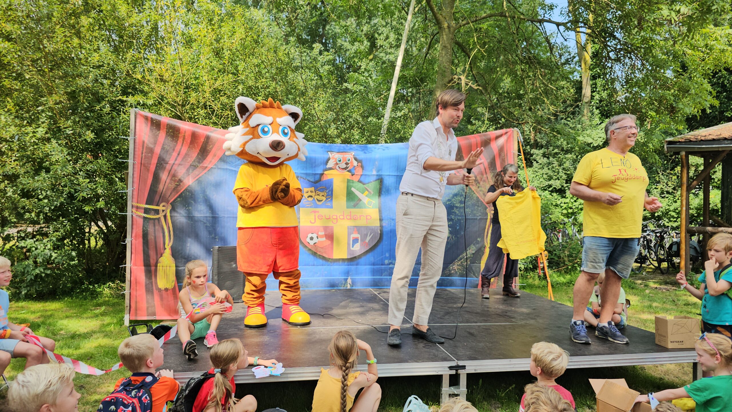 “Dit is nou echt het allerleukste van wethouder zijn”, lacht een opgetogen Julius Terpstra nadat hij Jeugddorp Leiden 2024 in bijpassend shirt officieel heeft geopend.