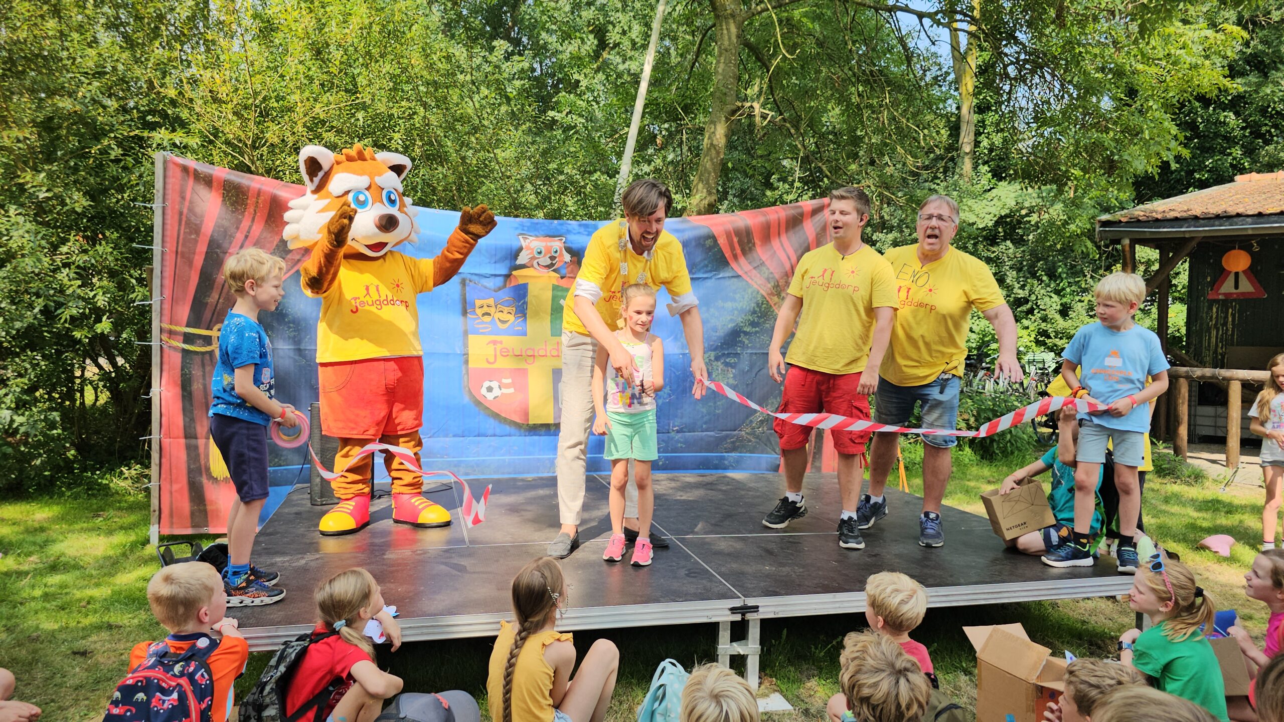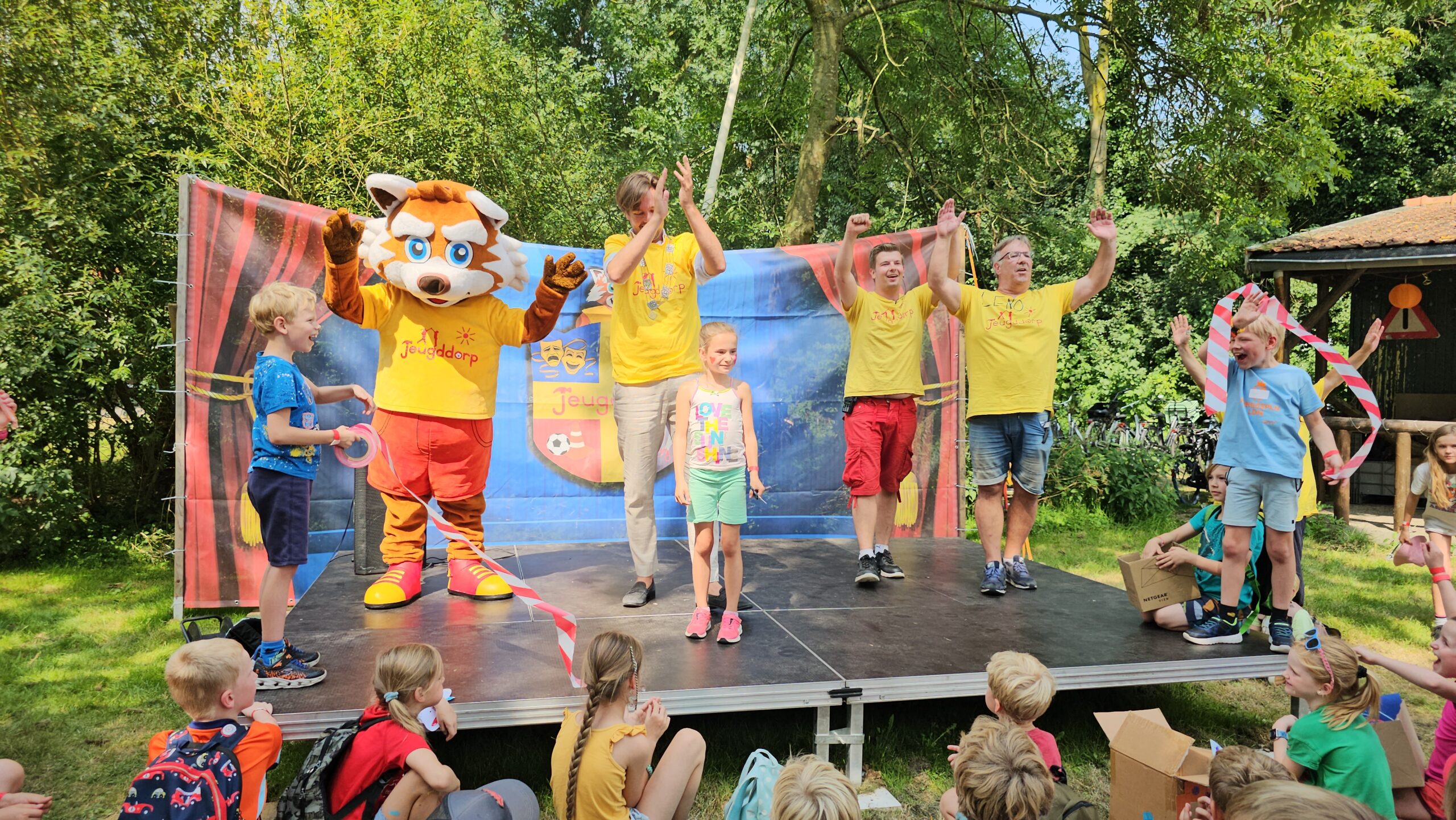 Terpstra deed dat door met de botste schaar die de organisatie kon vinden een lint door te knippen. Samen met een van de deelnemertjes, Mia Henzing, terwijl Jarick en Stijn Brusse het lint vasthielden. Terpstra had zijn driejarige dochtertje meegenomen naar de opening. Die vond het allemaal reuzeleuk, maar moet zelf nog een paar jaar wachten, voor ze ook naar Jeugddorp kan. Na het officiële momentje werd er op het sportveld een bijzondere groepsfoto gemaakt. Iedereen moest gaan liggen en de foto werd gemaakt met een drone.