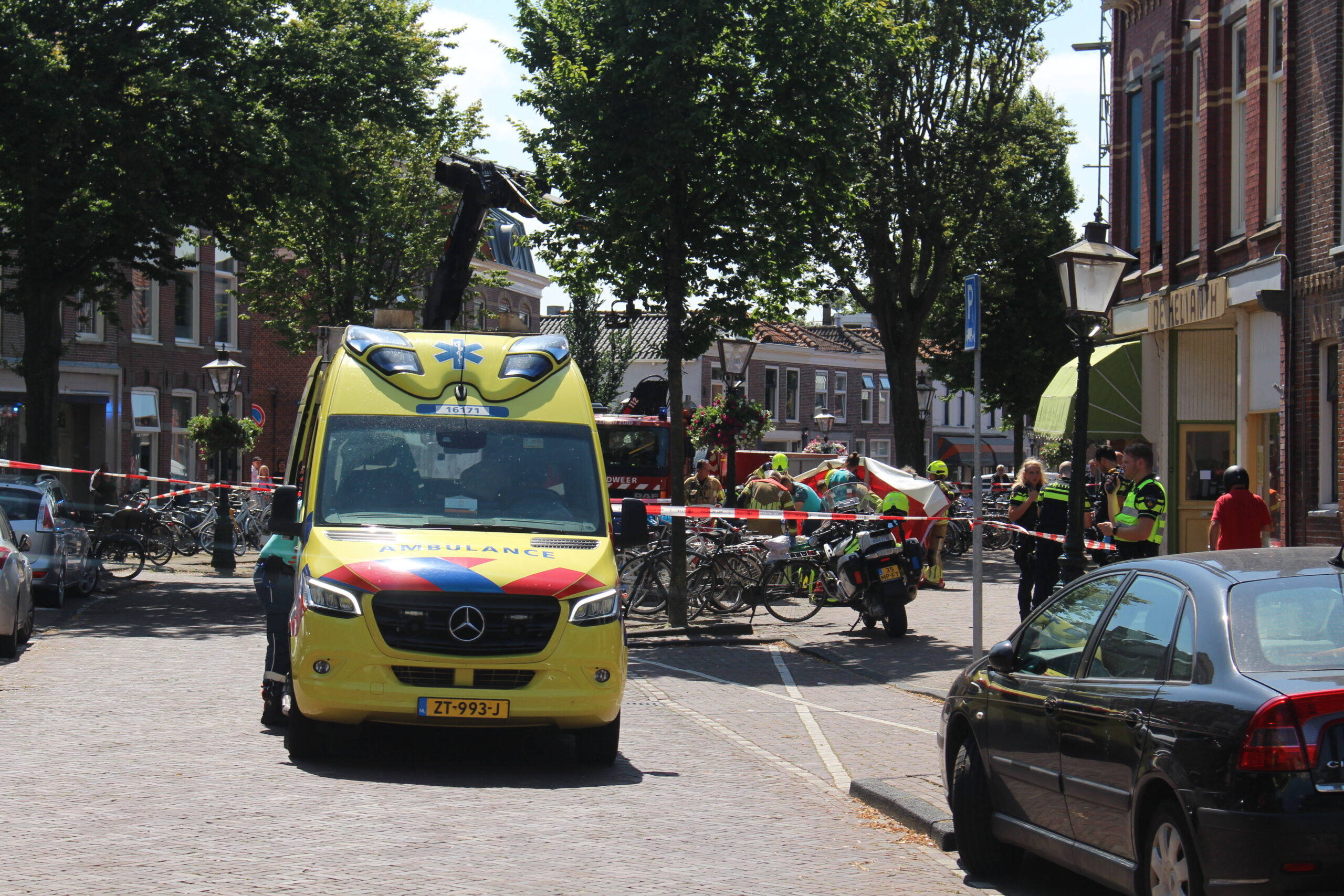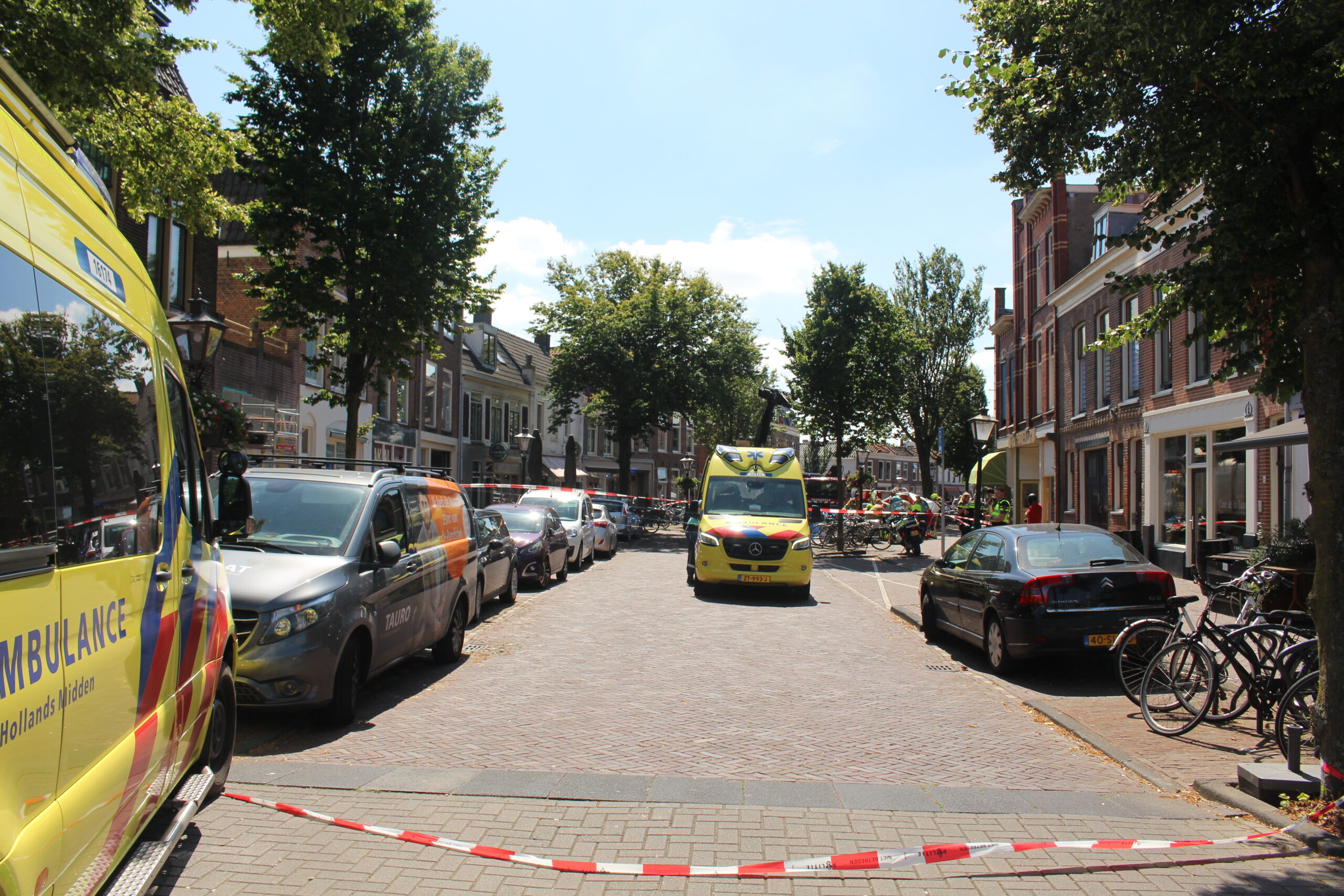 Het ongeval vond plaats in de Herenstraat in Leiden. Verschillende hulpdiensten, waaronder een traumateam, werden opgeroepen. De traumahelikopter werd geannuleerd en hulpverleners hebben zich ter plaatse over het slachtoffer ontfermd. Het is nog onduidelijk hoe het met de vrouw gaat.