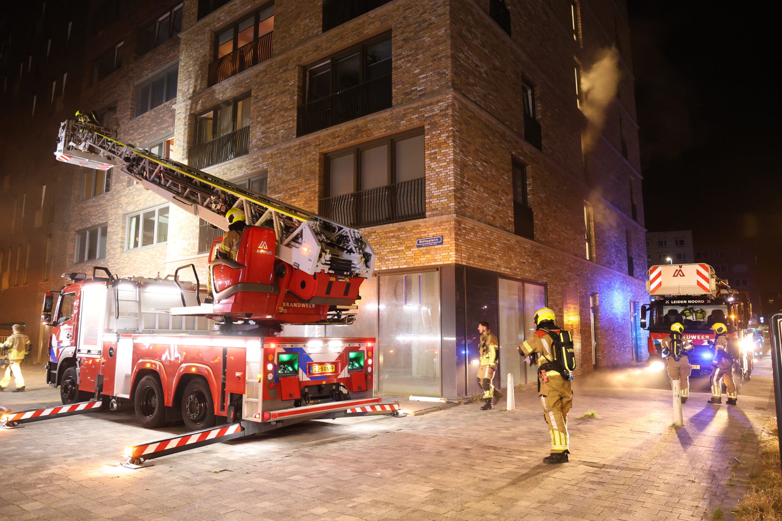 In de technische ruimte van een appartementencomplex aan het Bètaplein in Leiden is rond middernacht brand uitgebroken. De brandweer heeft al snel na aankomst opgeschaald naar ‘grote brand’ en na enige tijd naar ‘GRIP 1 – zeer grote brand’. Meerdere brandweerwagens waaronder extra ladderwagens zijn naar het Bètaplein gereden.