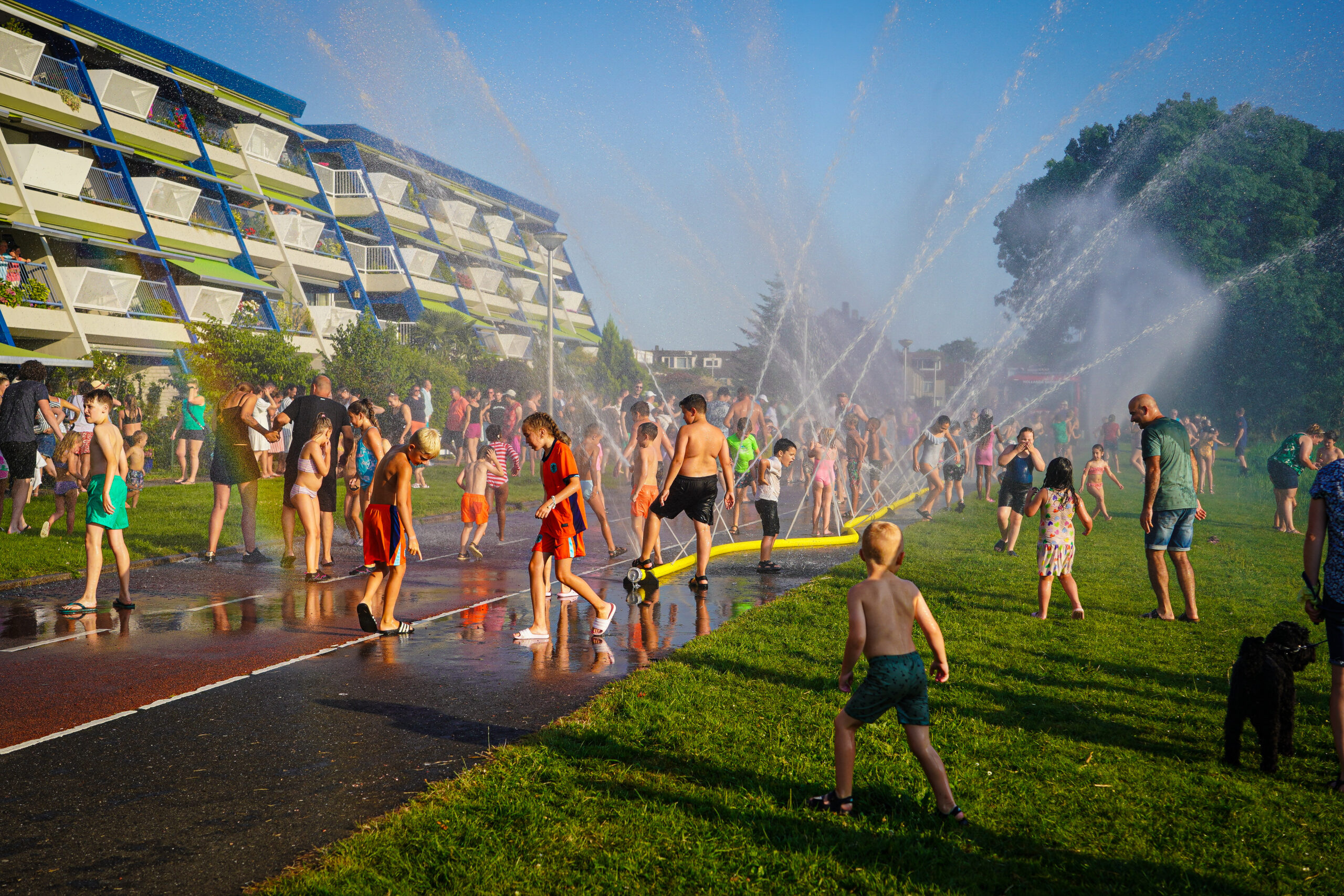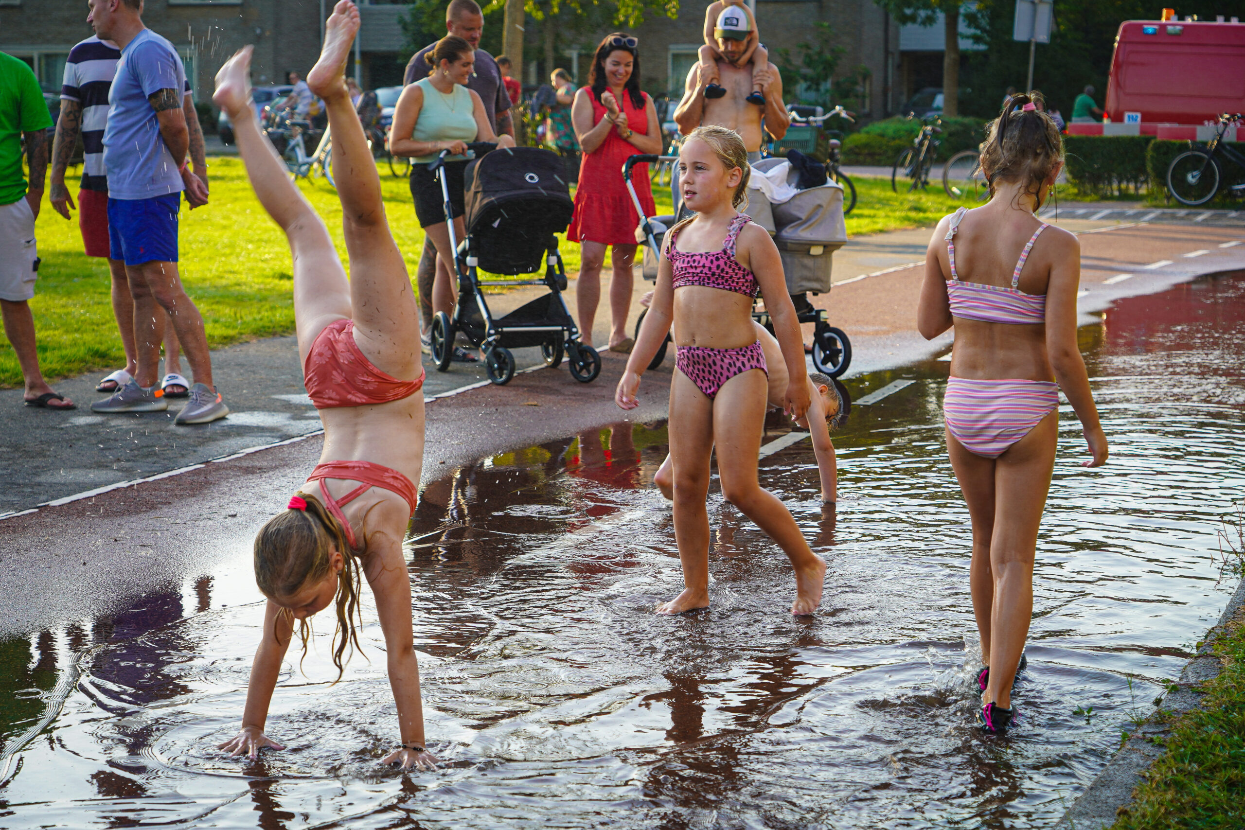 Rond 19.15 uur gingen werden de brandslangen opengedraaid en namen met name kinderen uit het dorp een verfrissend loopje door de waterstralen.