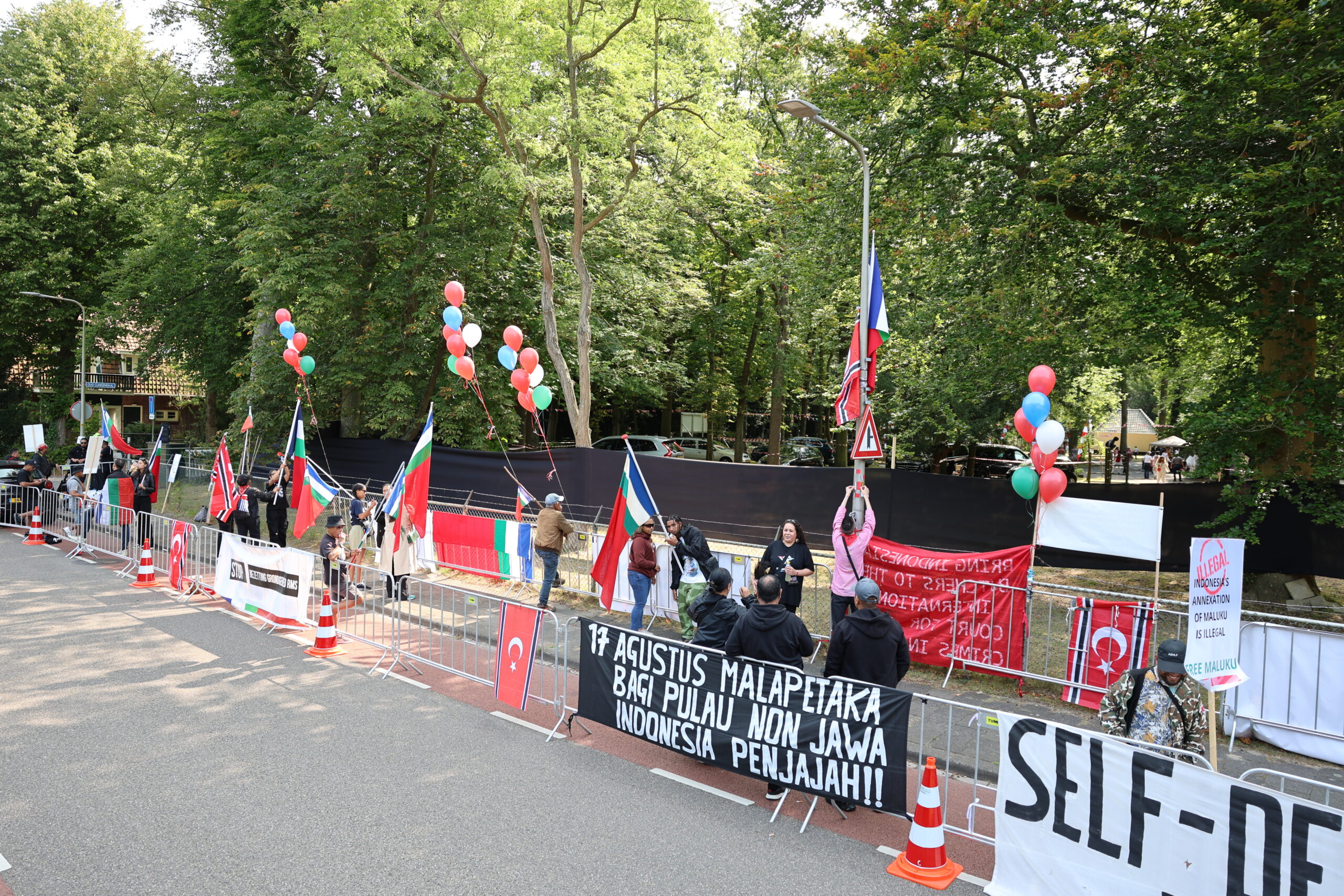 Bij de Indonesische ambassadeschool in Wassenaar wordt vandaag gedemonstreerd door Molukkers. In de school wordt de Indonesische Onafhankelijksdag gevierd.