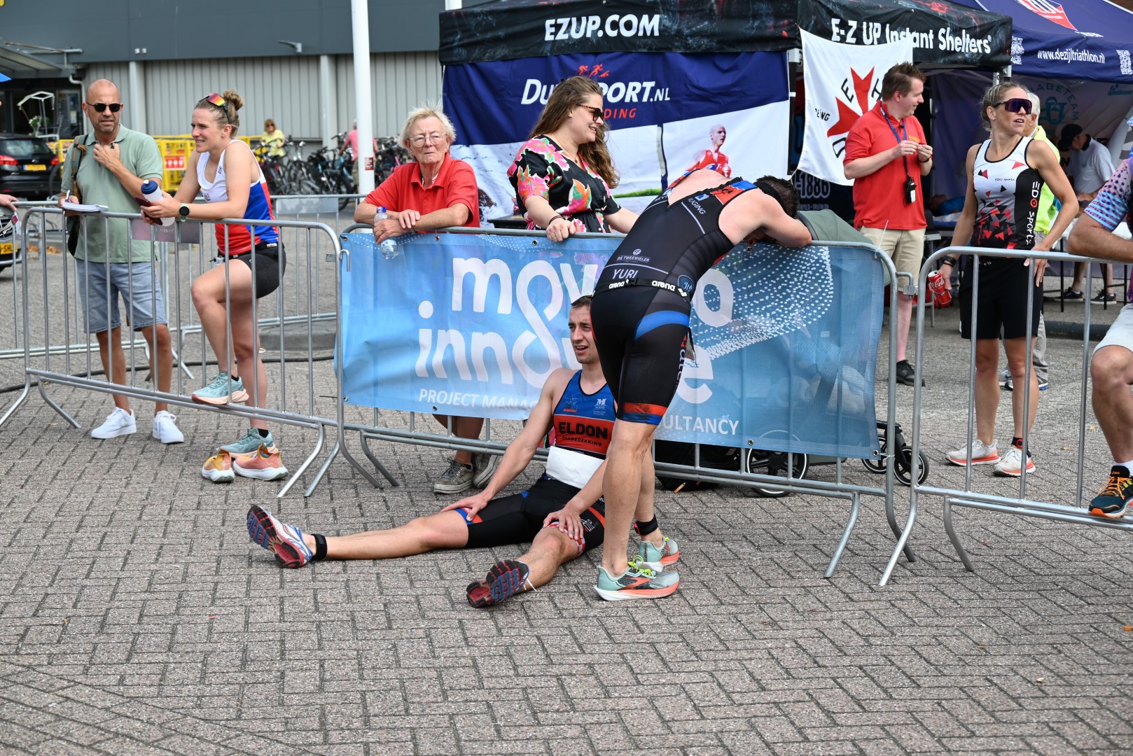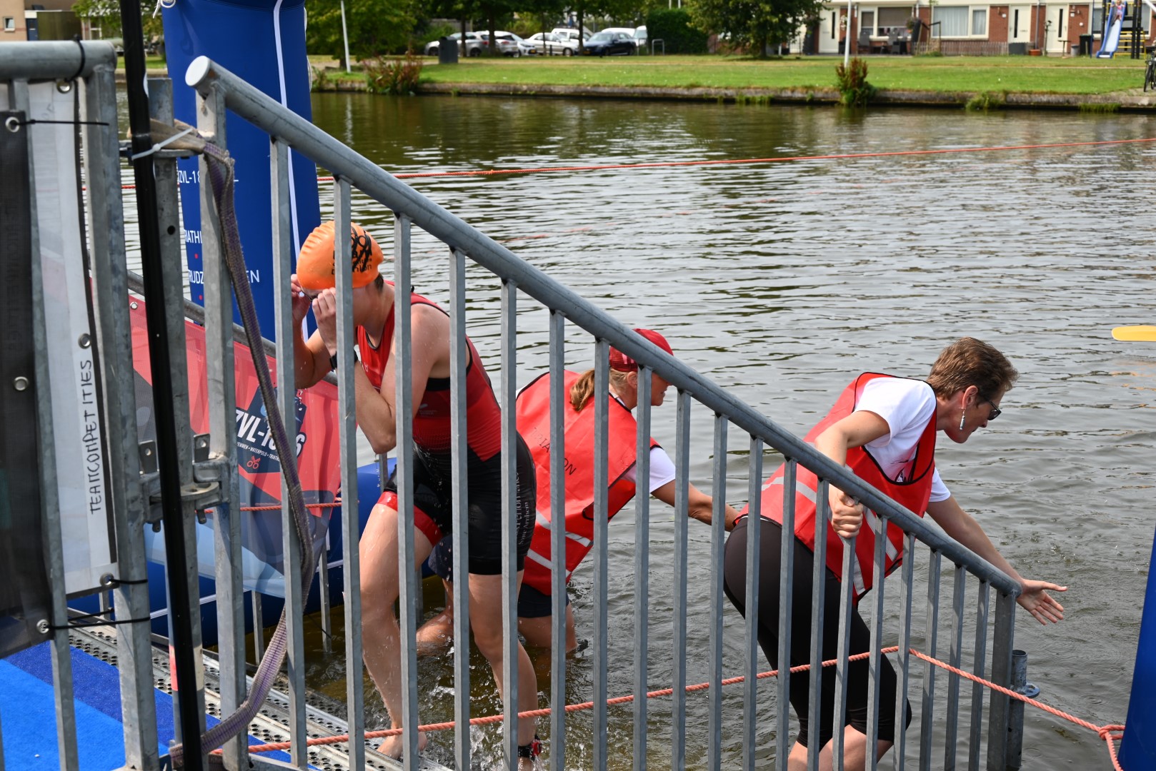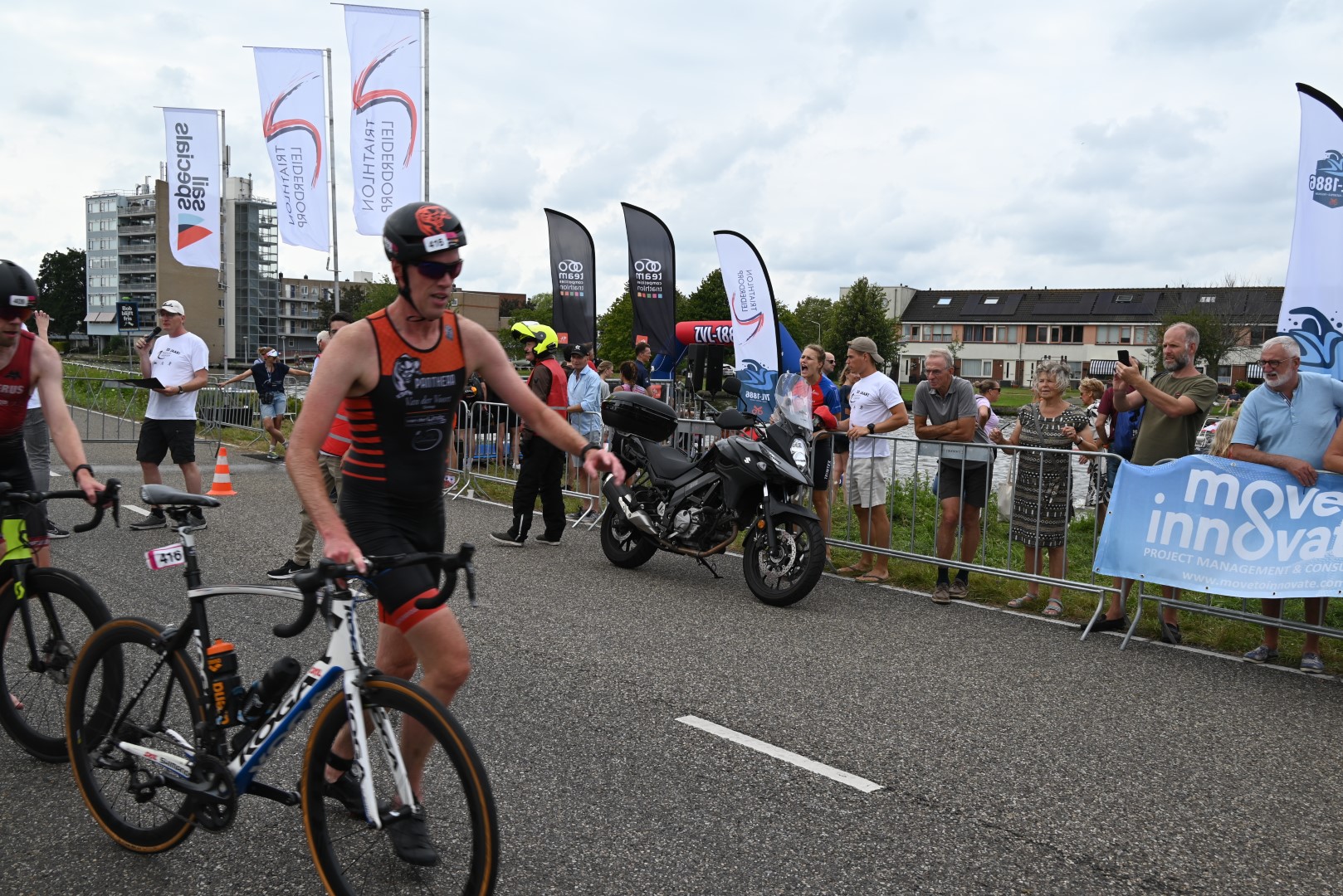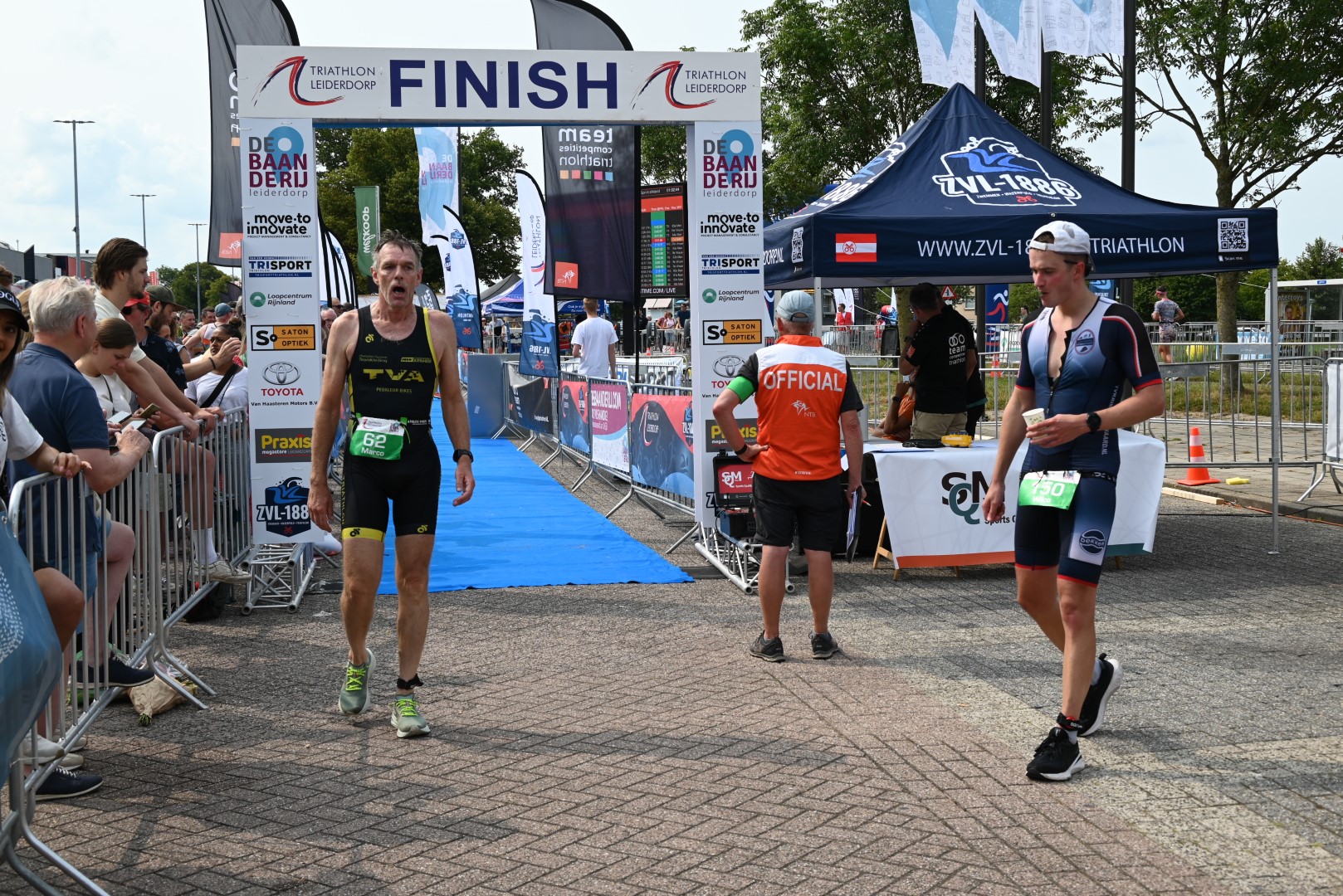 De belangstelling voor de teamwedstrijd van de 1eDivisie was zowel bij de dames als de heren erg groot, maar er waren dan ook belangrijke punten te verdienen voor het kampioenschap afdeling zuid om te promoveren naar de Eredivisie. Na afloop kon de organisatie tevreden terugkijken op een geslaagde jubileumeditie van de Triathlon Leiderdorp.