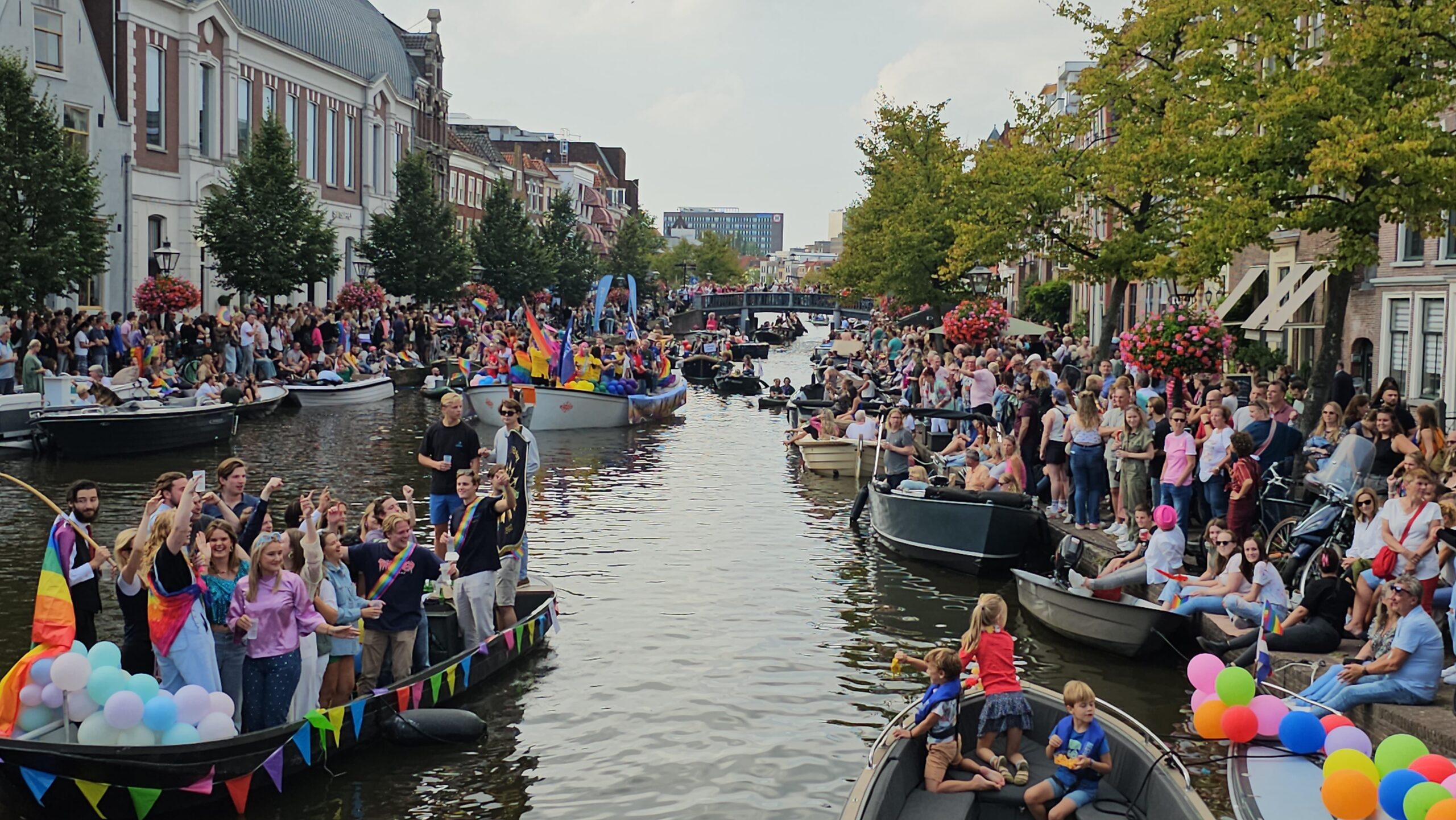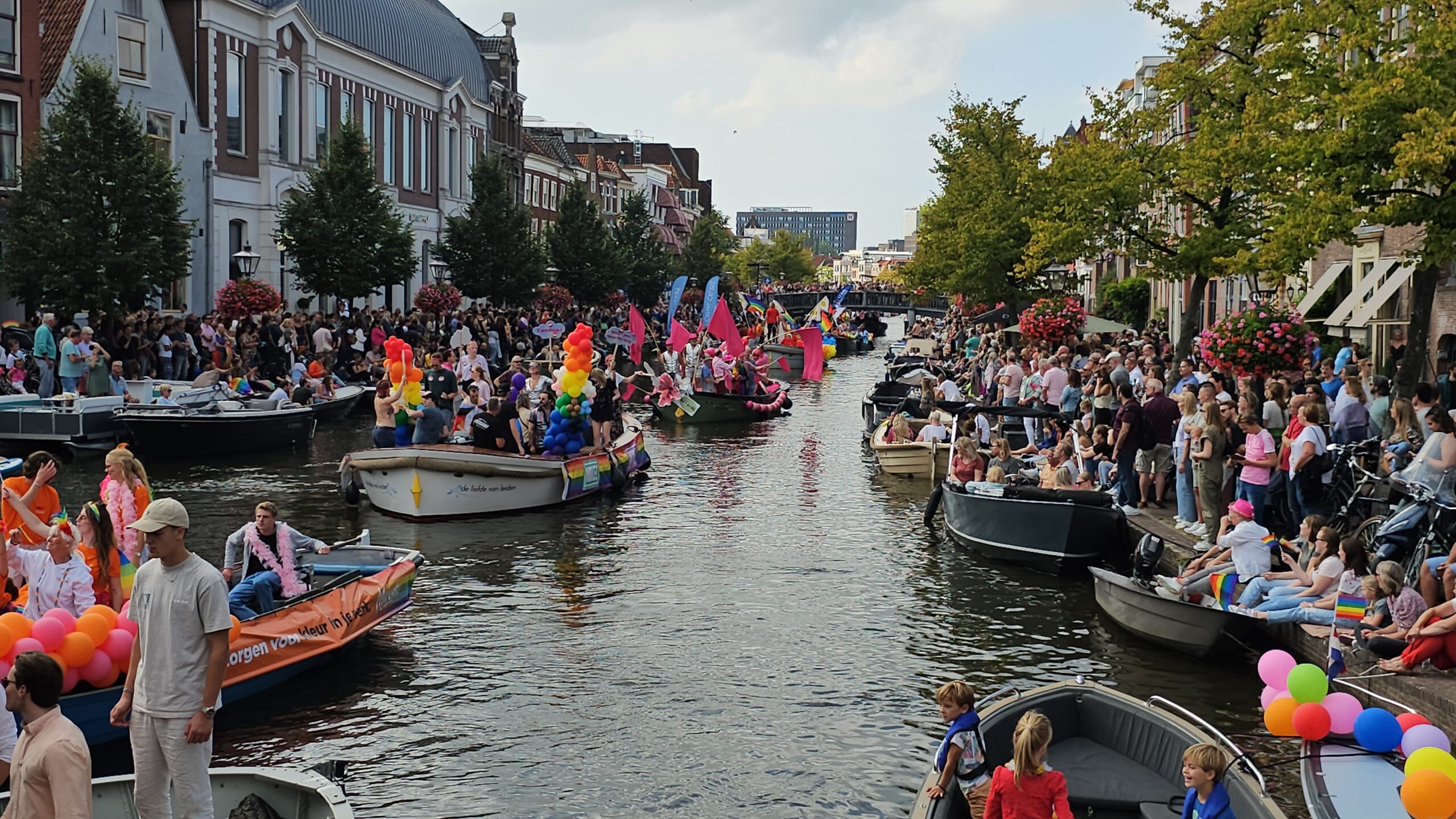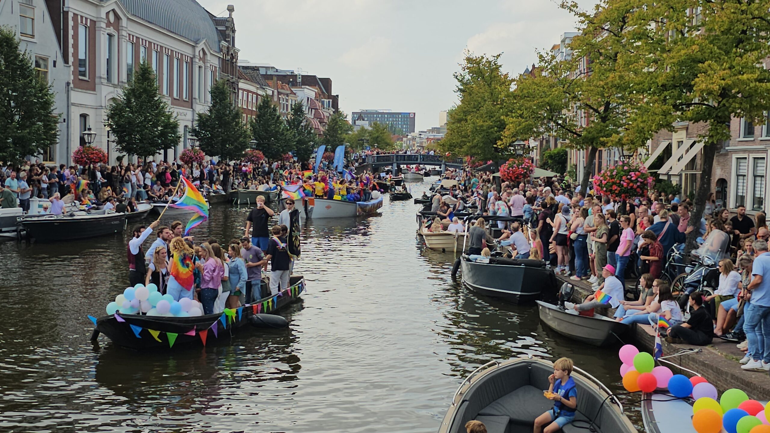In september 2023 voeren 22 boten mee tijdens de eerste Leidse Canal Pride. (Foto’s: Chris de Waard)
