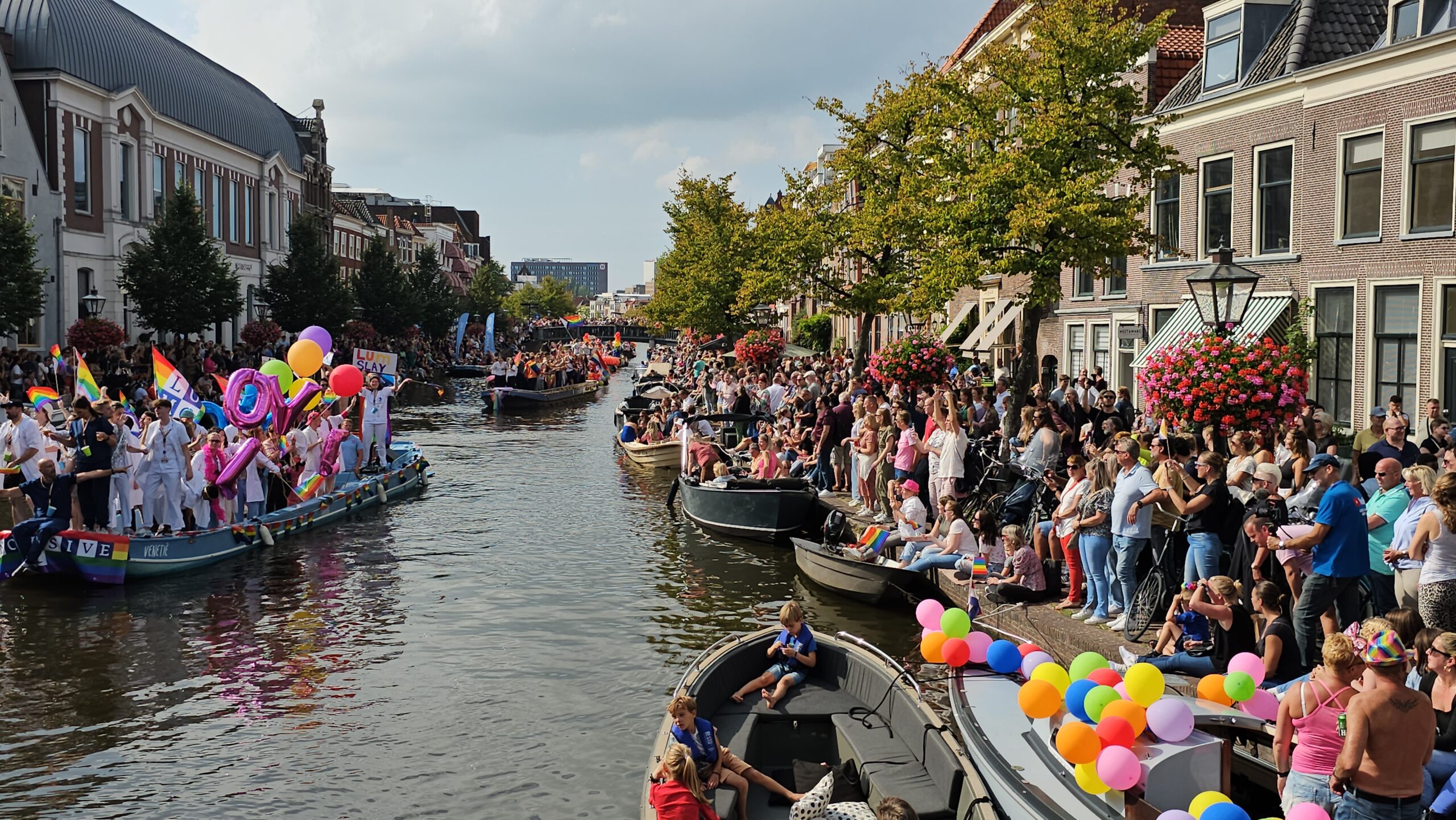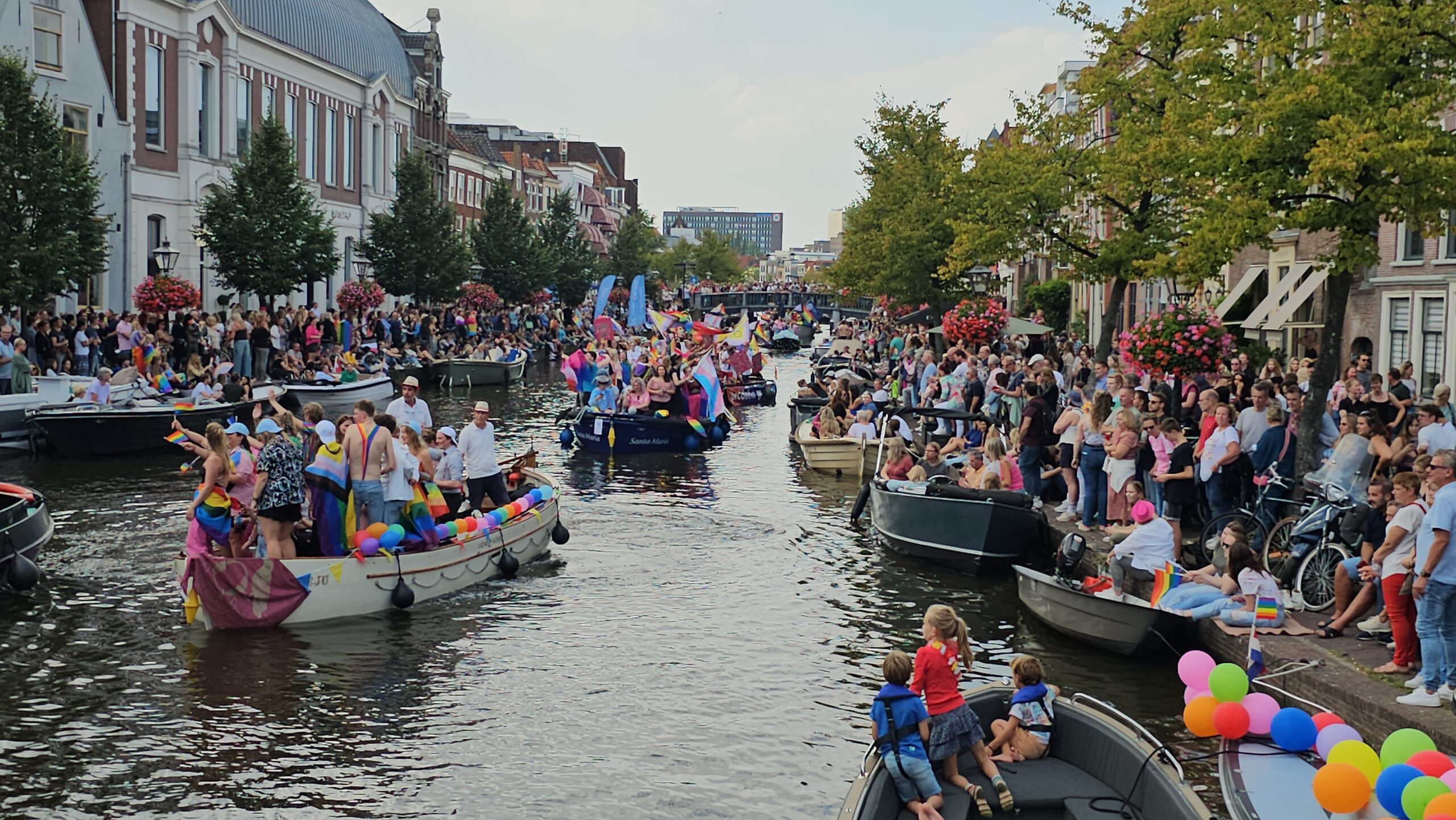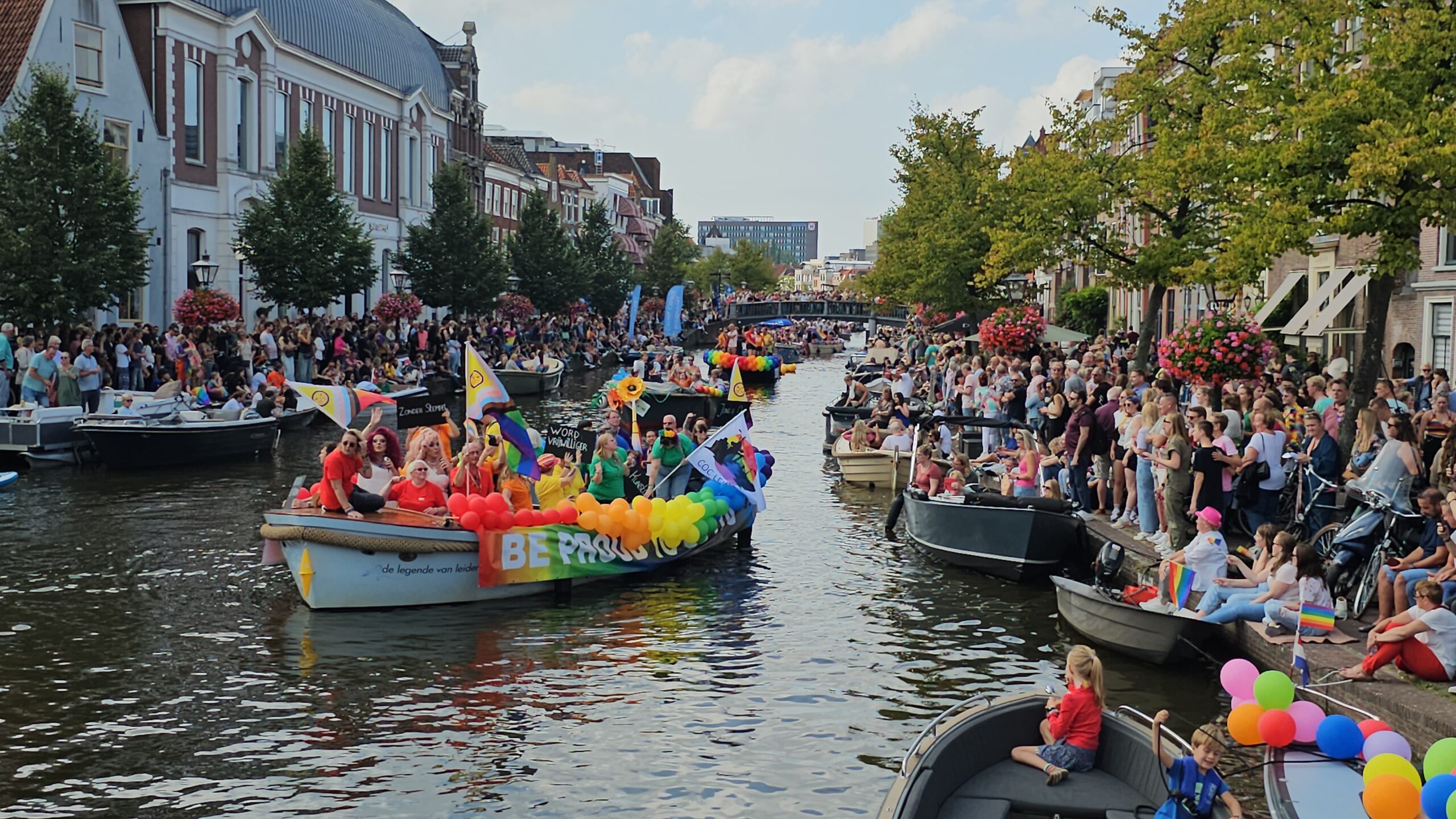 In september 2023 voeren 22 boten mee tijdens de eerste Leidse Canal Pride. (Foto’s: Chris de Waard)