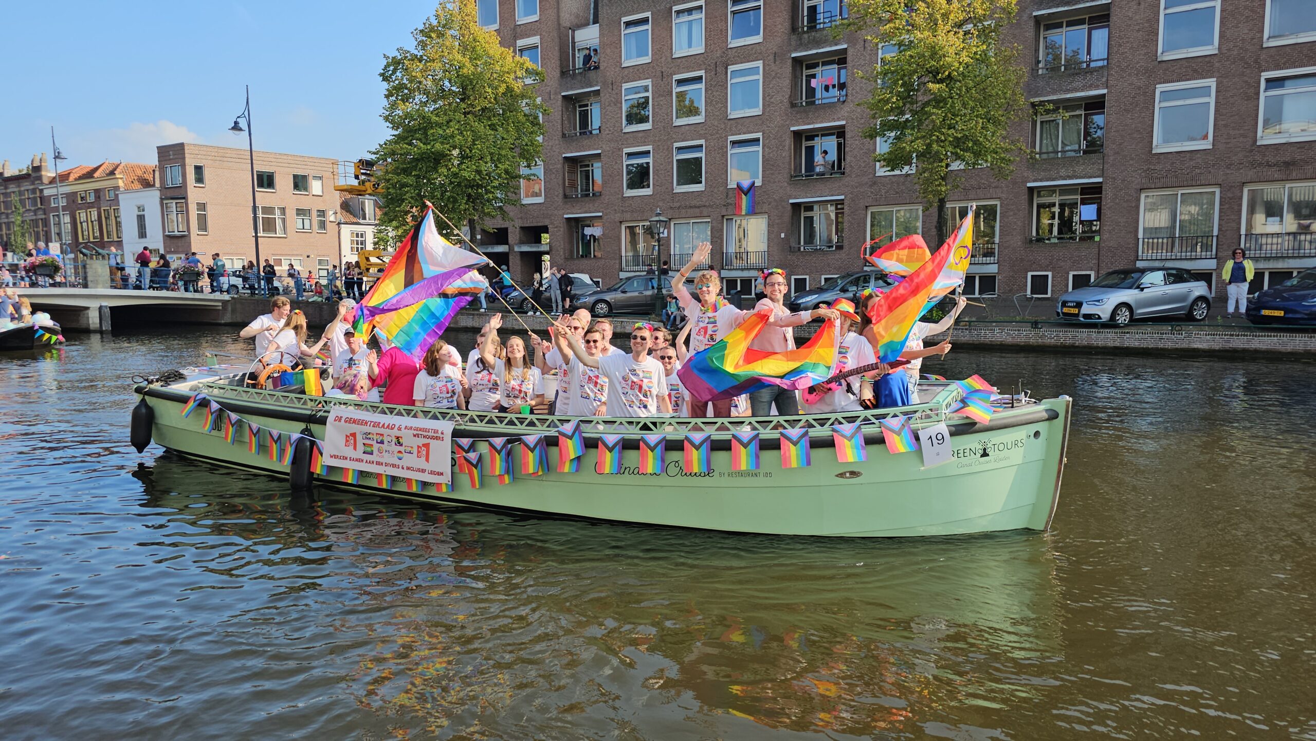 Onder de deelnemers dit jaar weer een breed scala aan organisaties uit Leiden, maar ook uit de regio. Natuurlijk vaart COC Leiden mee, net als lhbtiq+-zwemclub Plons, jongerenvereniging Outside van de Delftse Werkgroep Homoseksualiteit DWH. Ook de Leidse en Oegstgeester gemeenteraad, de Universiteit Leiden, het LUMC, verschillende scholen en studentenverenigingen versieren een boot. En wie dit jubileumjaar natuurlijk ook niet achter kon blijven is de 3 October Vereeniging. De parade wordt net als vorig jaar afgesloten door De Grachtwacht die dan zo nodig wat verloren feestvreugde uit het water kan scheppen.