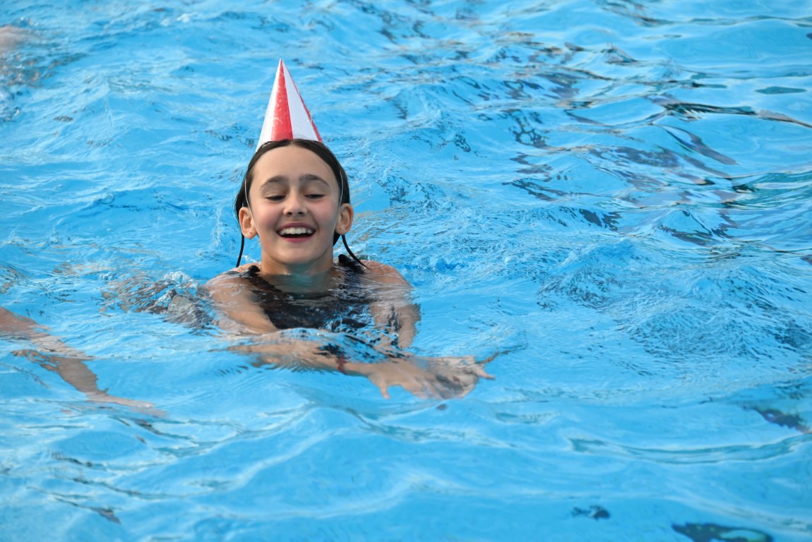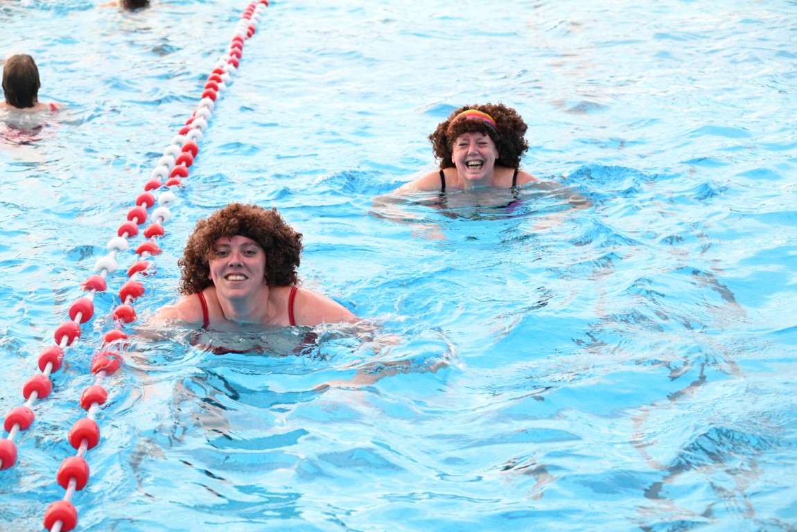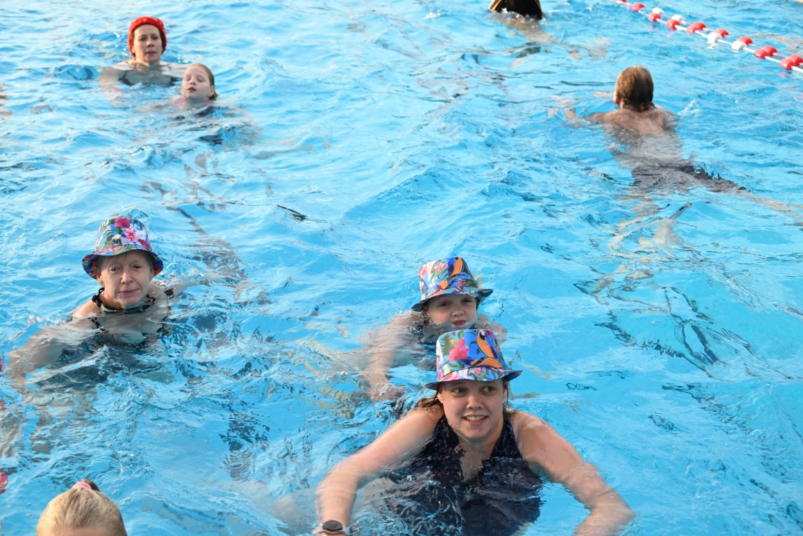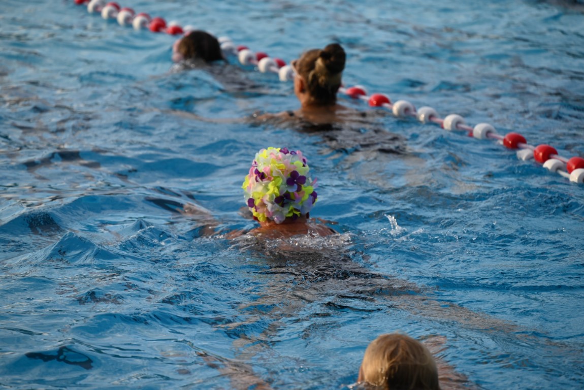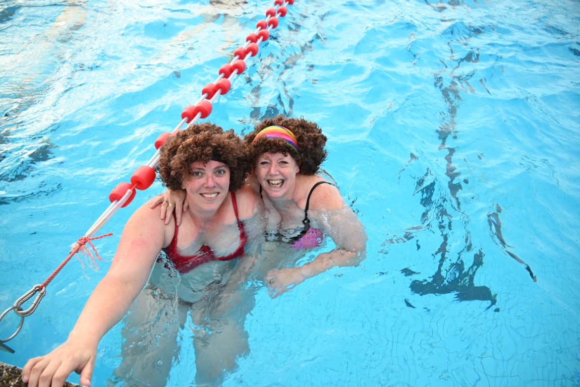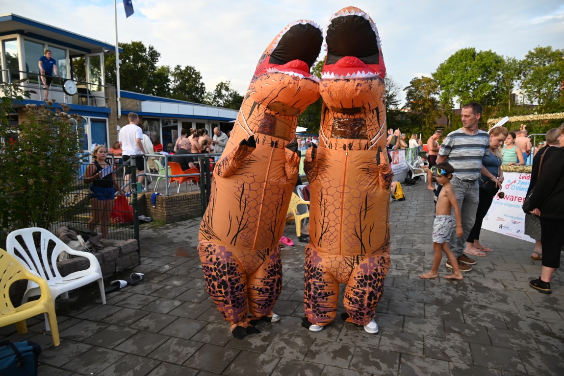 Het is vandaag alweer de laatste dag van een week lang Leidse Zwemvierdaagse in buitenbad De Vliet. De donderdag staat al jaren bekend als ‘badmutsendag’ en dus gingen gisteravond veel deelnemers met een bijzonder hoofddeksel te water. “Uw verslaggever telde slechts één echte badmuts en dat was er dan ook nog eentje met bloemetjes”, lacht Emile van Aelst die deze week voor Sleutelstad een paar keer langs ging.
