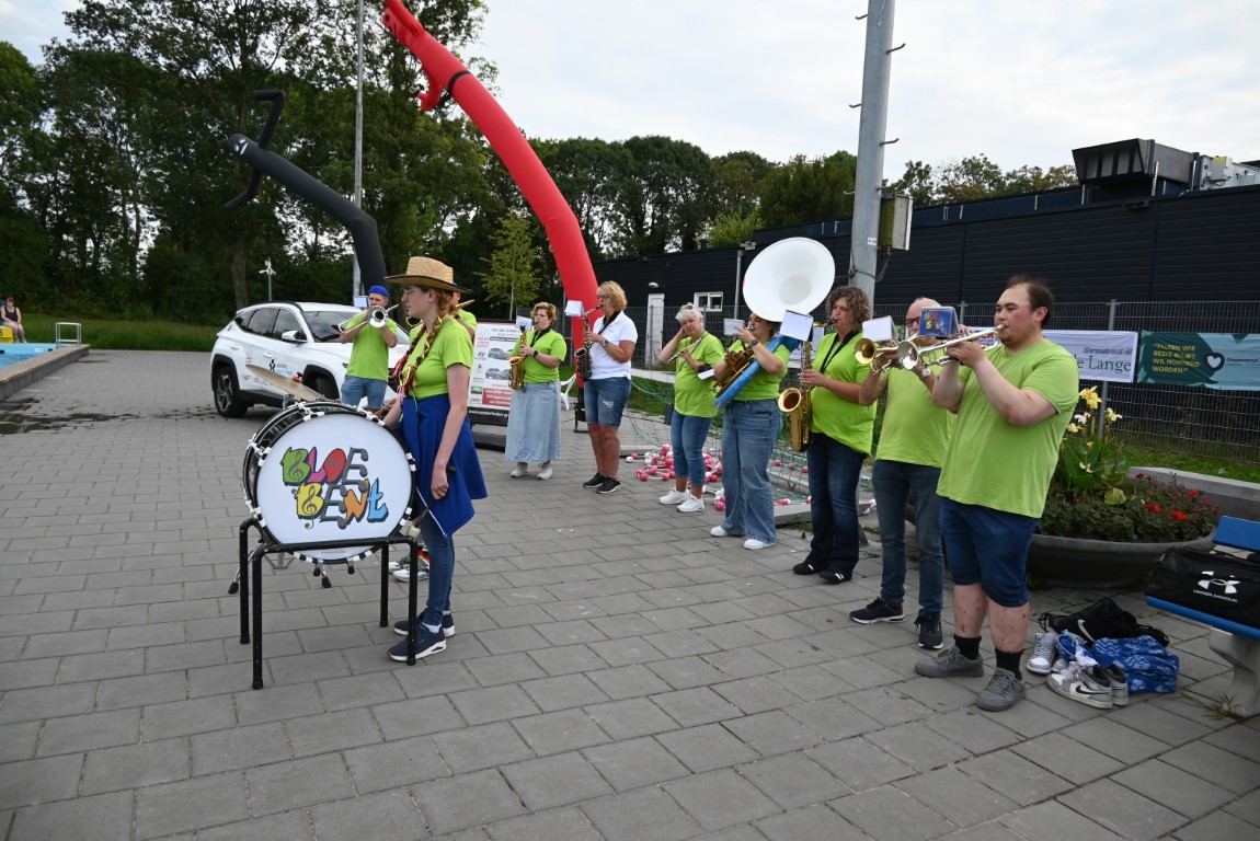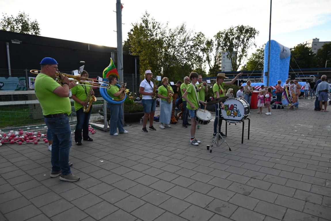 Tijdens de Leidse Zwemvierdaagse zijn er elke avond optredens. Woensdagavond trad DJ Montalto op, donderdag blaaskapel de Bloebent en vanavond wordt de muziek op de afsluitende avond verzorgd door blaaskapel Leidse Gabbers.