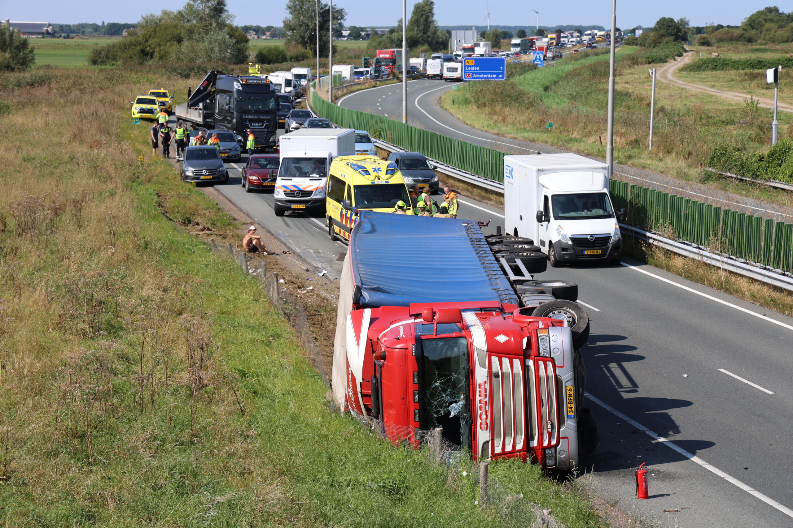 Een vrachtwagenchauffeur die het ongeval zag gebeuren, bedacht zich geen moment een blokte de weg af voor de veiligheid. Samen met enkele andere personen heeft hij geprobeerd de chauffeur uit de vrachtwagen te bevrijden. De chauffeur kon uiteindelijk redelijk snel uit zijn vrachtwagen komen, voor zover bekend zonder ernstige verwondingen. Hij hoefde niet mee naar het ziekenhuis. De weg is inmiddels volledig afgesloten voor het verkeer. De berging van de vrachtwagen duurt nog de hele dag, naar verwachting tot 18.00 uur.