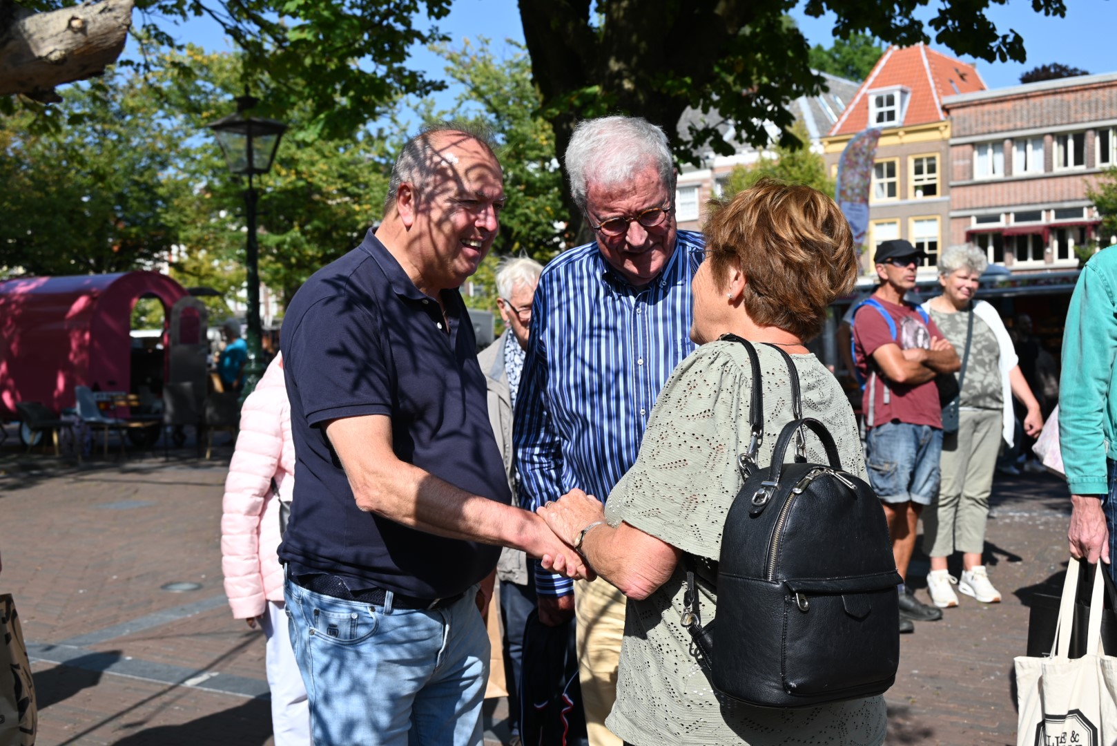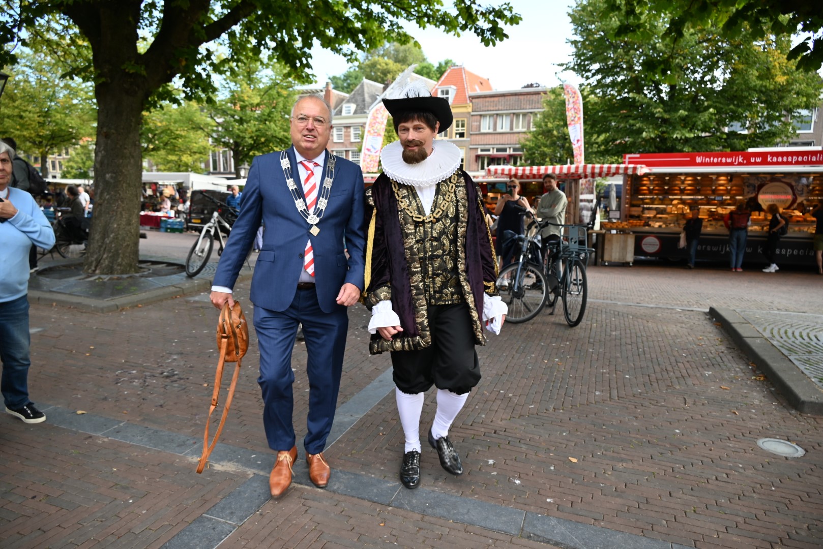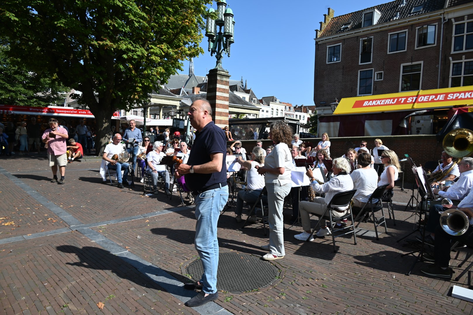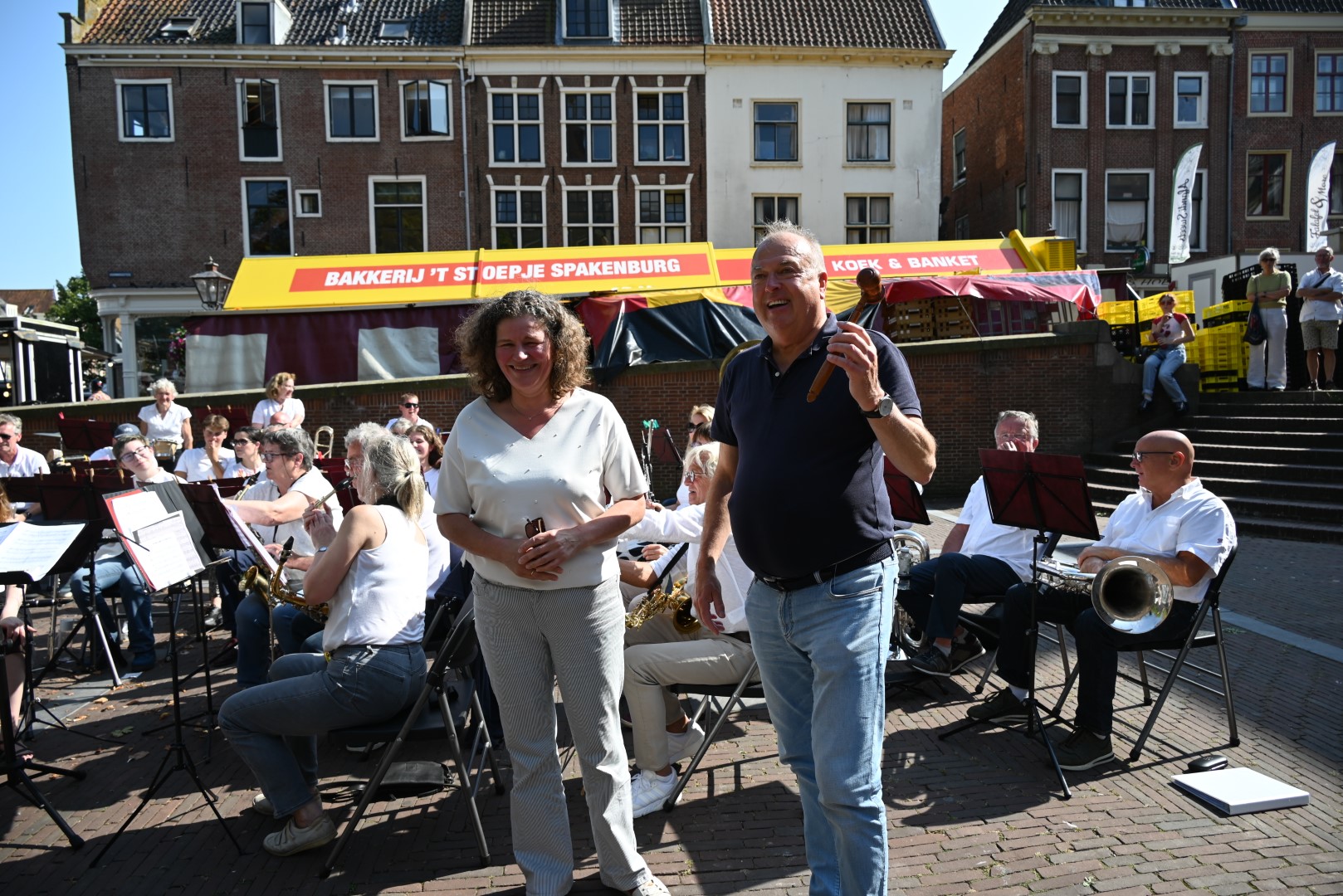 Marktbezoekers keken raar op toen zaterdagmorgen op het bordes van het Stadhuis een harmonie speelde in aanwezigheid van burgemeesters Pieter van der Werf en Peter van der Velden.