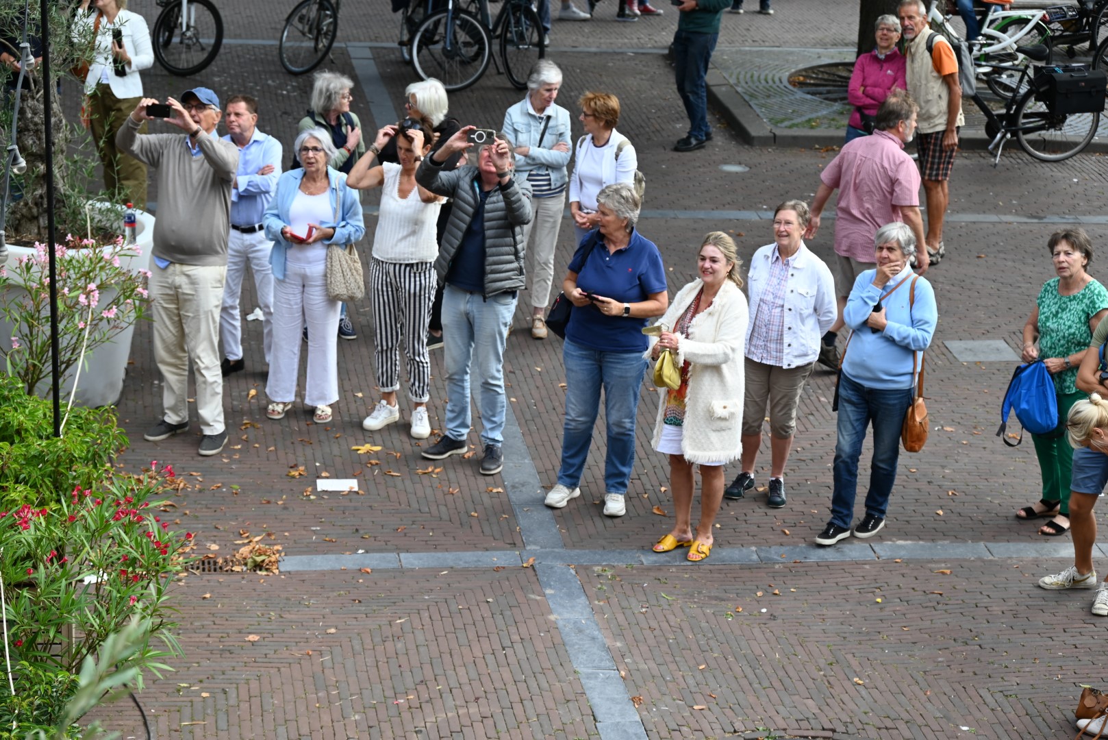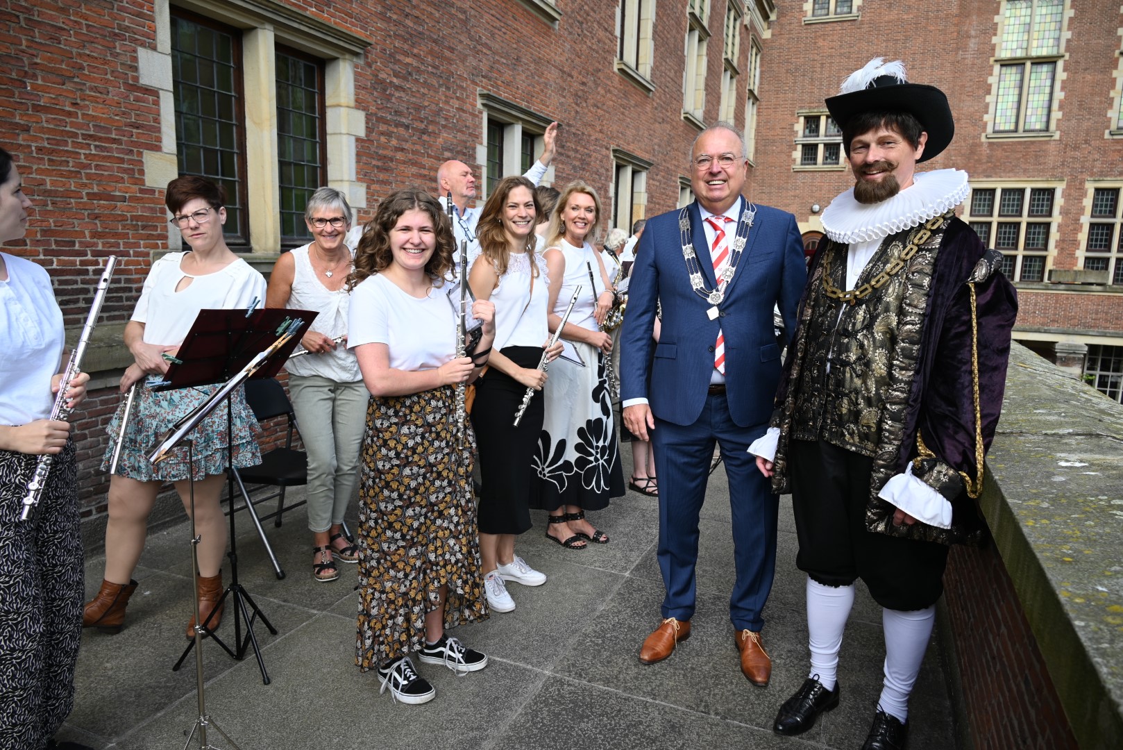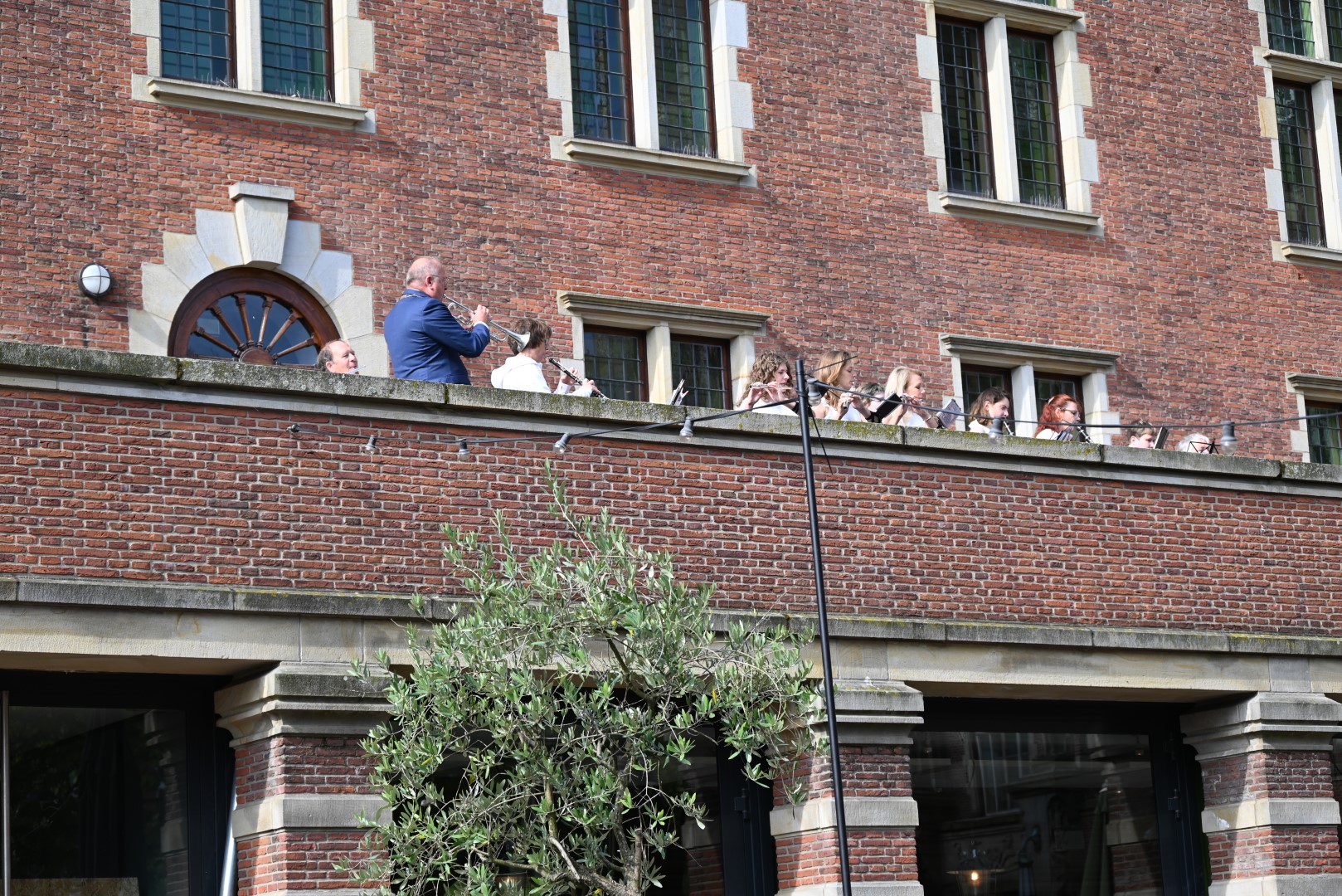 Na een rondleiding door het Stadhuis nam het orkest plaats op het bordes om een paar nummers te spelen. Toevallig kwam ook net burgemeester Pieter van der Werf langs en wilde weten wat er gaande was. Voor Van der Werf was het een vreemde gewaarwording dat de huidige burgemeester ook trompet speelde in een harmonie.
