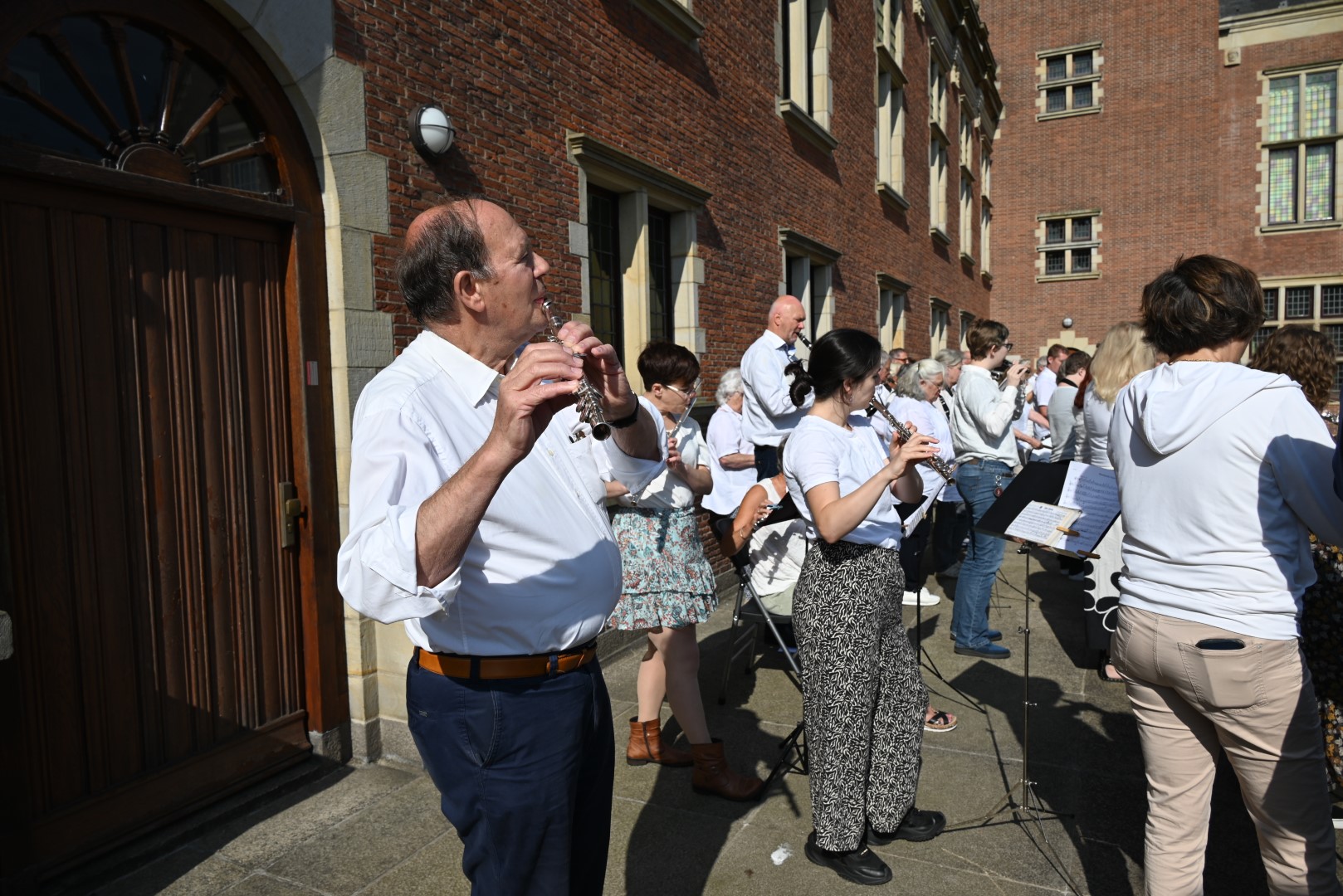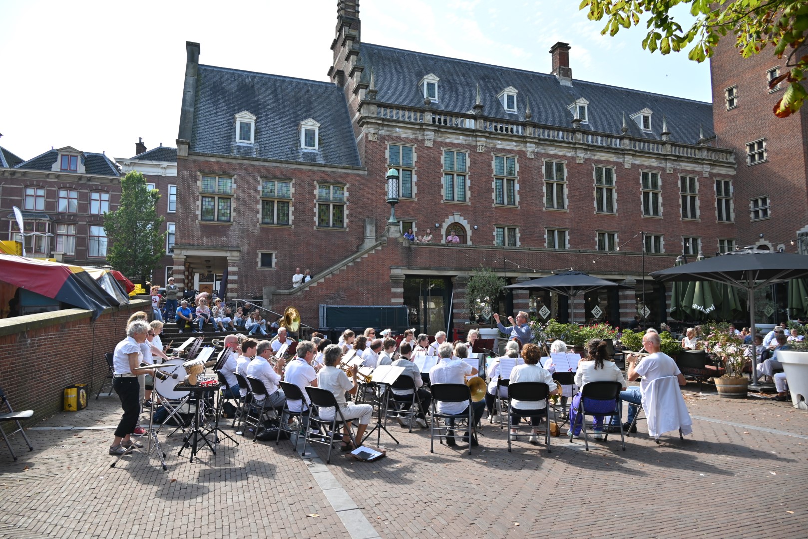 Het was Harmonie Concordia uit Ginneken (Breda). Een jaar geleden vroegen zij Peter van der Velden of hij voorzitter van het orkest wilde worden. Vanwege zijn tijdelijk burgemeesterschap in Leiden, sloeg hij de uitnodiging af en beloofde na zijn afscheid in Leiden alsnog voorzitter te worden. Het orkest nam het zekere voor het onzekere en kwam zaterdag naar Leiden om hem aan zijn woord te houden en zich gelijk te presenteren aan Leiden.
